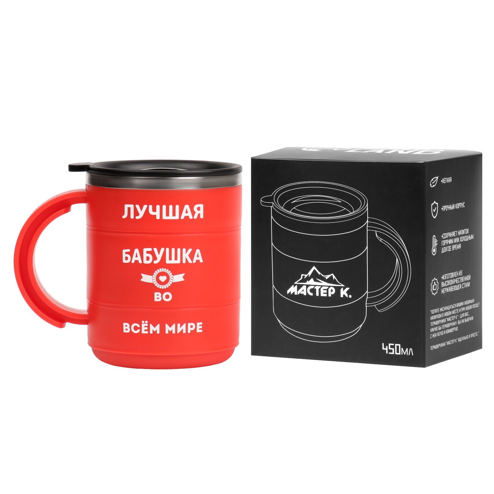 Термокружка, 450 мл, поход "лучшая бабуля", сохраняет тепло 2 ч, красная