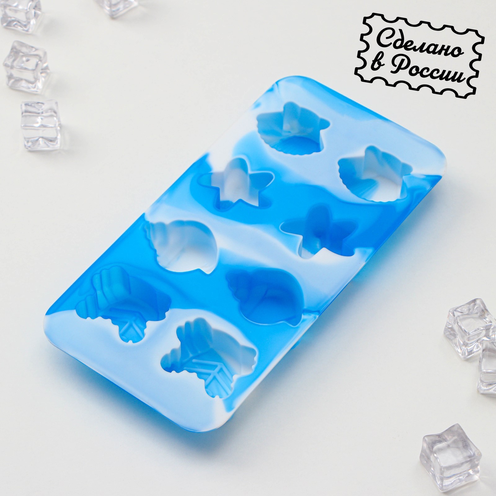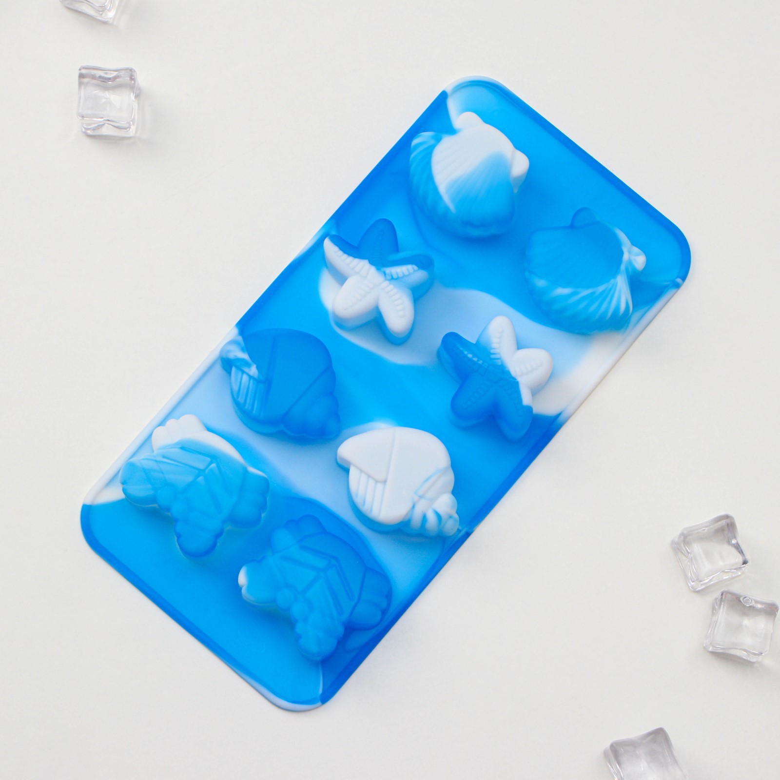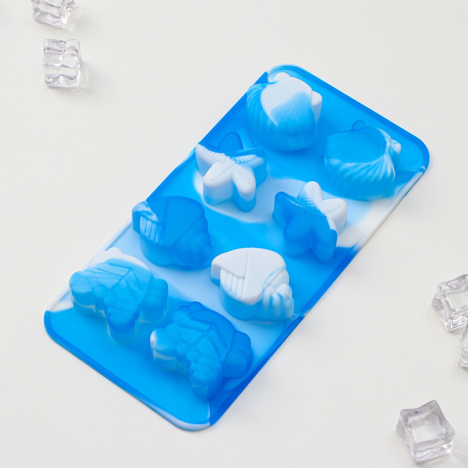 Форма для льда и кондитерских изделий «ракушки», 20,1x10 см, H=2 см, ячейка 4 см, цвет синий