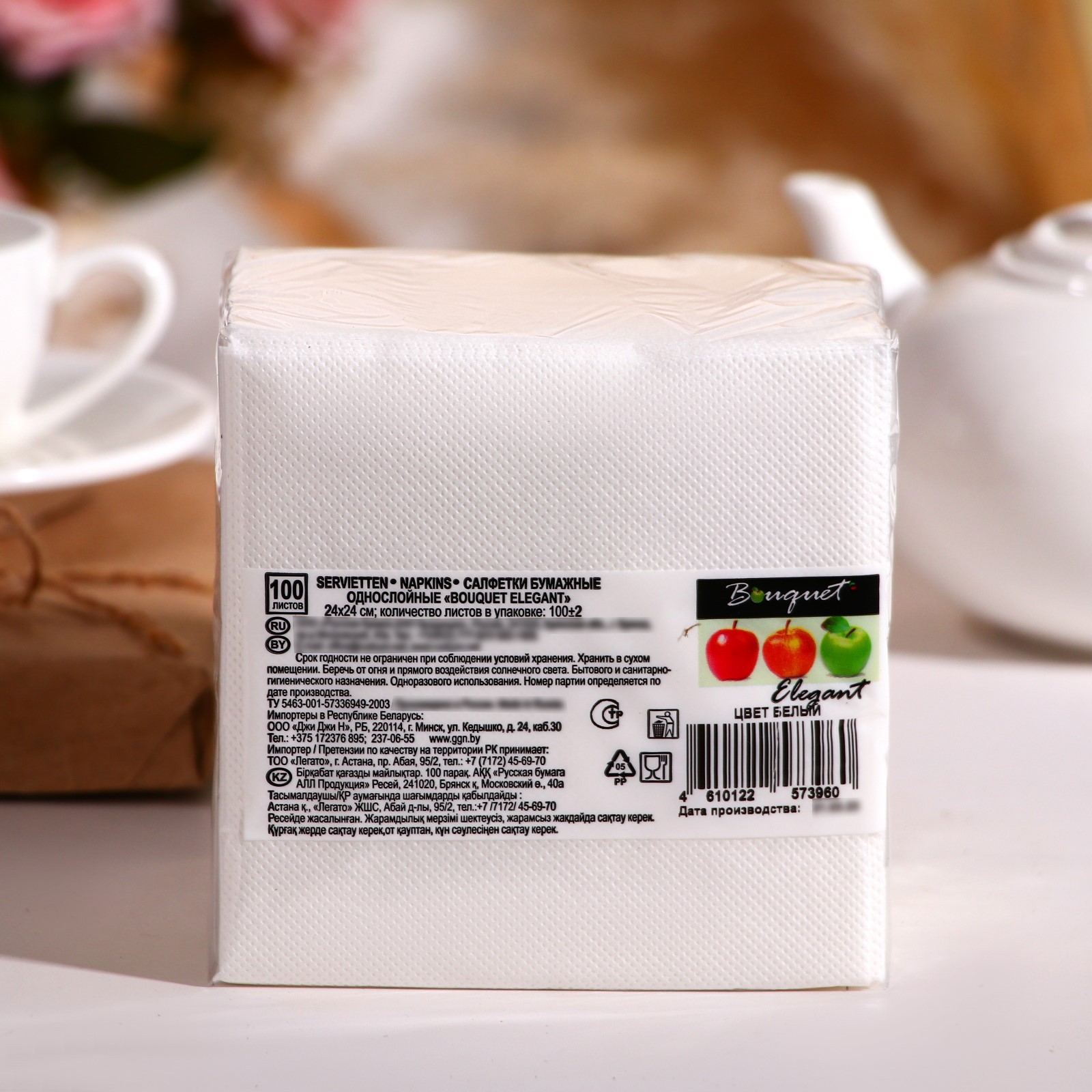 Салфетки бумажные bouquet белые, 24х24,1 слой, 100 листов. Однослойные сервировочные бумажные салфетки. Изделия выполнены из 100% целлюлозы. Бесхлорное отбеливание, краски на водной основе. Салфетки станут отличным дополнением вашего праздничного стола. Можно использовать как по прямому назначению - для украшения стола и декора, так и для различных поделок: скрапбукинга, декупажа, коллажей. Цвет: Белый Размер, см: 24 х 24 parts count: 0 В наборе, шт.: 100 Вид: Однотонные Температурное ограничение: Нет  развернуть описание ▼