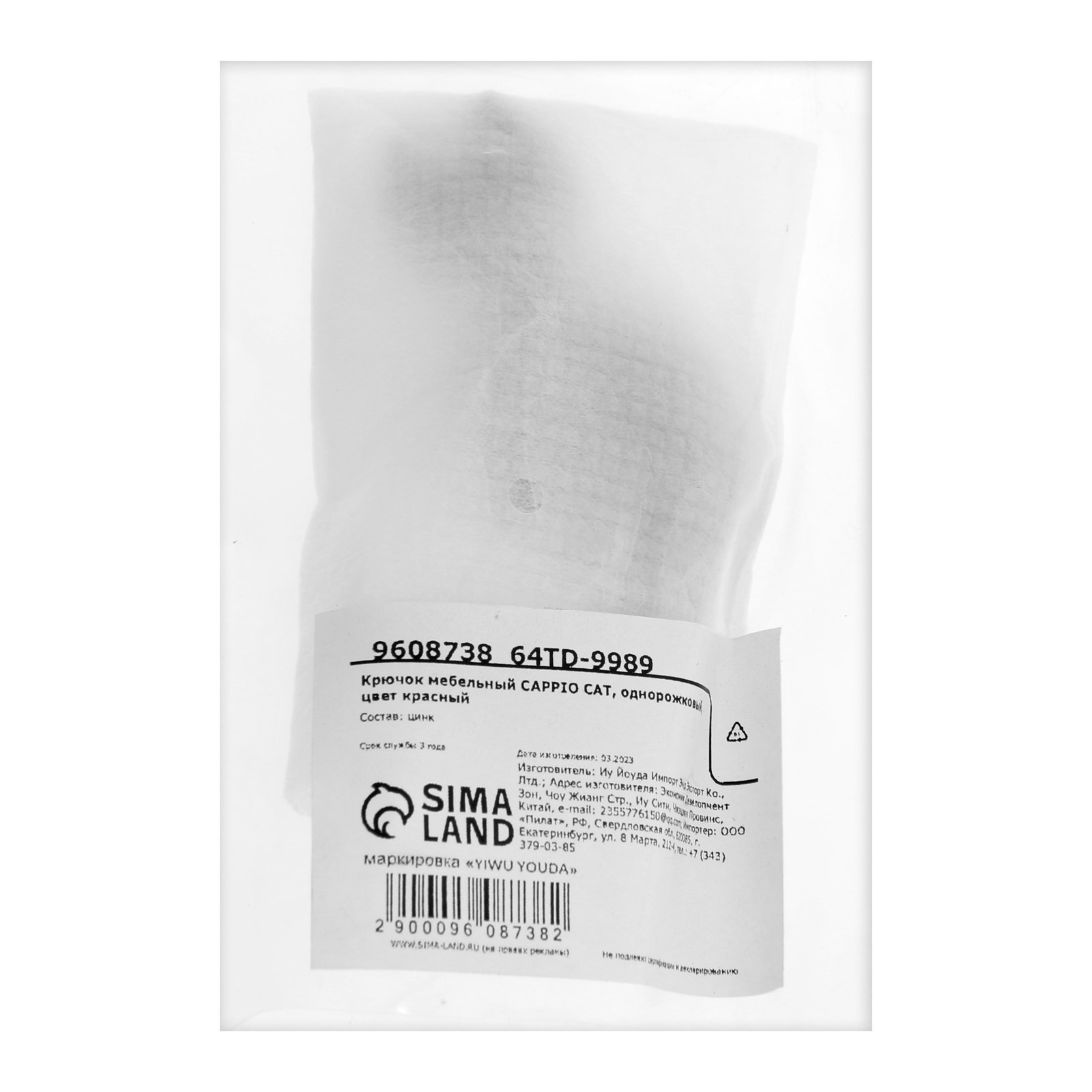 Крючок мебельный Cappio Cat, однорожковый, красный