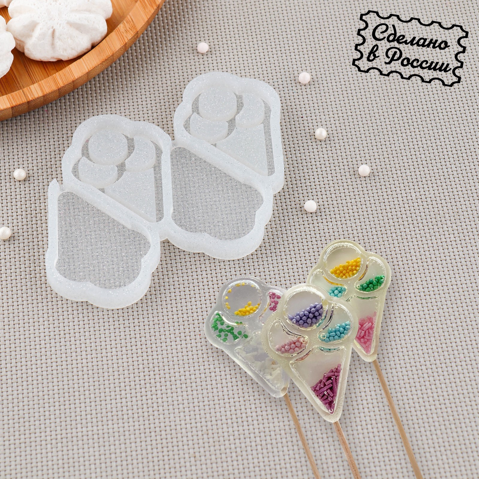 Силиконовый молд для леденцов и шоколада «мороженое погремушка», 6x4 см, цвет прозрачный