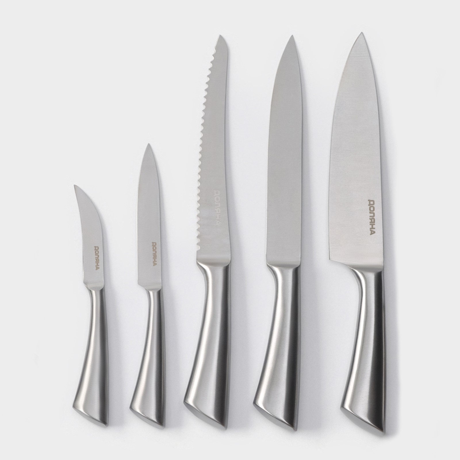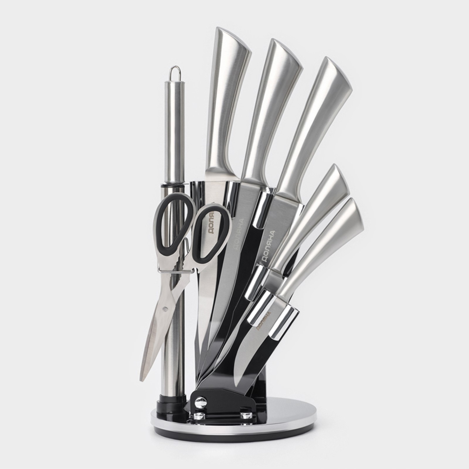Набор ножей кухонных на подставке Ardone, 7 предметов: 5 ножей, мусат и ножницы, цвет хромированный
