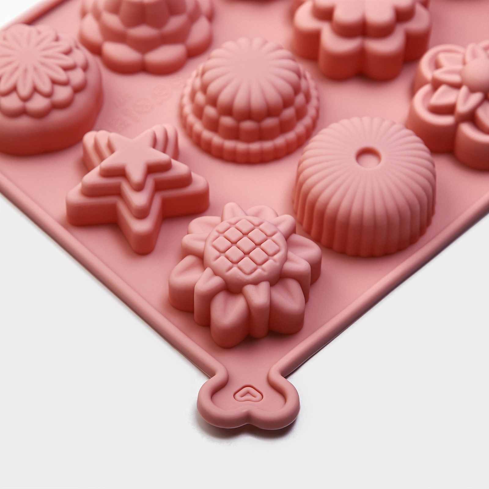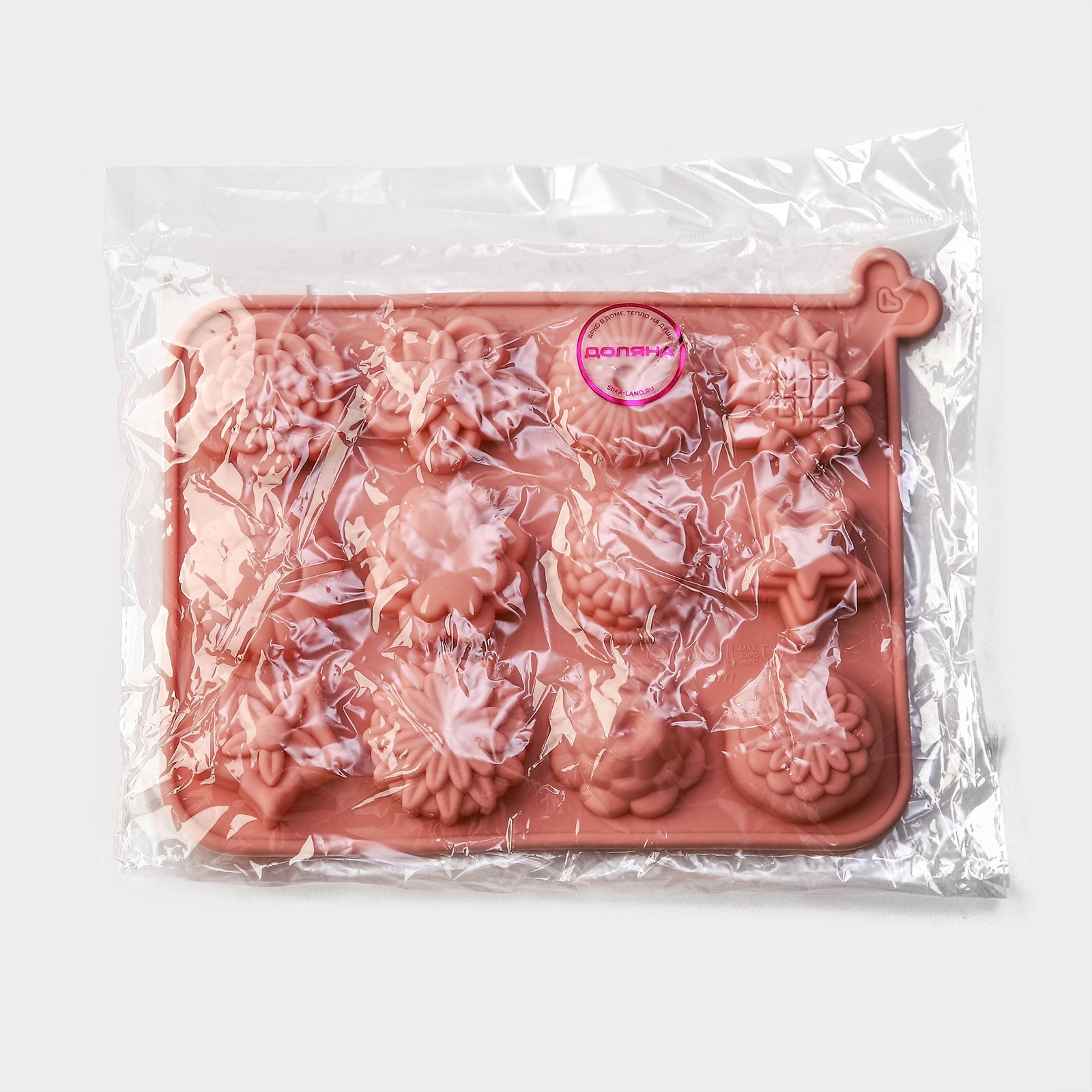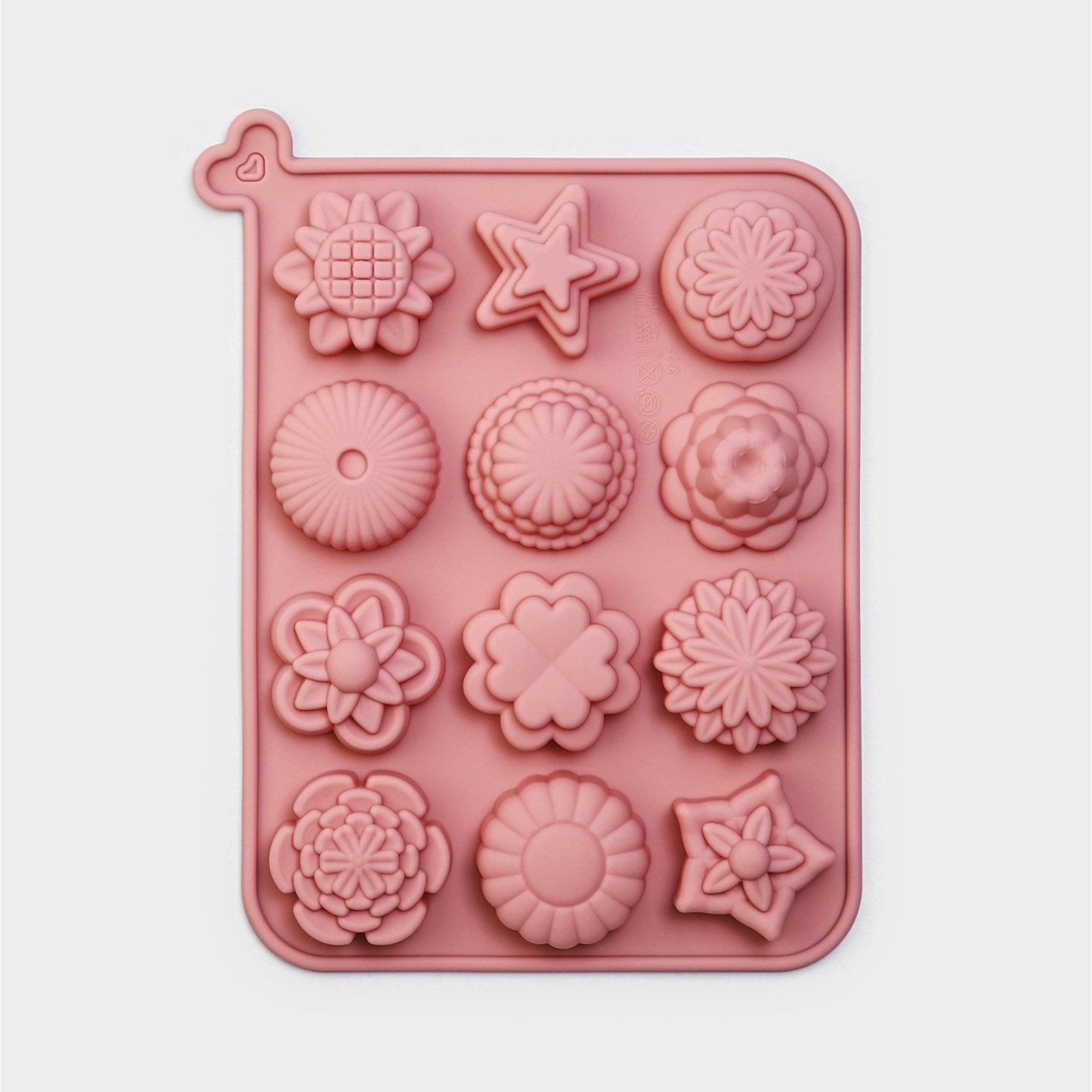 Форма силиконовая для выпечки доляна «цветы», 12 ячеек, 20,5x15,6x2 см, цвет розовый. Цвет: Розовый Форма: Фигурная Фасовка, шт.: 1 Крышка: Нет Материал: Силикон Тип покрытия: Без покрытия Ячейки: Да Наличие палочек для форм: Нет Тип формы: Для печенья и пирожных Разъёмная форма: Нет Съёмное дно: Нет Можно мыть в посудомоечной машине: Да  развернуть описание ▼