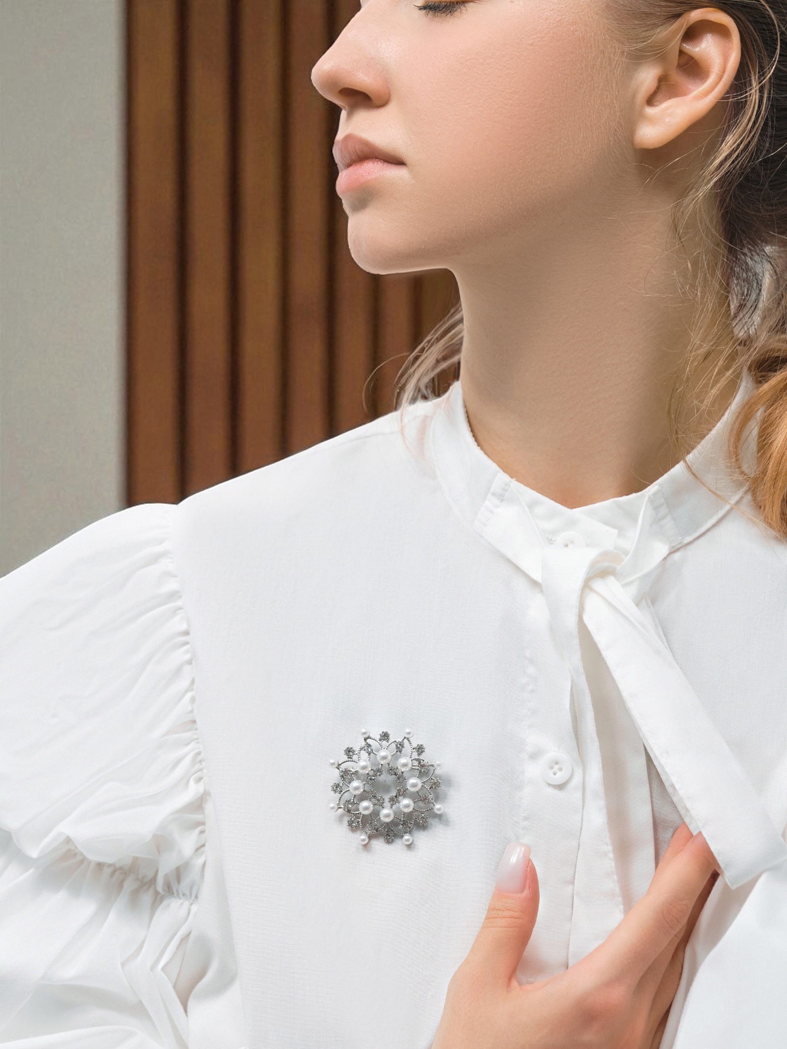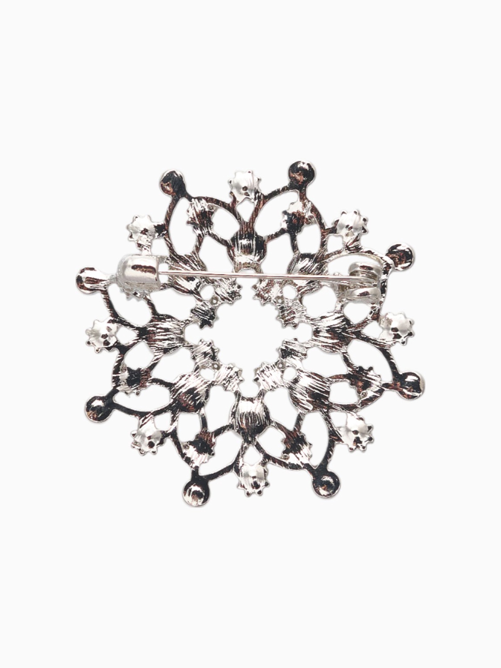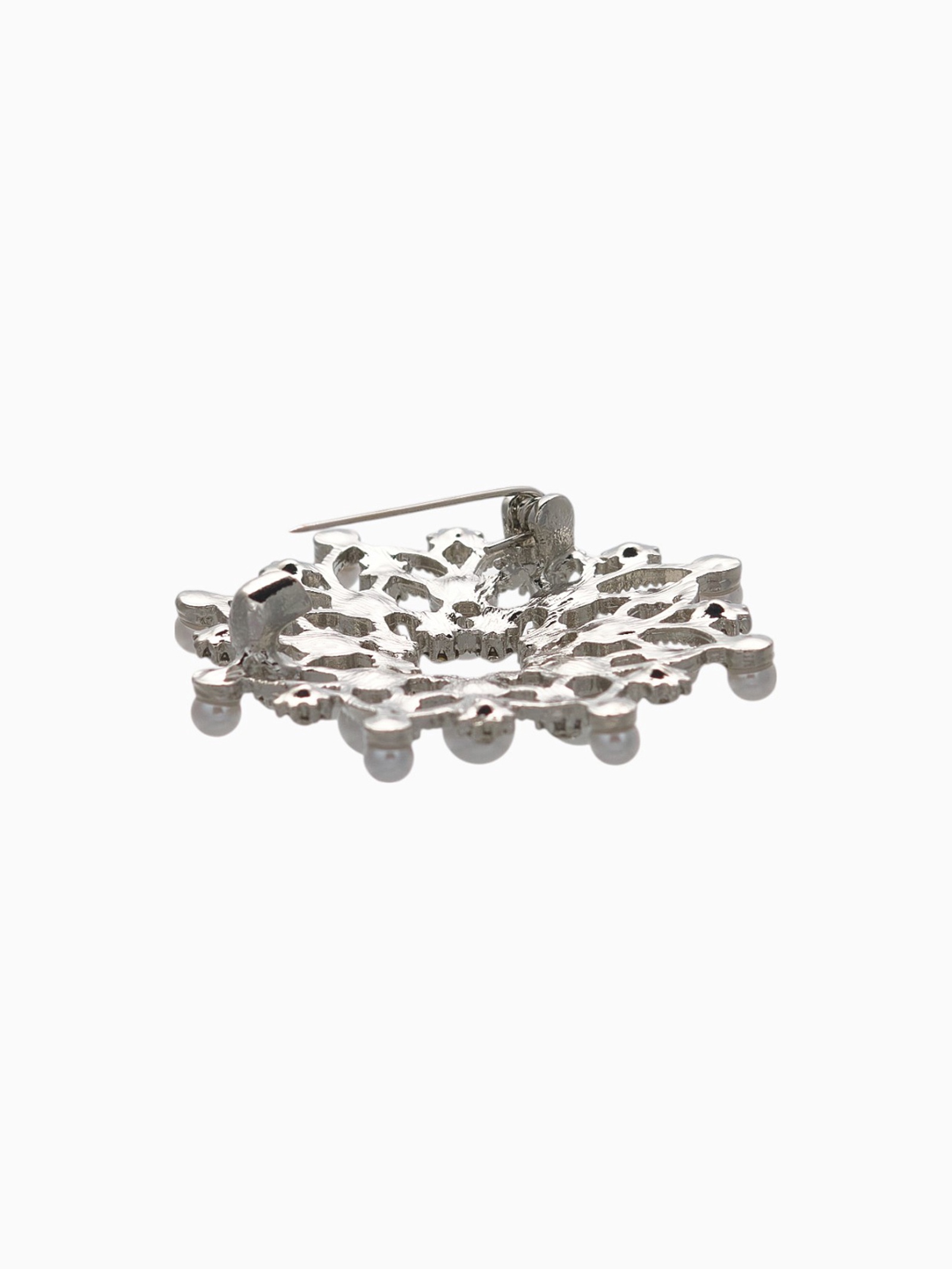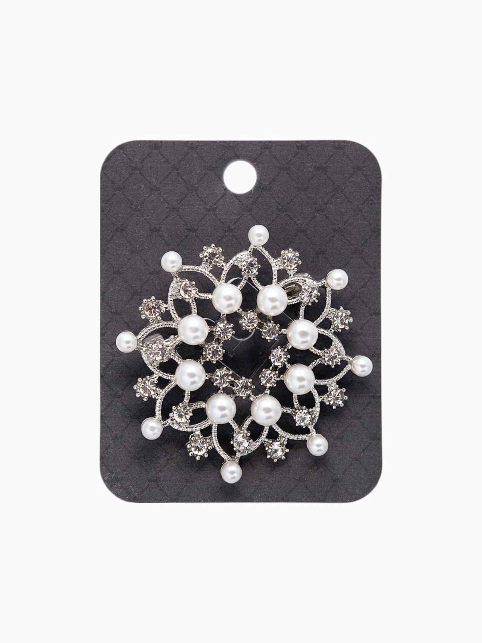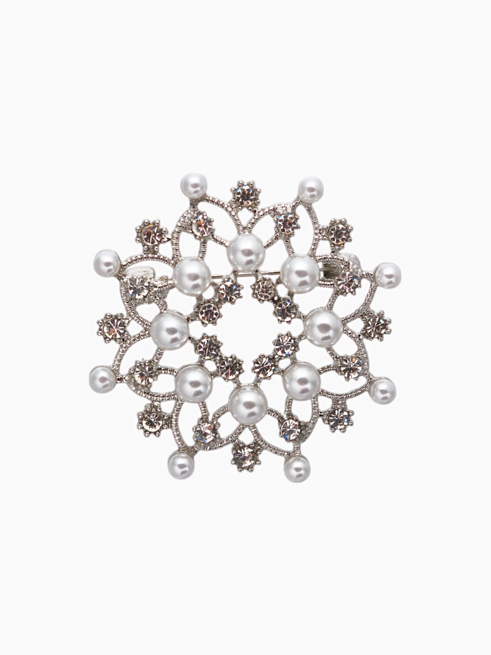Брошь новогодняя «снежинка жемчужная», белая в серебре