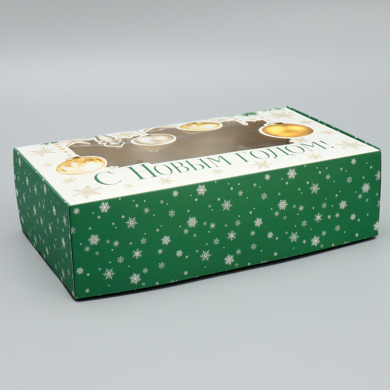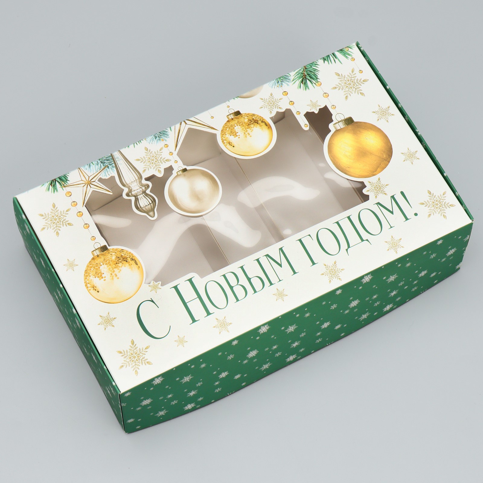 Коробка для эклеров с вкладышами «с новым годом!», ветки, 25 х 15 х 7 см