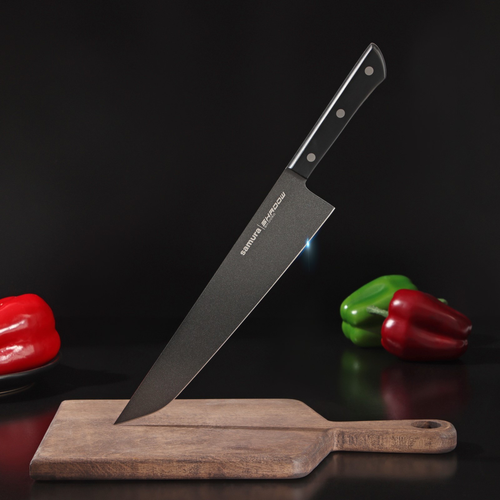 Нож кухонный Samura Shadow, с покрытием Black-coating, 25 см, шеф, Aus-8
