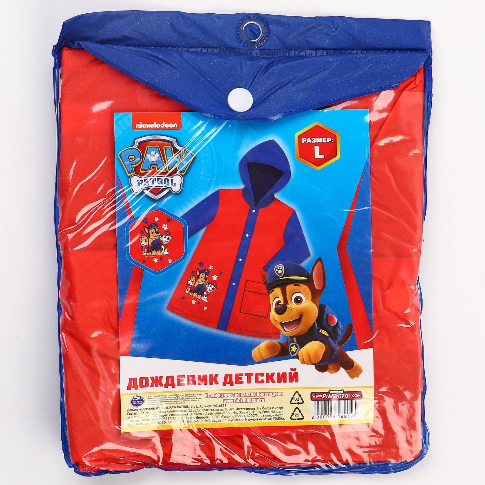 Дождевик детский, размер L, 110-120 см , щенячий патруль