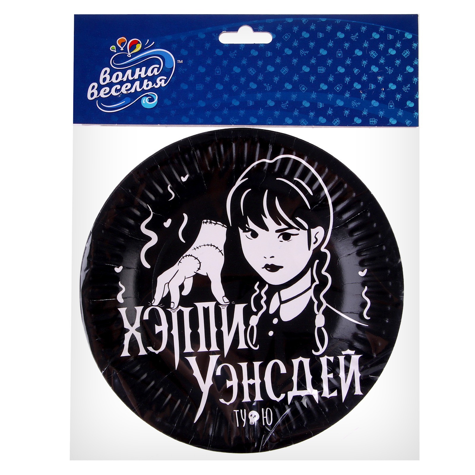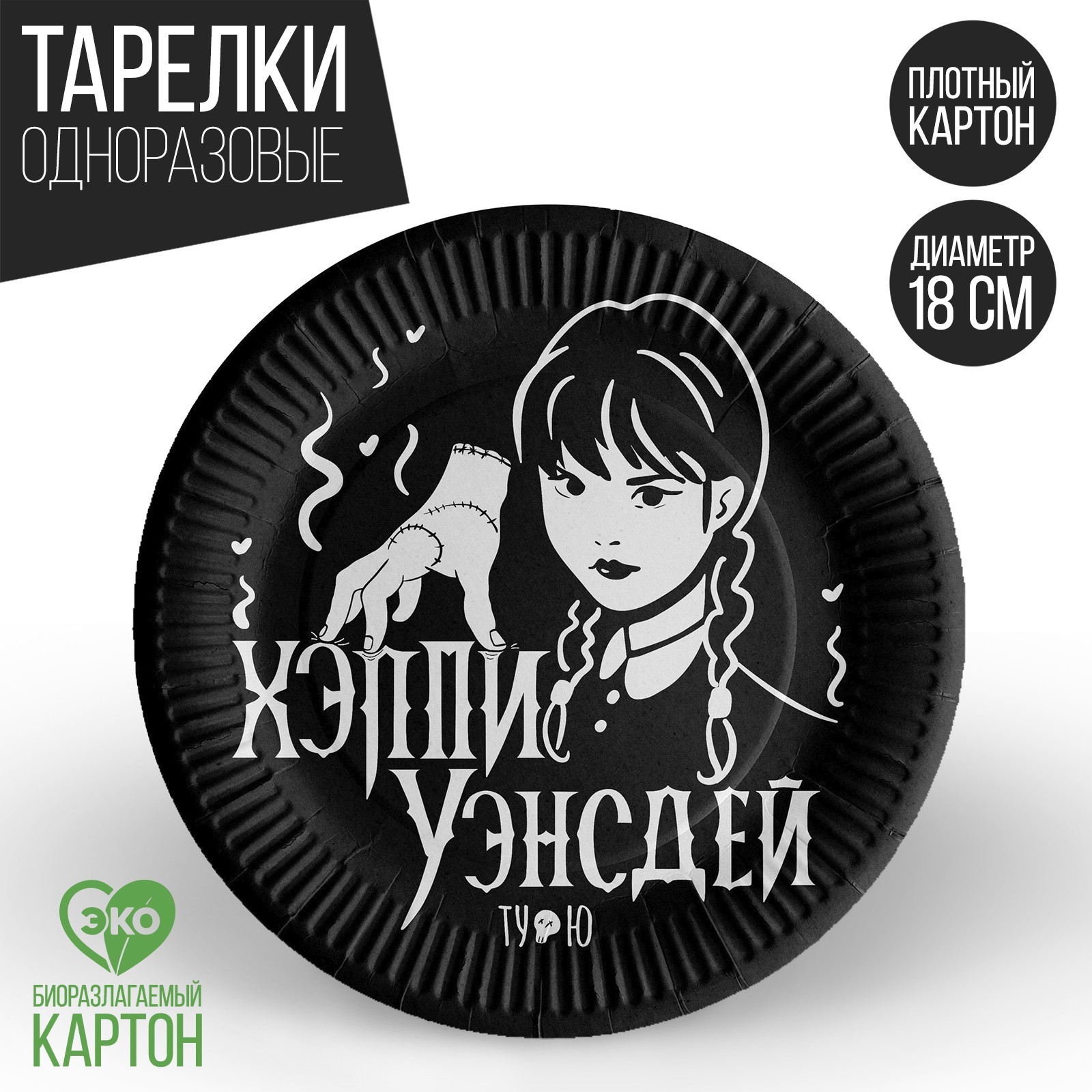 Тарелка одноразовая бумажная "мрачная стори", набор 6 штук, 18 см