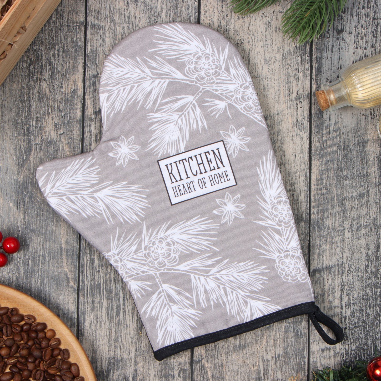 Новый год.варежка-прихватка этель "рождественские ветки" 20х28 см, 100% хл, ватин 250 г/м2