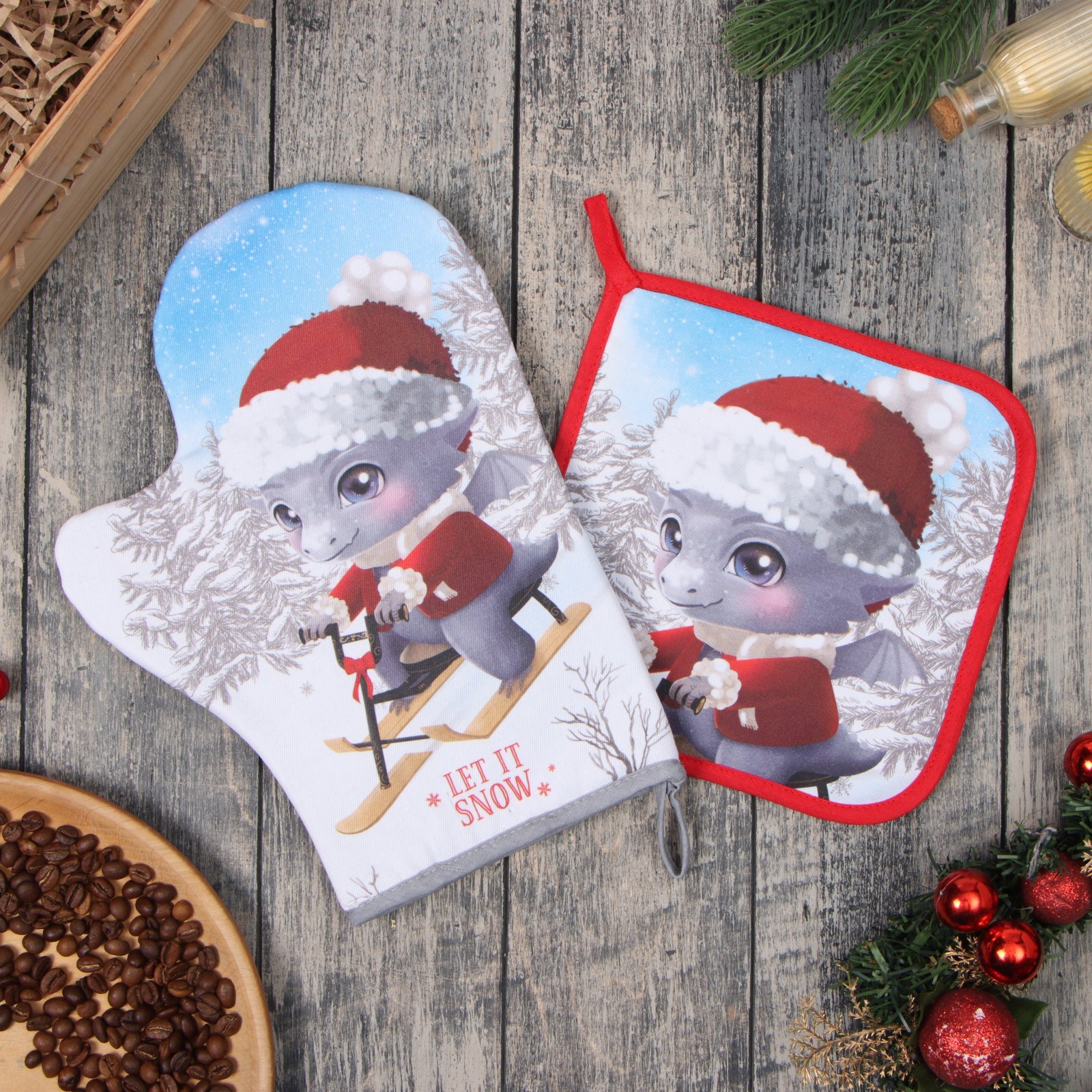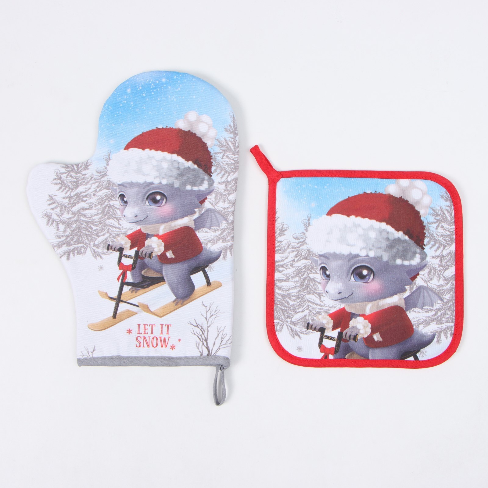 Набор кух. этель "новогодние забавы": прихватка 19х19 см, варежка-прихватка 20х28 см, 100% х
