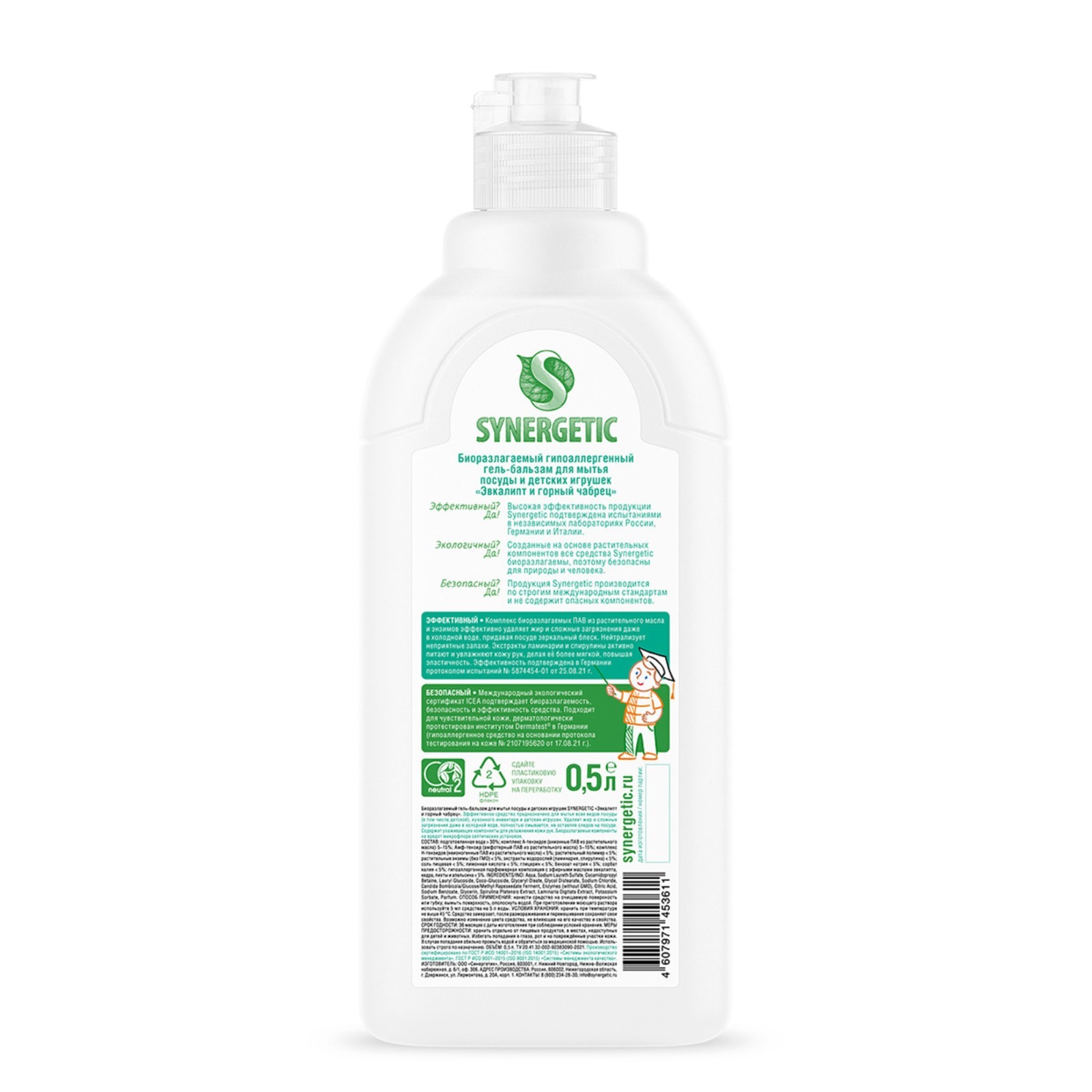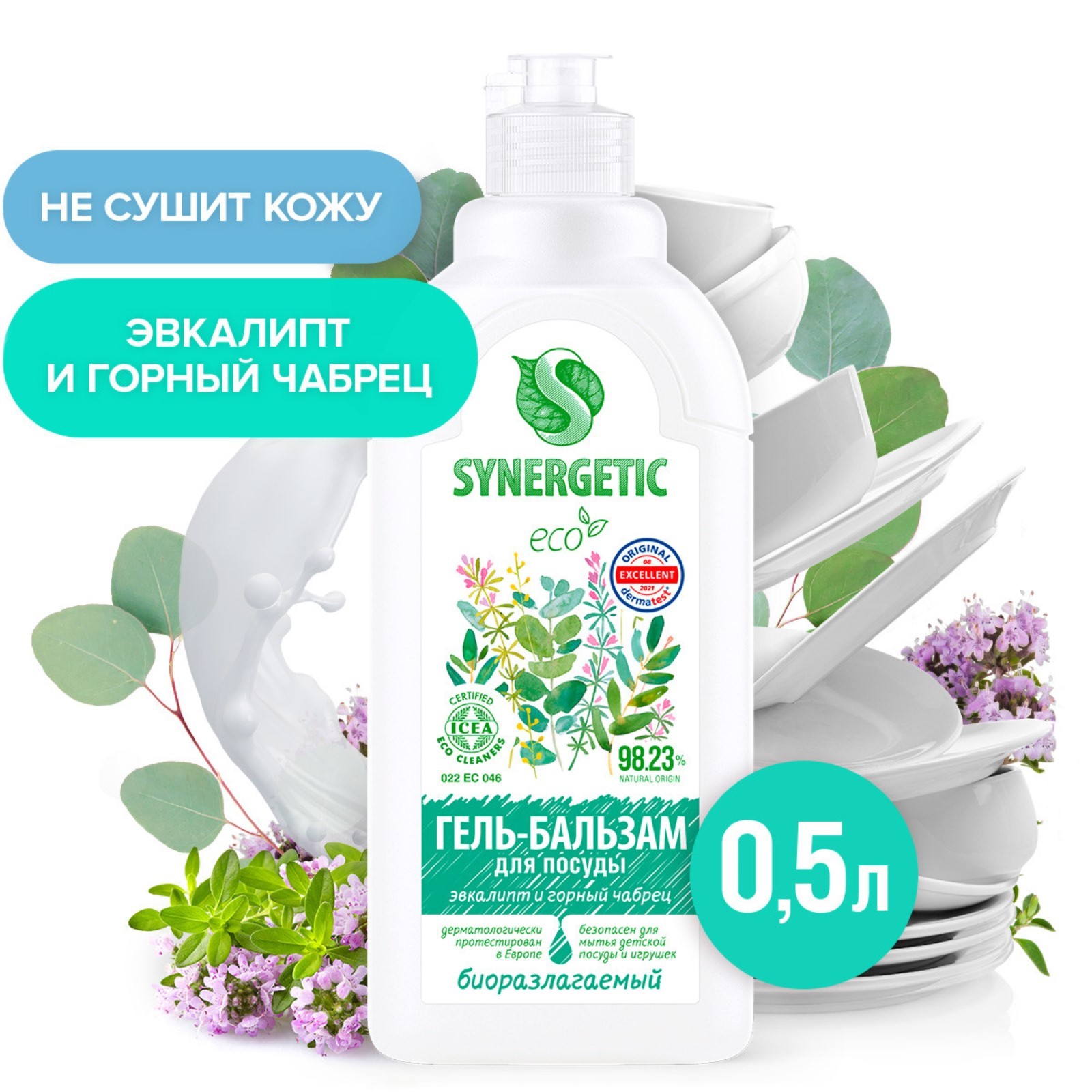 Гель-бальзам для мытья посуды и детских игрушек Synergetic эвкалипт и горный чабрец,биоразлагаемый, 0,5л
