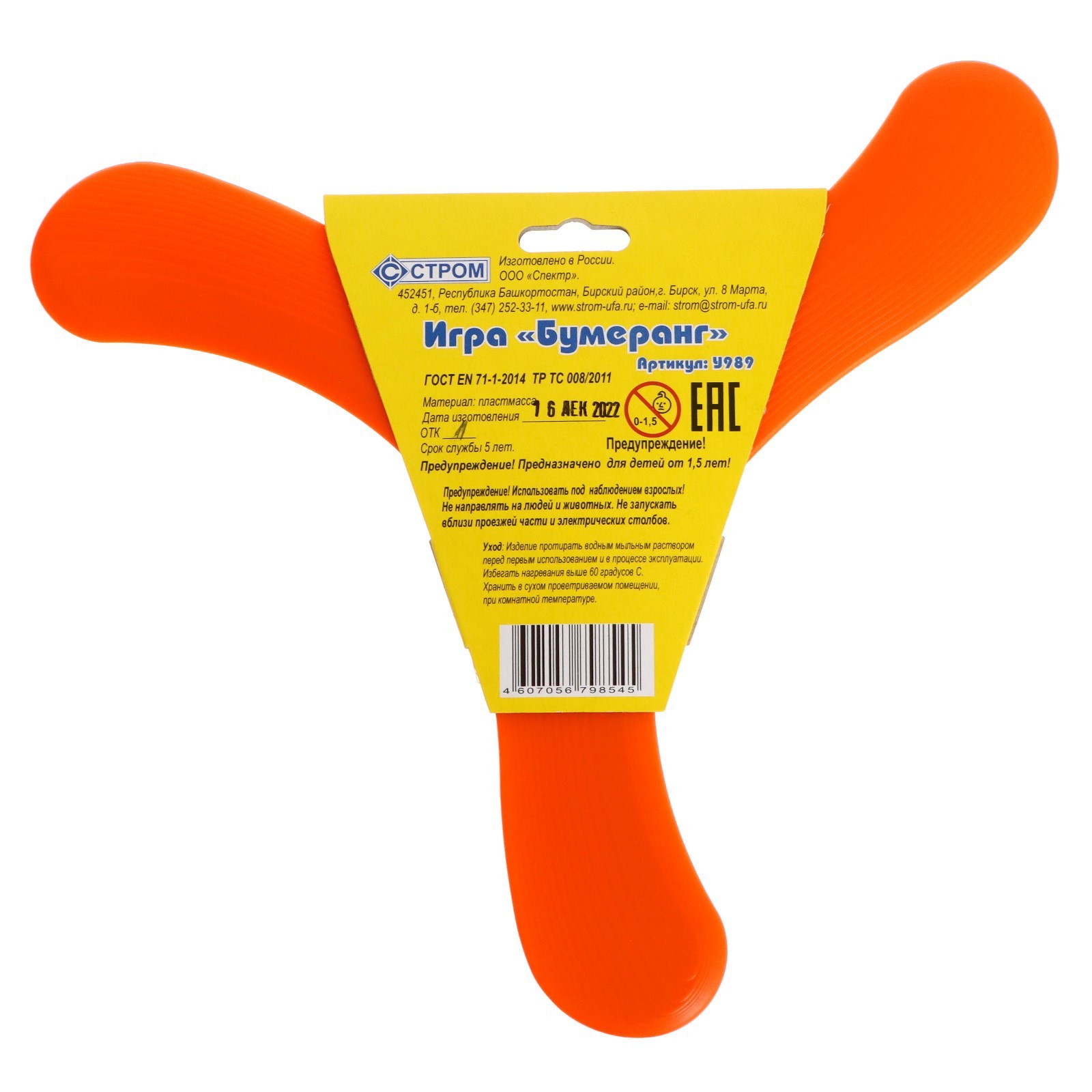 Бумеранг трёхлопастной, цвета микс. Игра с бумерангом поможет не только весело провести время на свежем воздухе, но и станет эффективным средством развития физических навыков. Отлично подойдёт детям от 1, 5 лет. ОсобенностиИгрушка изготовлена из лёгкого и прочного пластика, что позволяет ей летать на большие расстояния. Развивает подвижность, ловкость и меткость. Игра с бумерангом требует от ребёнка точности и умения рассчитывать траекторию полета. Способствует укреплению мышц рук и плечевого пояса. Повышает концентрацию внимания и улучшает координацию движений. Игра развивает сосредоточенность и умение быстро реагировать на ситуацию. Способствует развитию творческого мышления. Игрушку можно использовать для различных упражнений, которые способствуют развитию воображения и креативности. Бумеранг — это отличный подарок для детей, которые любят активный отдых и прогулки на свежем воздухе. Цвет: МИКС Возраст: От 1.5 лет Материал: Пластик Вид игрушки: Бумеранги Температурное ограничение: Нет  развернуть описание ▼