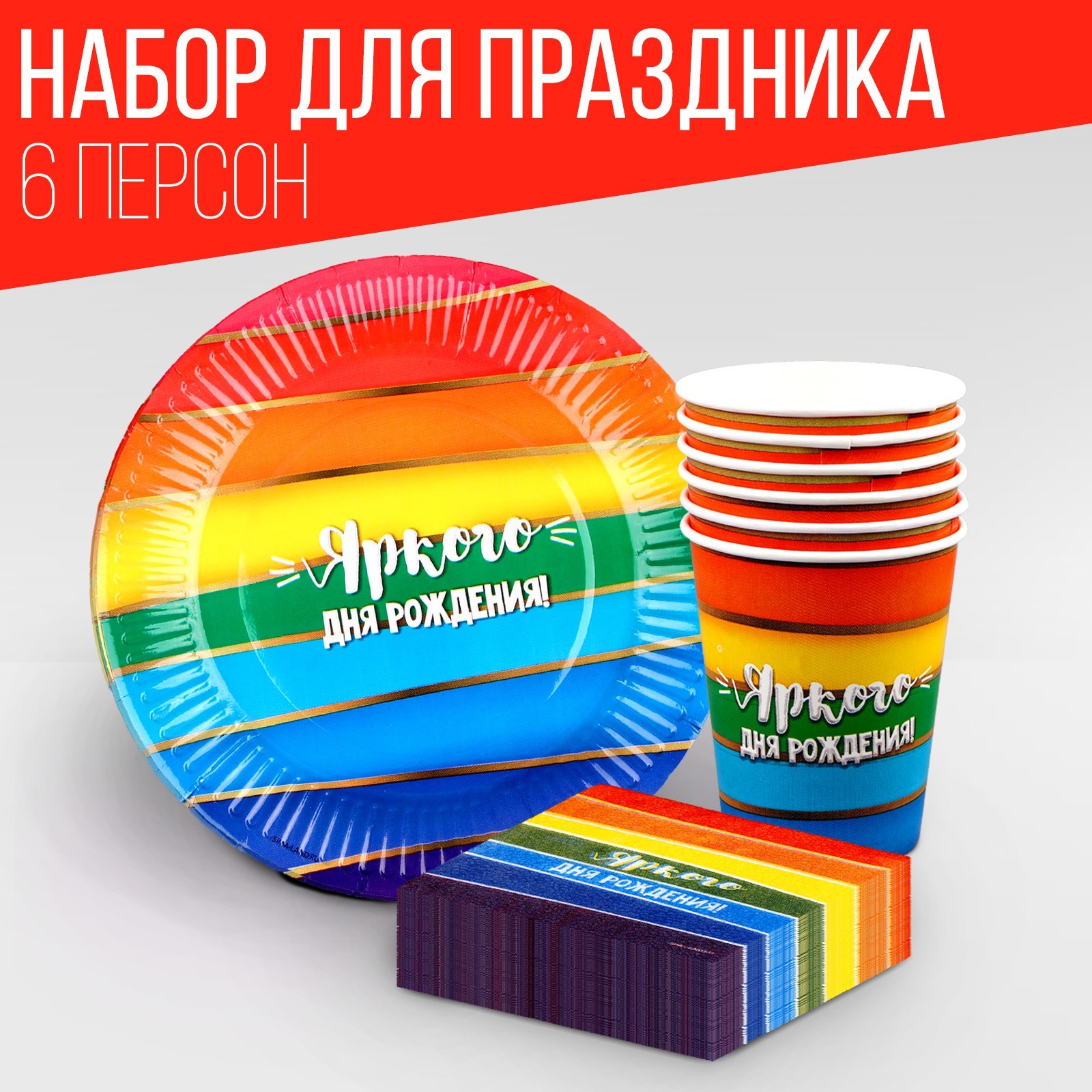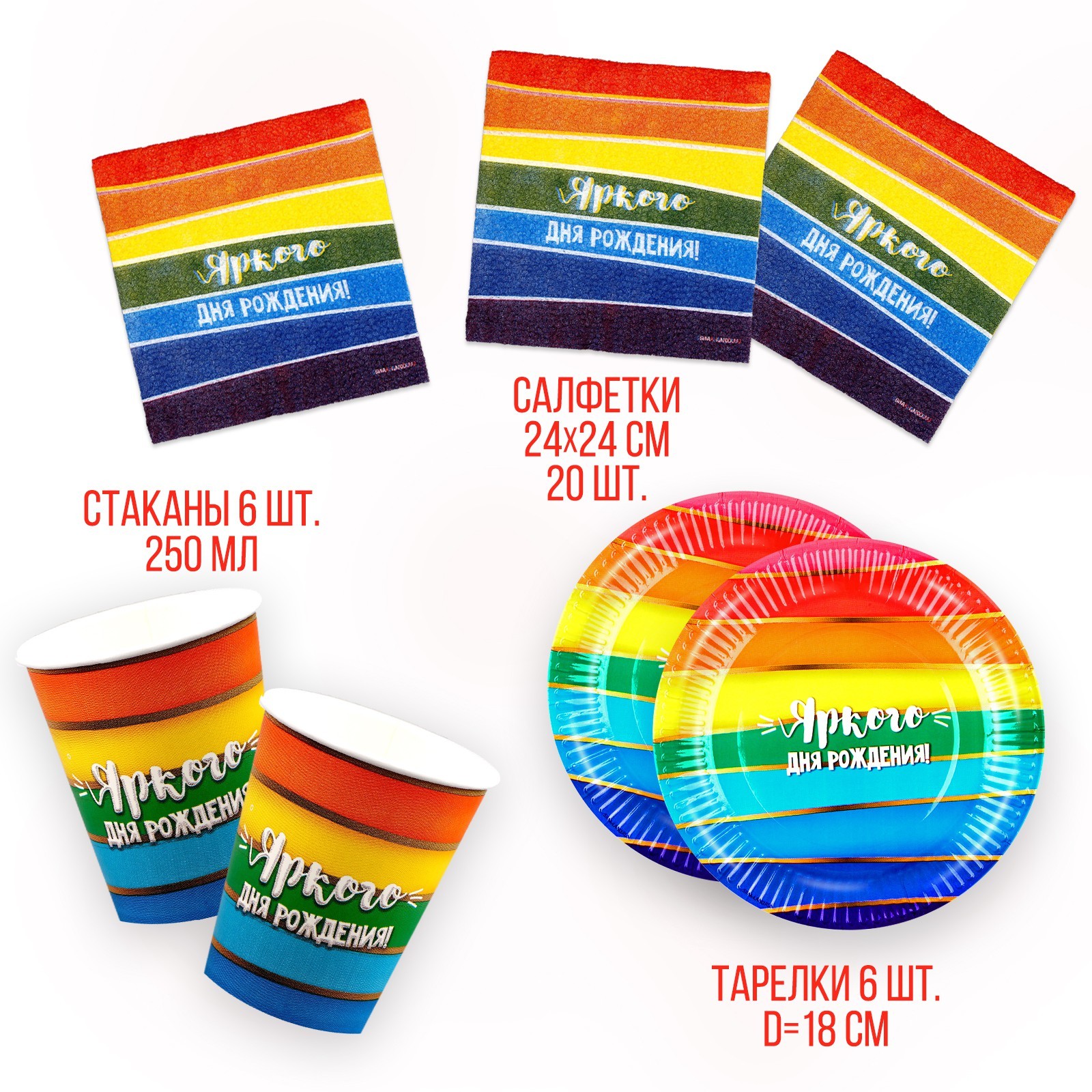 Набор посуды «яркого дня рождения»: салфетки 20 шт., стаканы 6 шт., тарелки 6 шт.