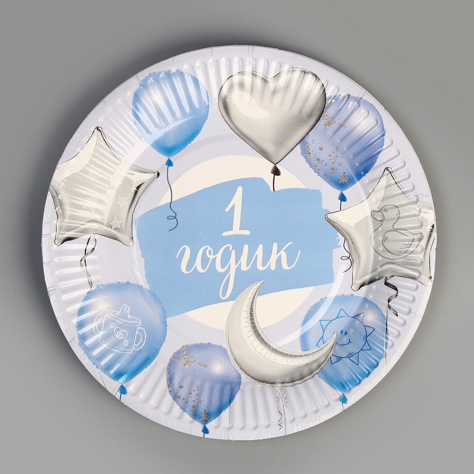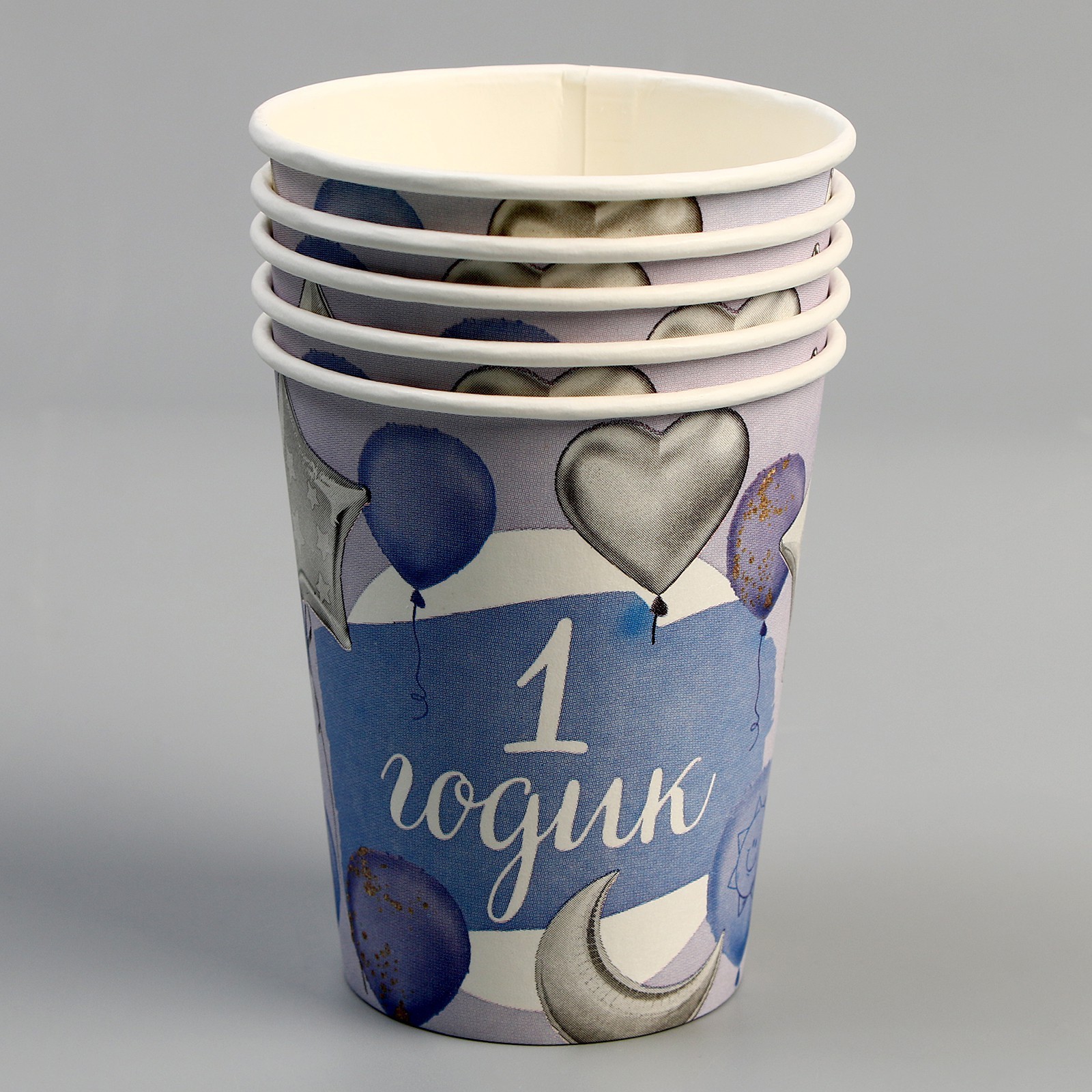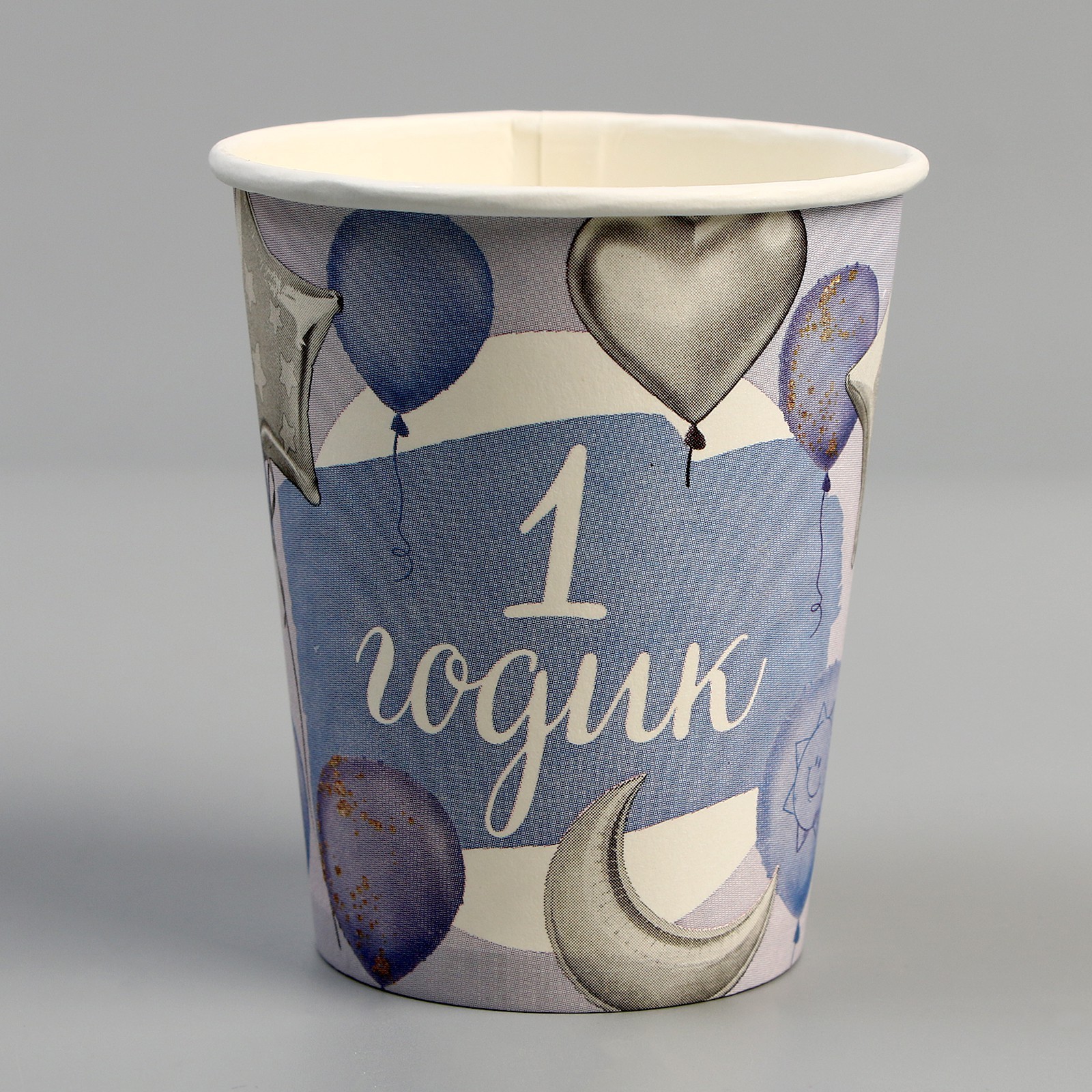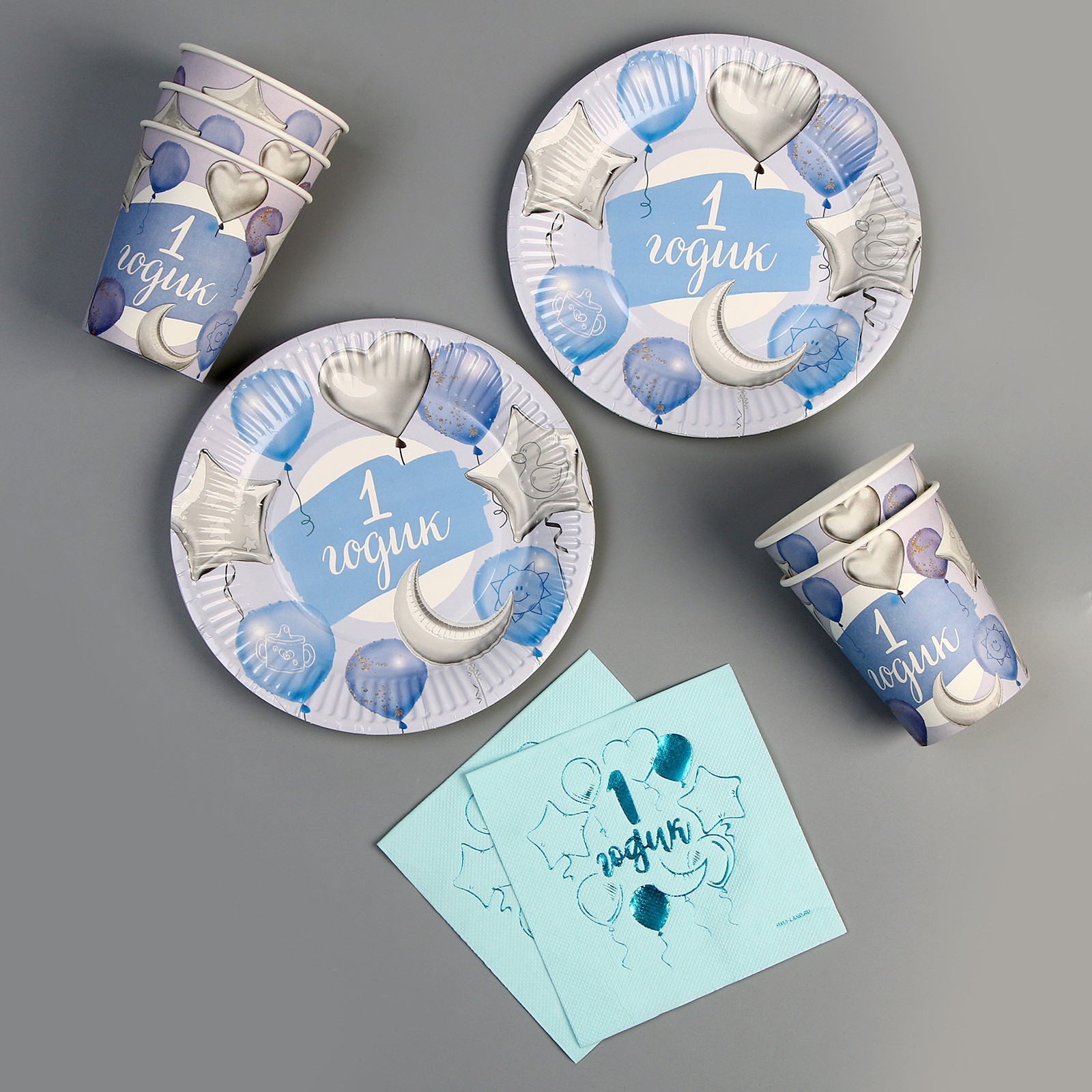 Набор посуды «1 годик»: салфетки 20 шт., стаканы 6 шт., тарелки 6 шт., золотое тиснение