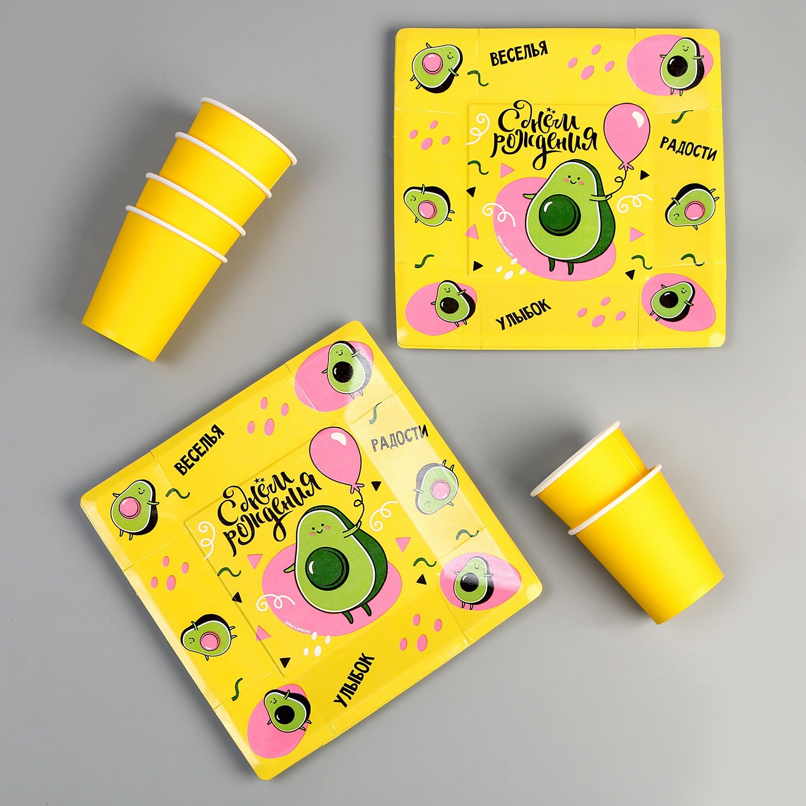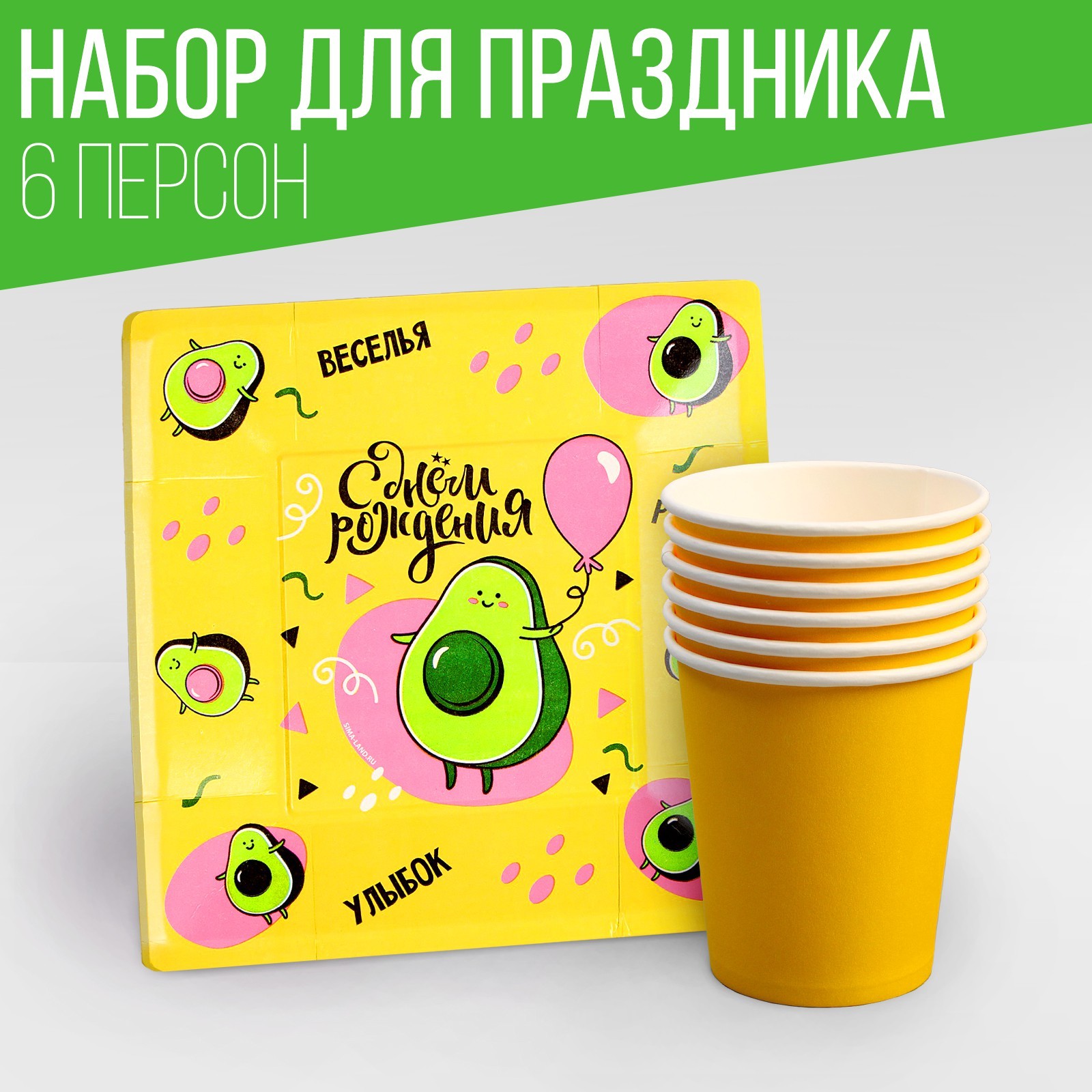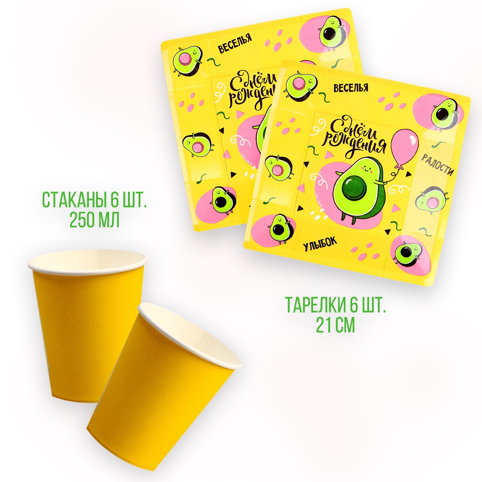 Набор посуды «с днём рождения! авокадо»: стаканы 6 шт., тарелки 6 шт.