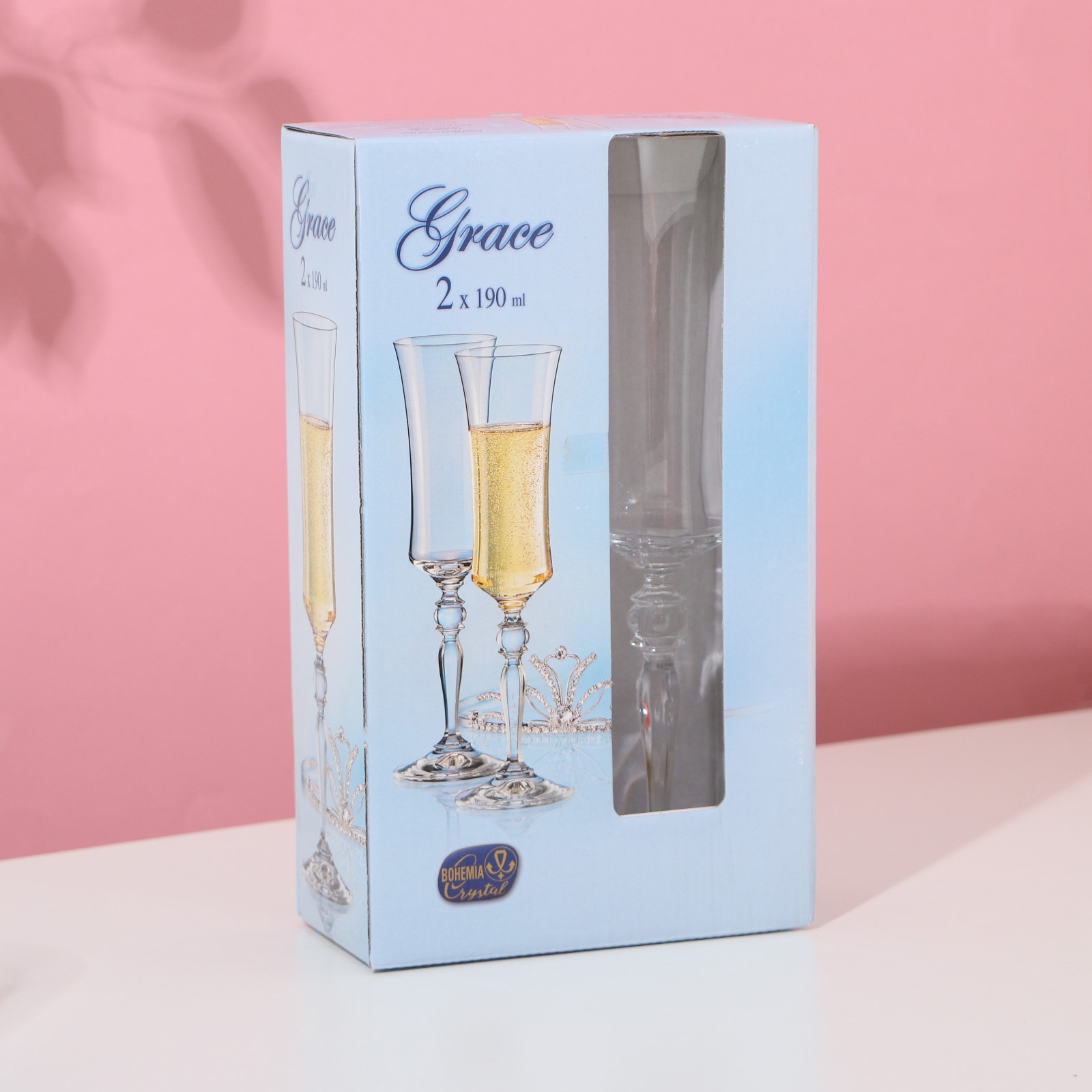 Набор бокалов для шампанского «грация», 2 шт, 190 мл, хрустальное стекло