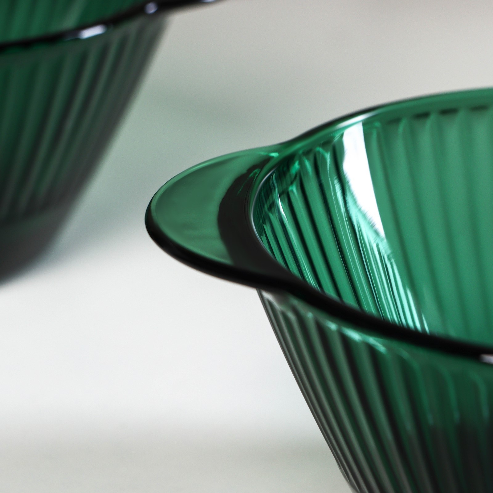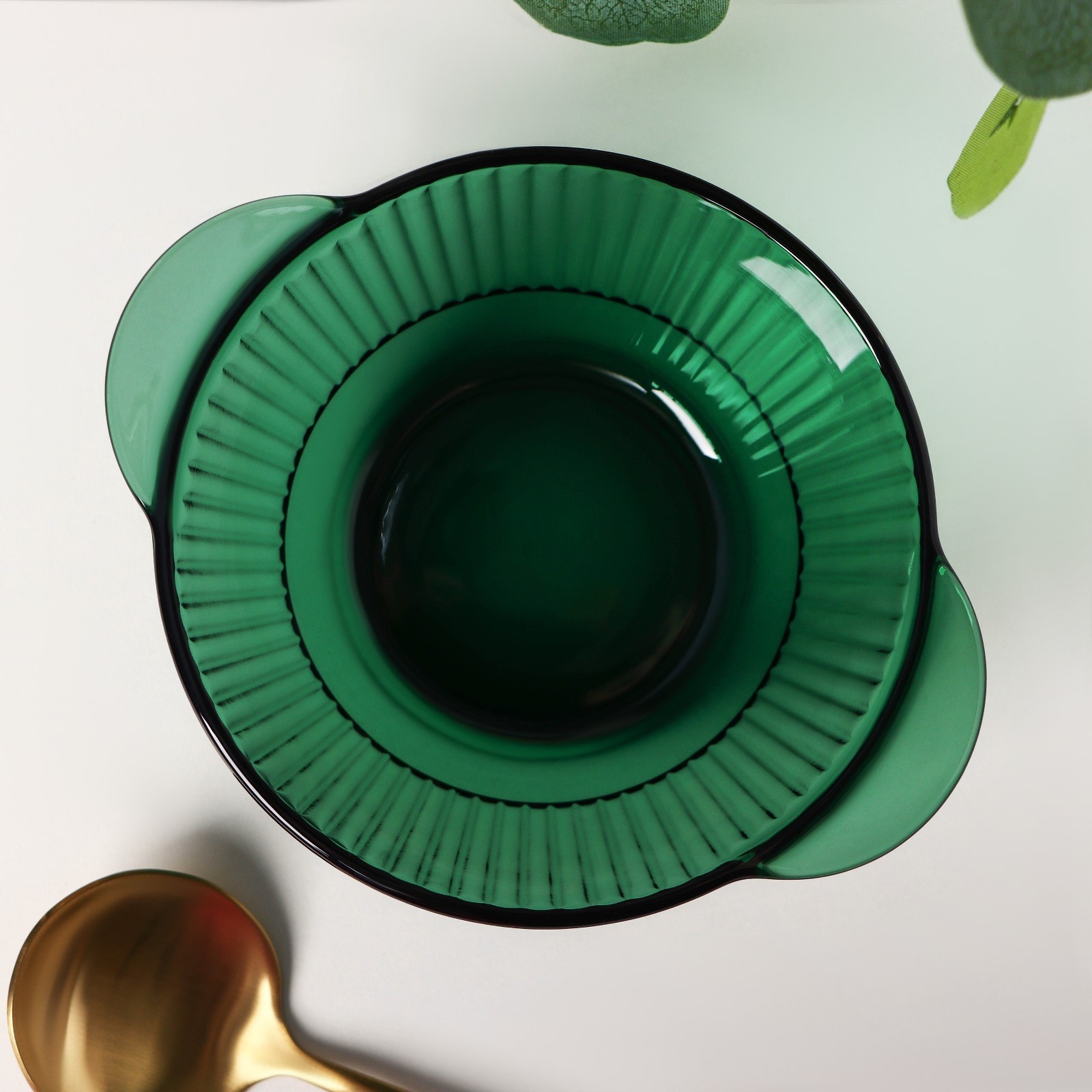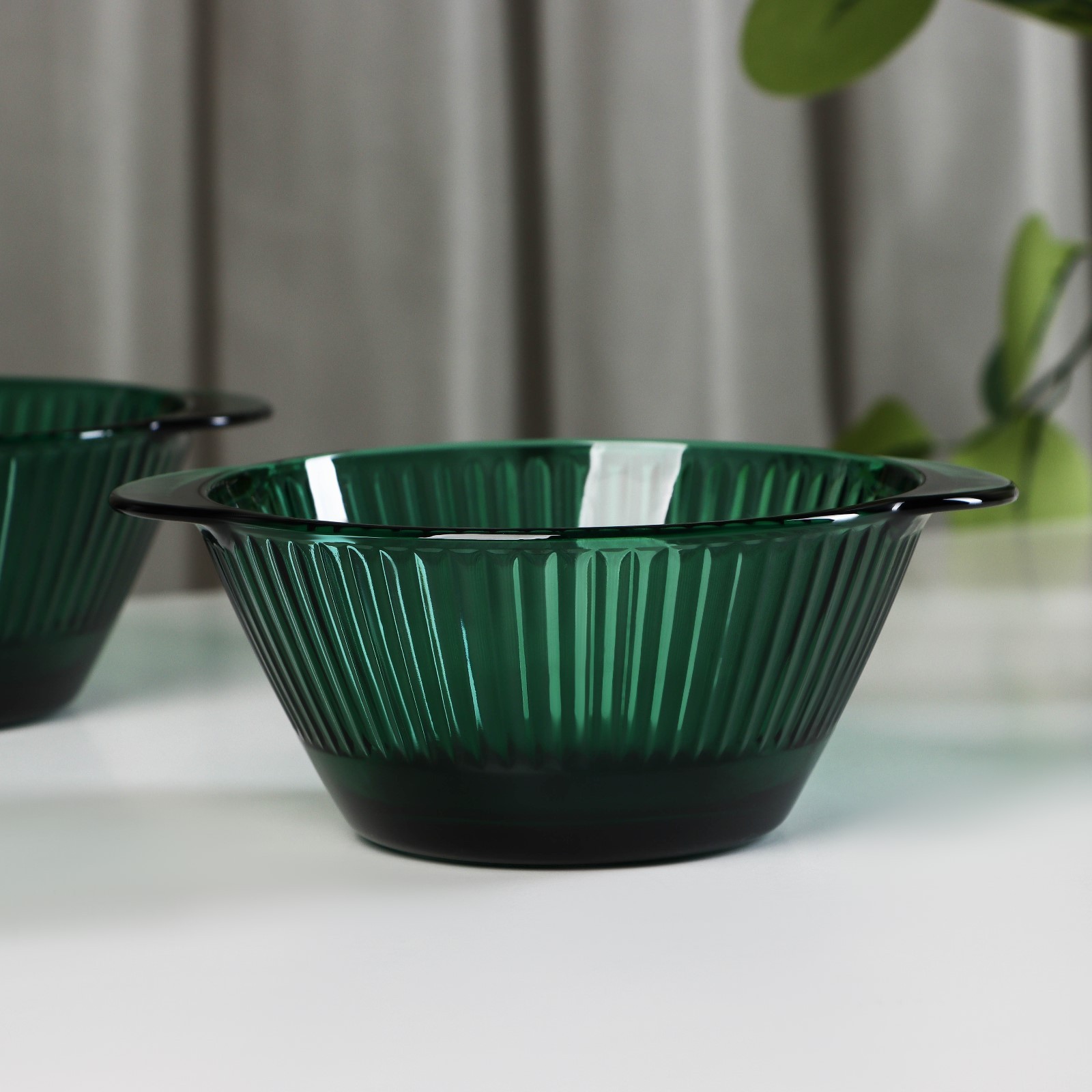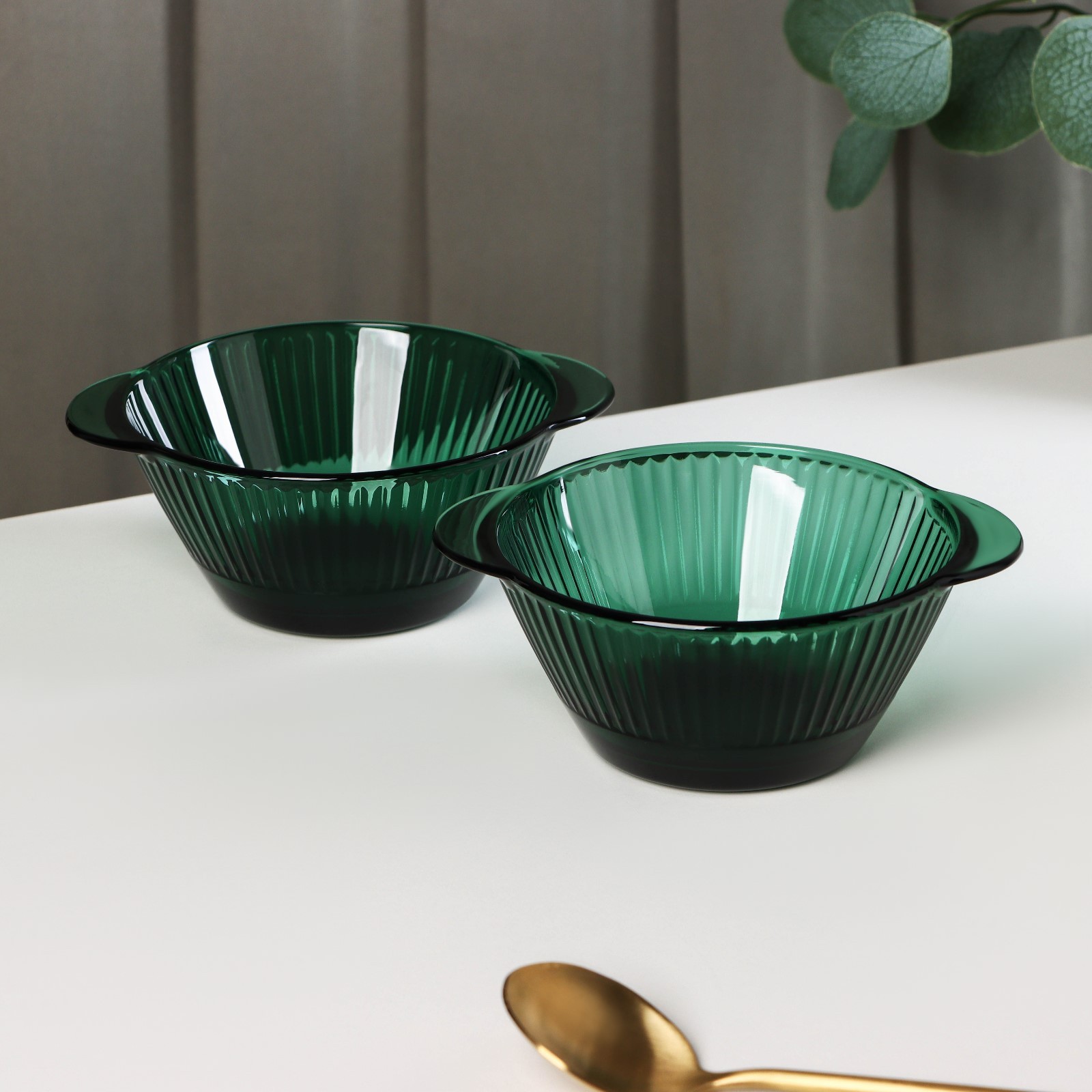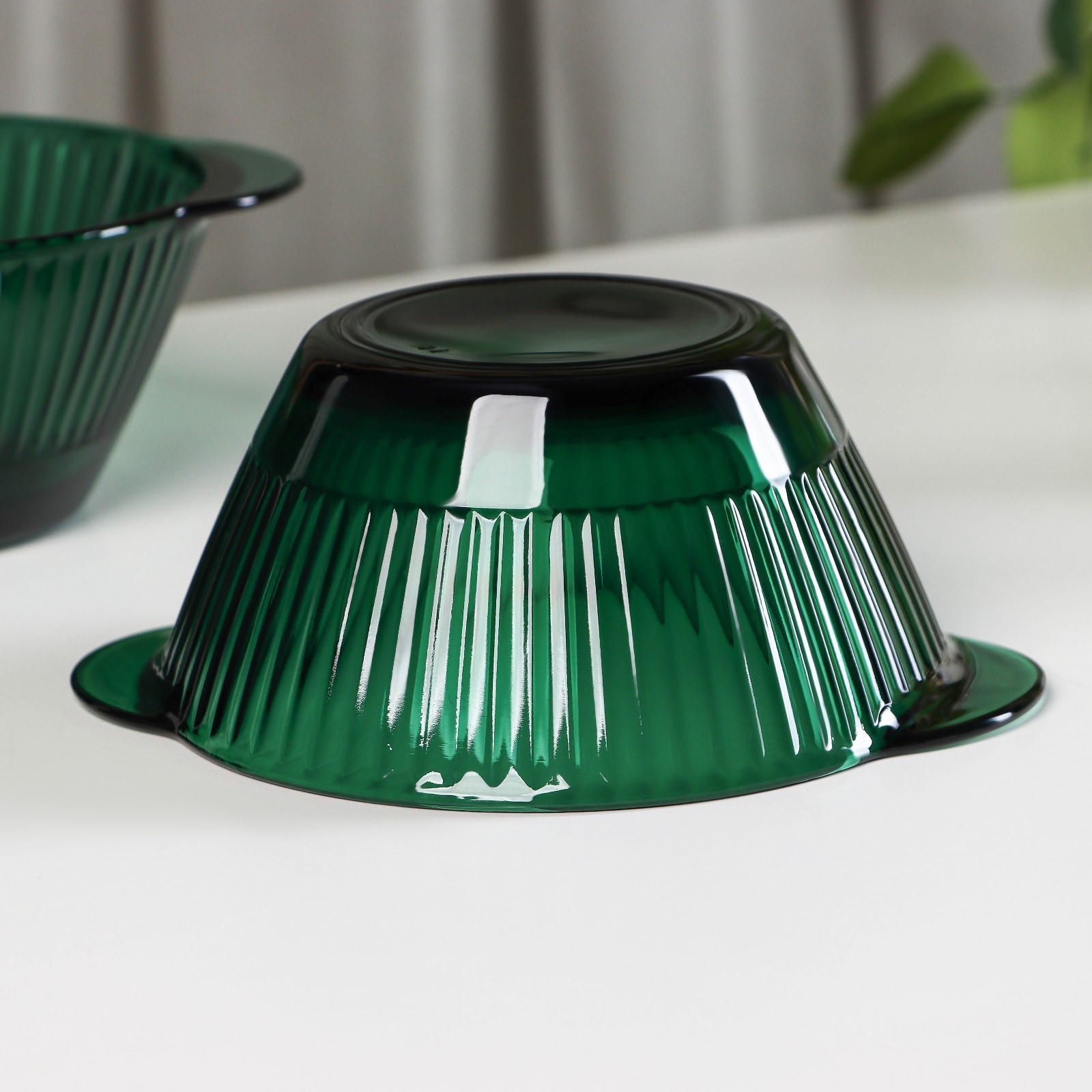 Набор стеклянных мисок «вино верде», 450 мл, 16,5x6,5 см, 2 шт. Посуда из цветного стекла отличается практичностью и эффектным внешним видом. Стеклянные миски «Верде» прекрасно подойдут для салатов, холодных закусок и сухих снеков. Стильный дизайн позволит использовать тарелки как в повседневной сервировке, так и на праздниках и торжествах. Чтобы тарелочки служили долгие годы необходимо соблюдать правила ухода и эксплуатации изделия. Стекло очень чувствительно к перепадам температуры. Рекомендуется избегать термической обработки (сильного нагрева), падений и применения высокоабразивных моющих средств. Нежелательно мыть в посудомоечной машине и использовать в СВЧ-печи. Цвет: Зелёный Форма: Круглая Диаметр, см: 16.5 Объём, л: 0.45 В наборе, шт.: 2 Тематика: Однотонная Крышка: Нет Материал: Стекло Вид тарелки: Глубокая Можно мыть в посудомоечной машине: Нет Можно использовать в СВЧ-печи: Нет Текстура: С рельефом Особенности: Без особенностей Матовая поверхность: Нет Для горячего: Нет Форма: Круг, шар, цилиндр  развернуть описание ▼