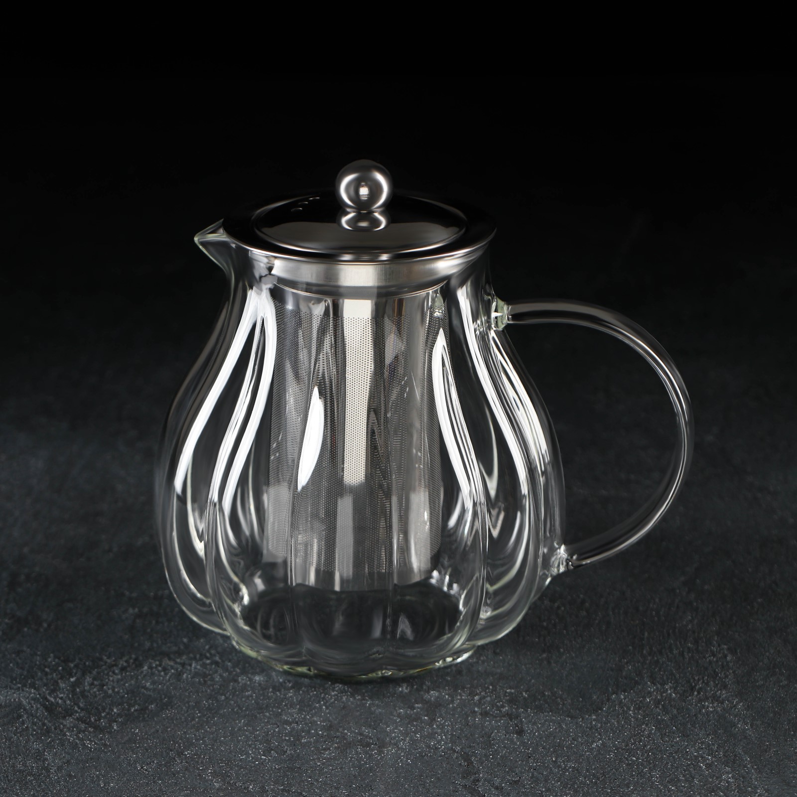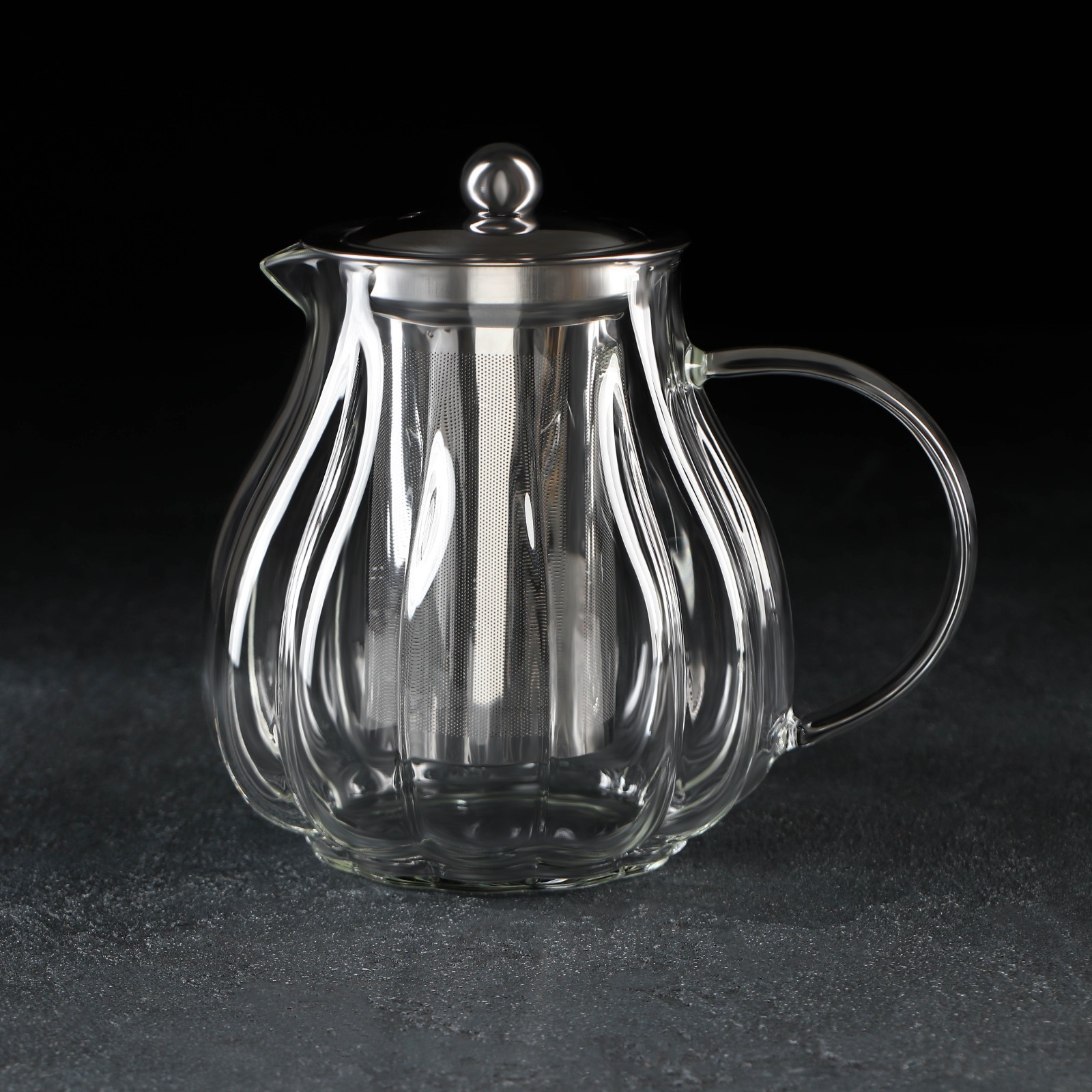 Чайник стеклянный заварочный с металлическим ситом «глори», 1 л