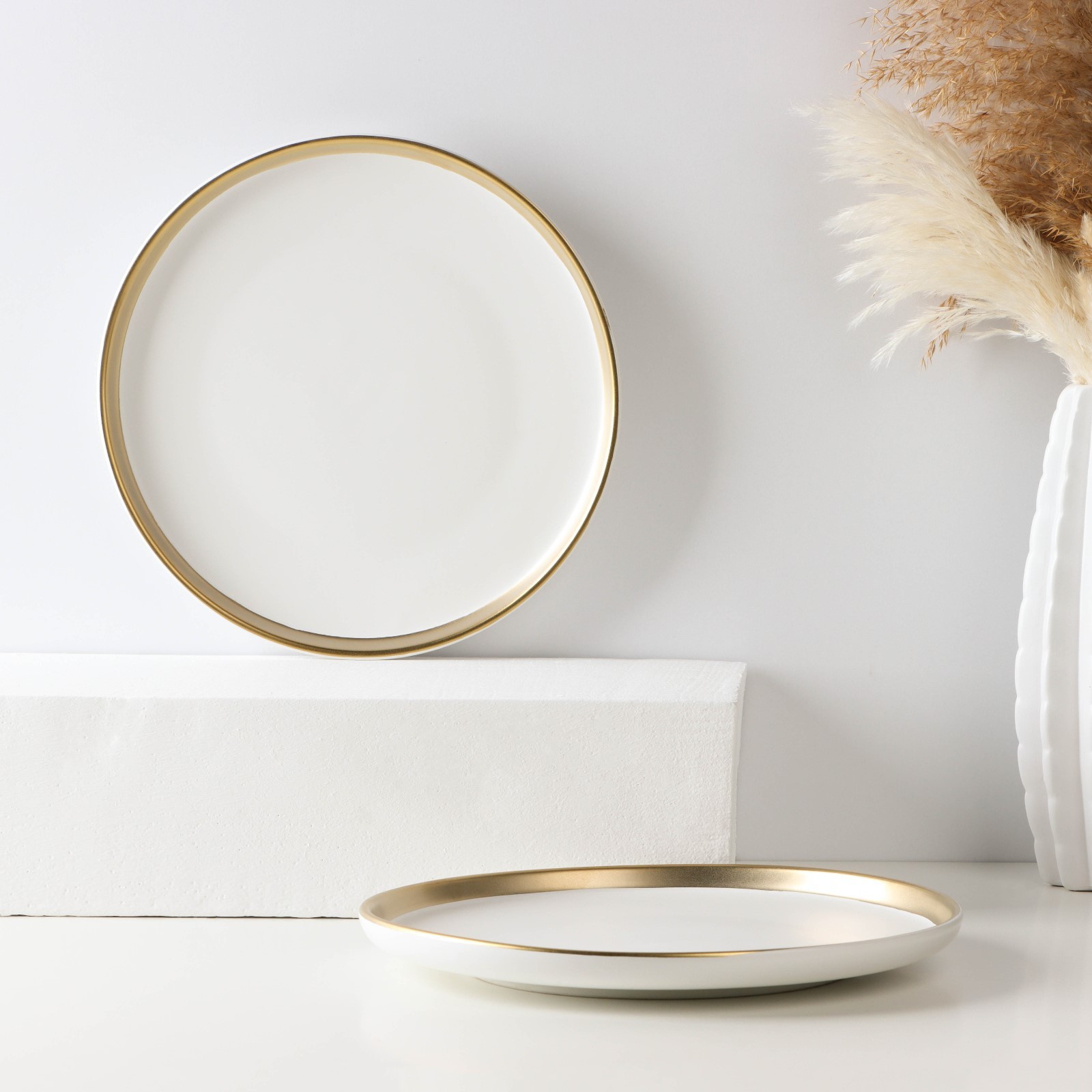 Набор фарфоровых тарелок «день», 2 предмета: d=25,5 см, цвет белый. Набор тарелок «День» выглядит роскошно и эффектно. Золотой ободок по краям тарелок придаёт классическим изделиям изысканный внешний вид. Посуда выполнена из качественного фарфора, не впитывает запахи, отличается прочностью, устойчива к перепадам температур. Нельзя использовать в посудомоечной машине и в СВЧ-печи. Цвет: Белый Форма: Круглая Диаметр, см: 25.5 parts count: 0 В наборе, шт.: 2 tnved: 6912002500 Тематика: Полоски, полоса Материал: Фарфор Вид тарелки: Плоская Можно мыть в посудомоечной машине: Нет Можно использовать в СВЧ-печи: Нет Текстура: Гладкая Особенности: С золотой отводкой Матовая поверхность: Да Для горячего: Да Форма: Круг, шар, цилиндр  развернуть описание ▼