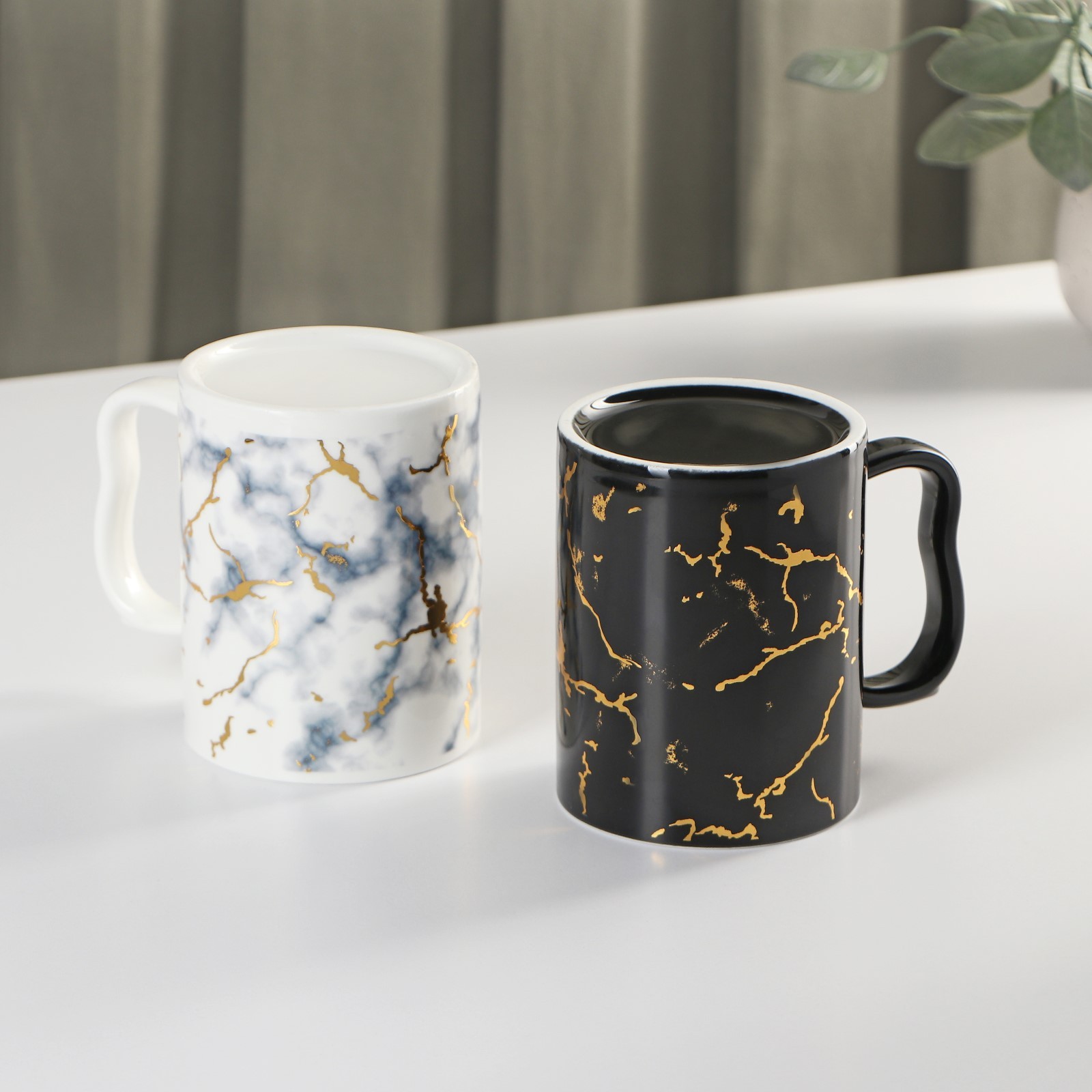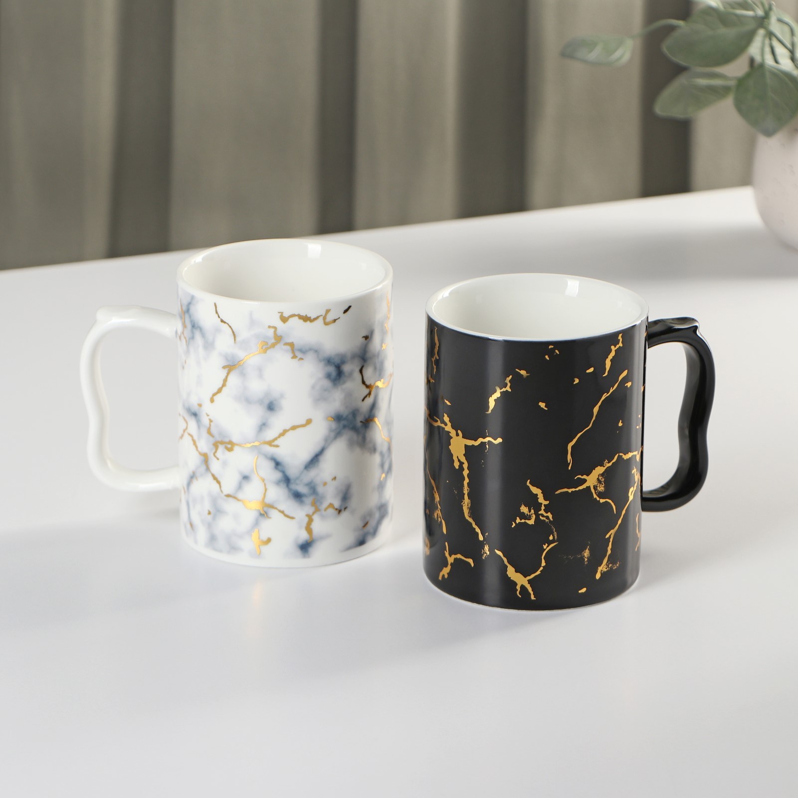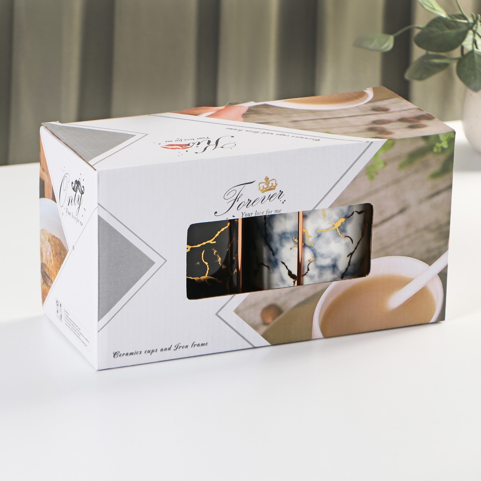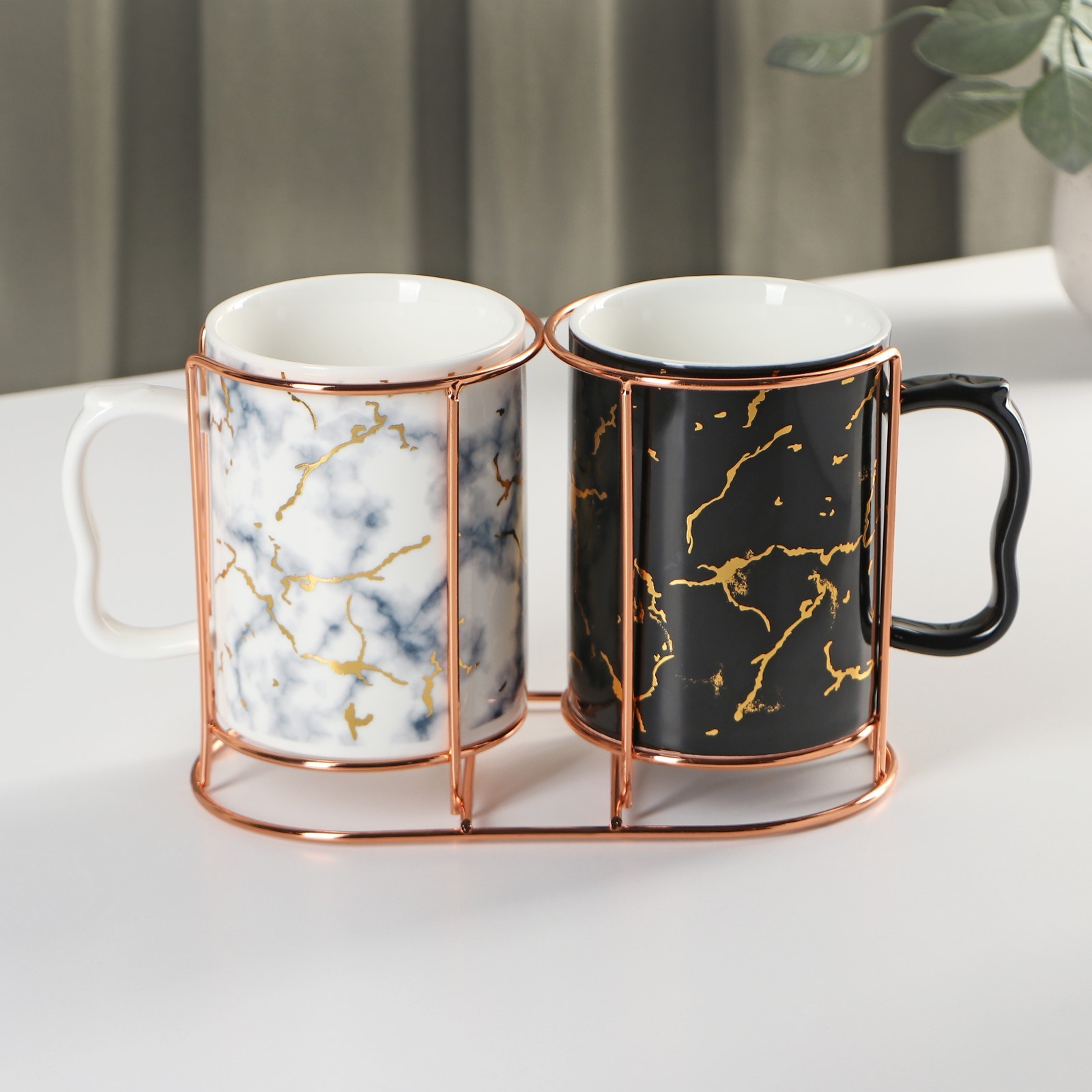 Набор кружек керамических на металлической подставке «мрамор», 2 предмета: 380 мл