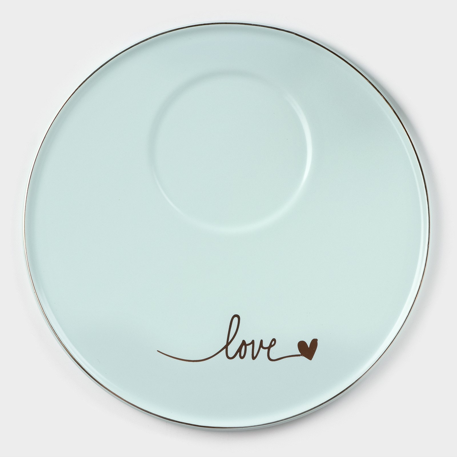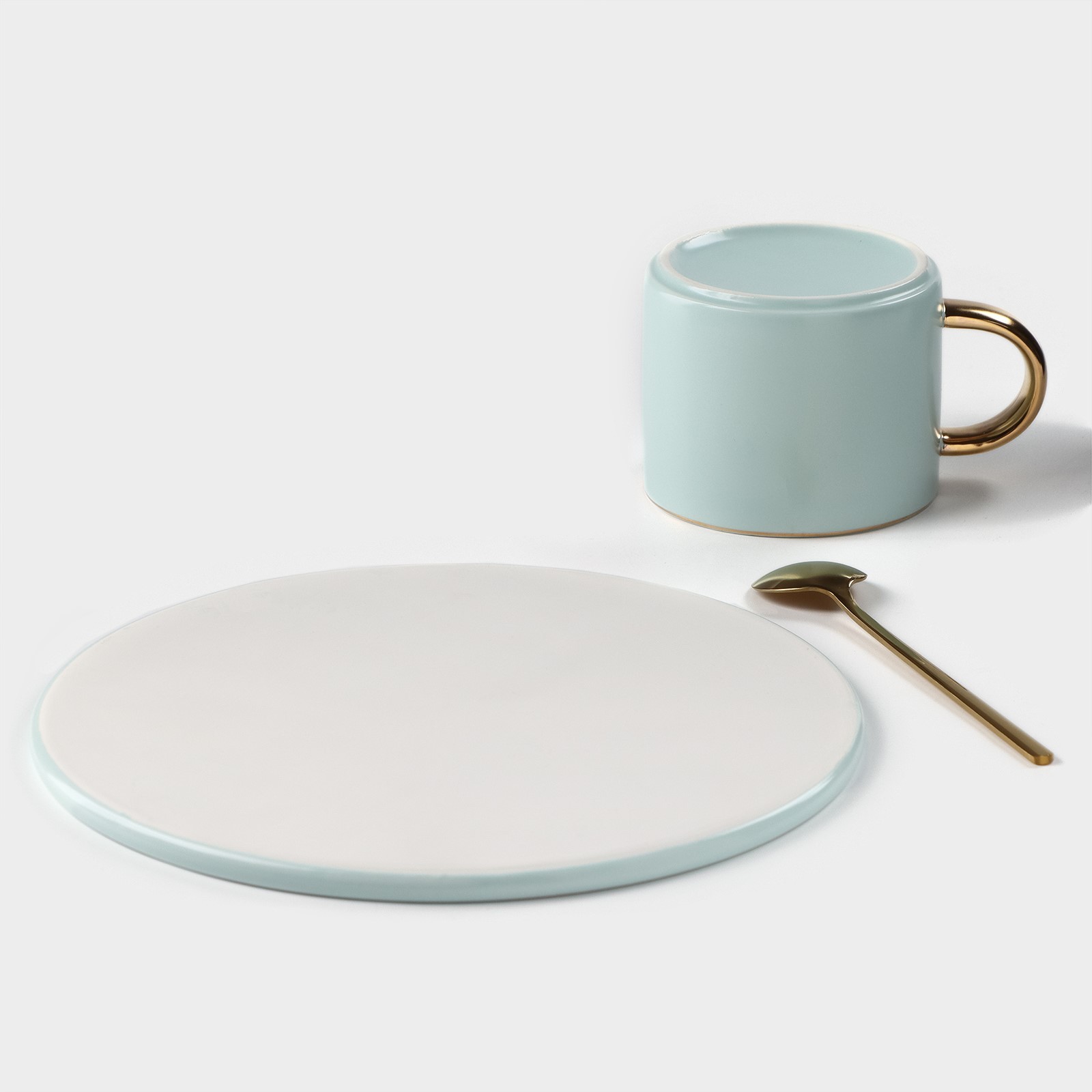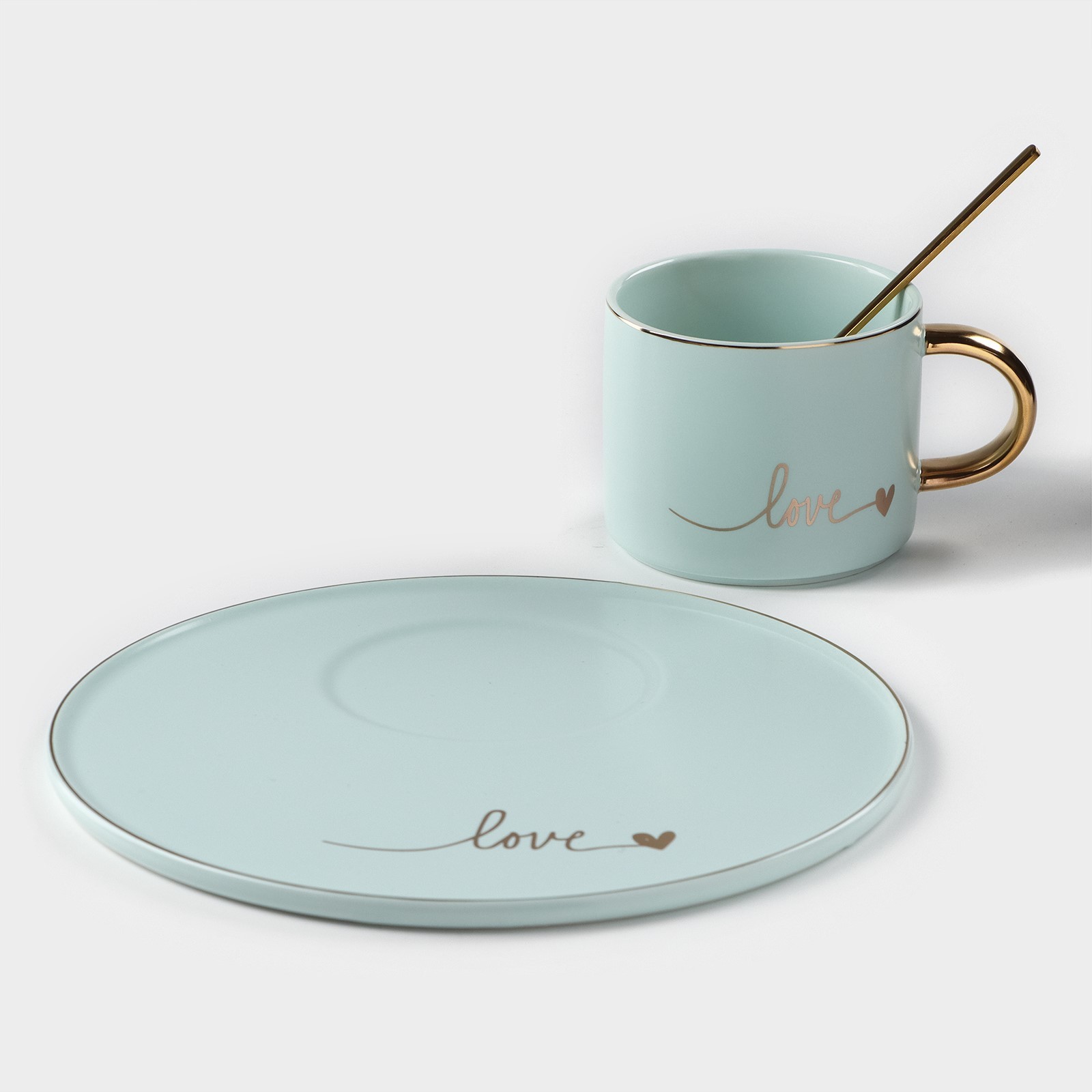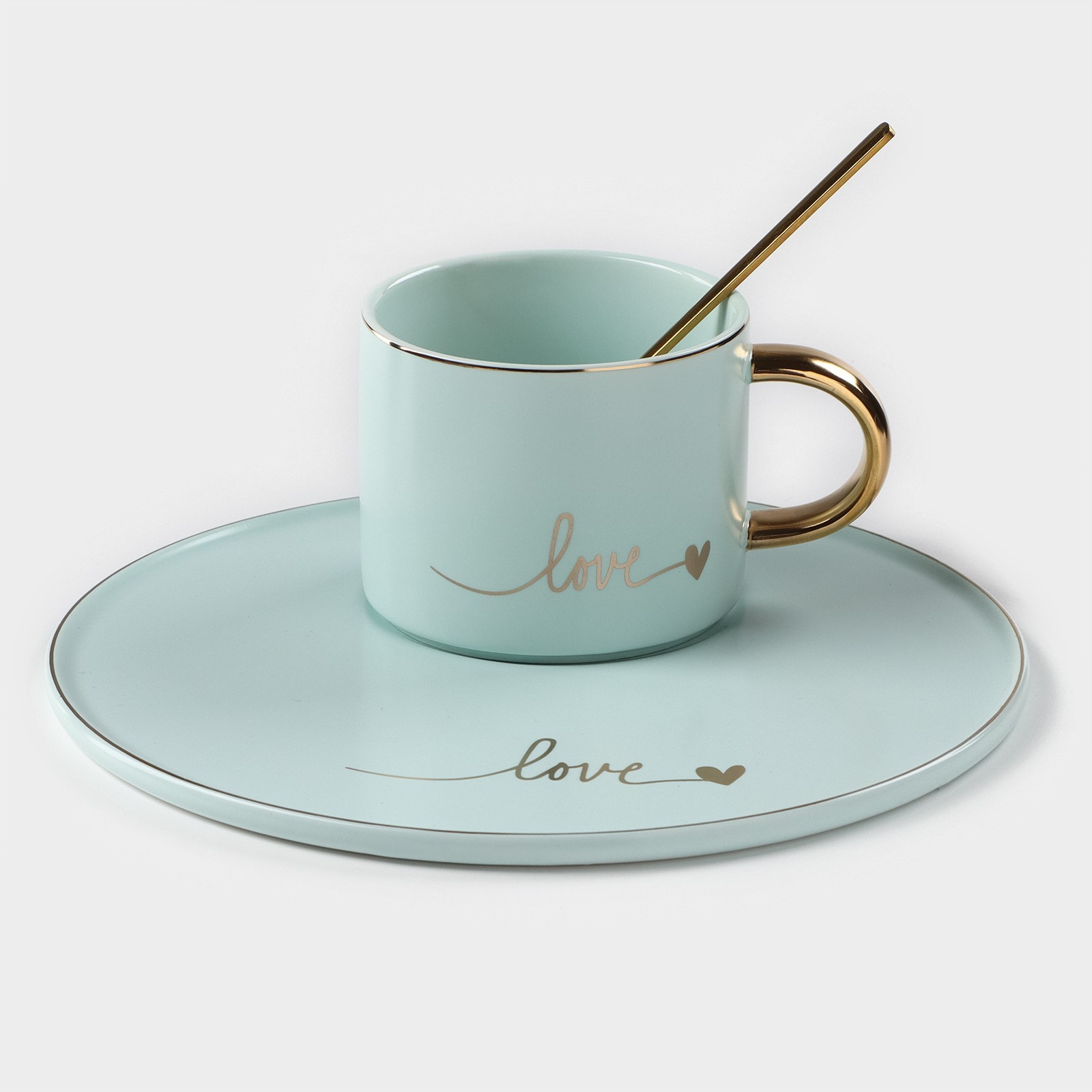 Кофейная пара керамическая «любовь», 3 предмета: кружка 200 мл, блюдце D=20 см, ложка H=14 см, цвет голубой