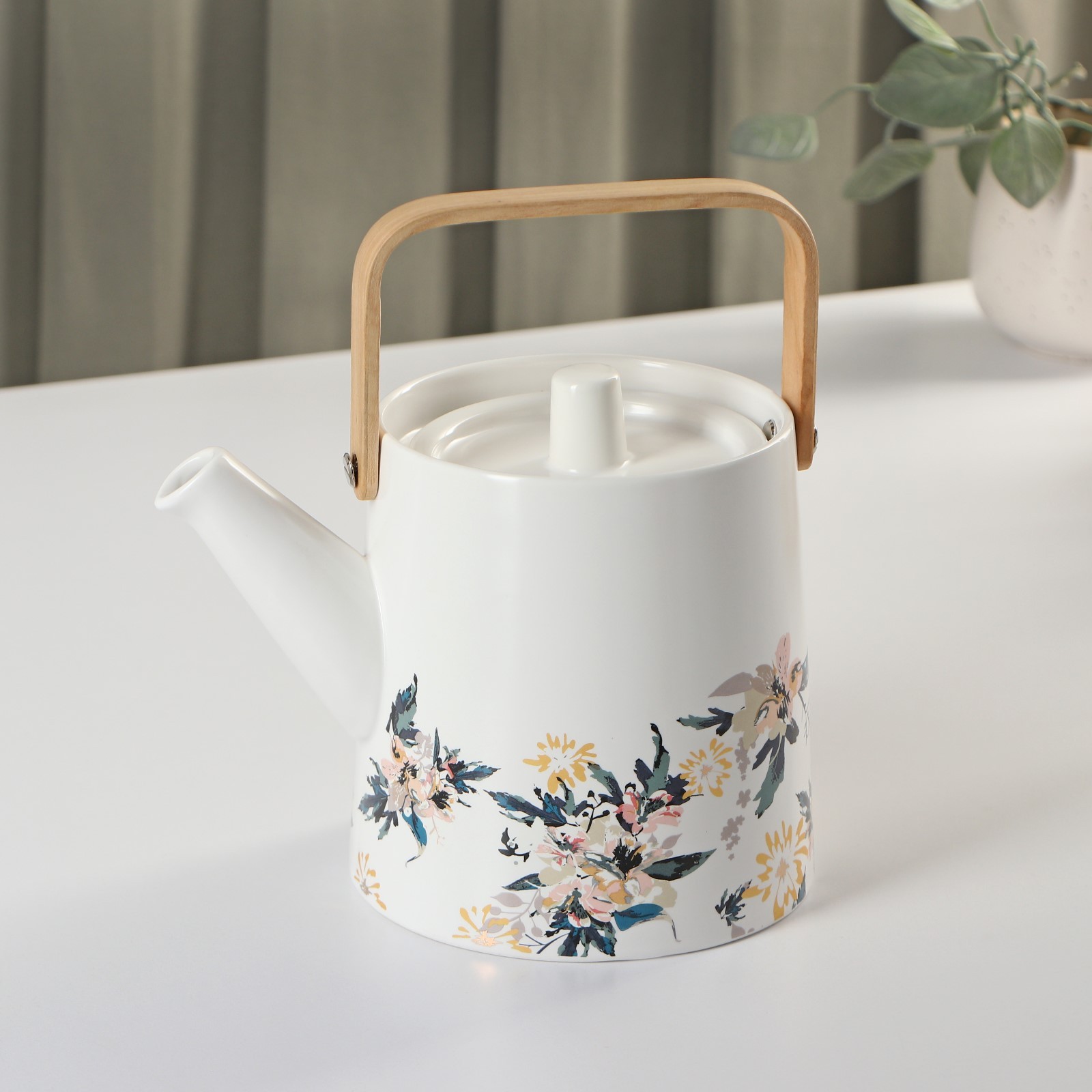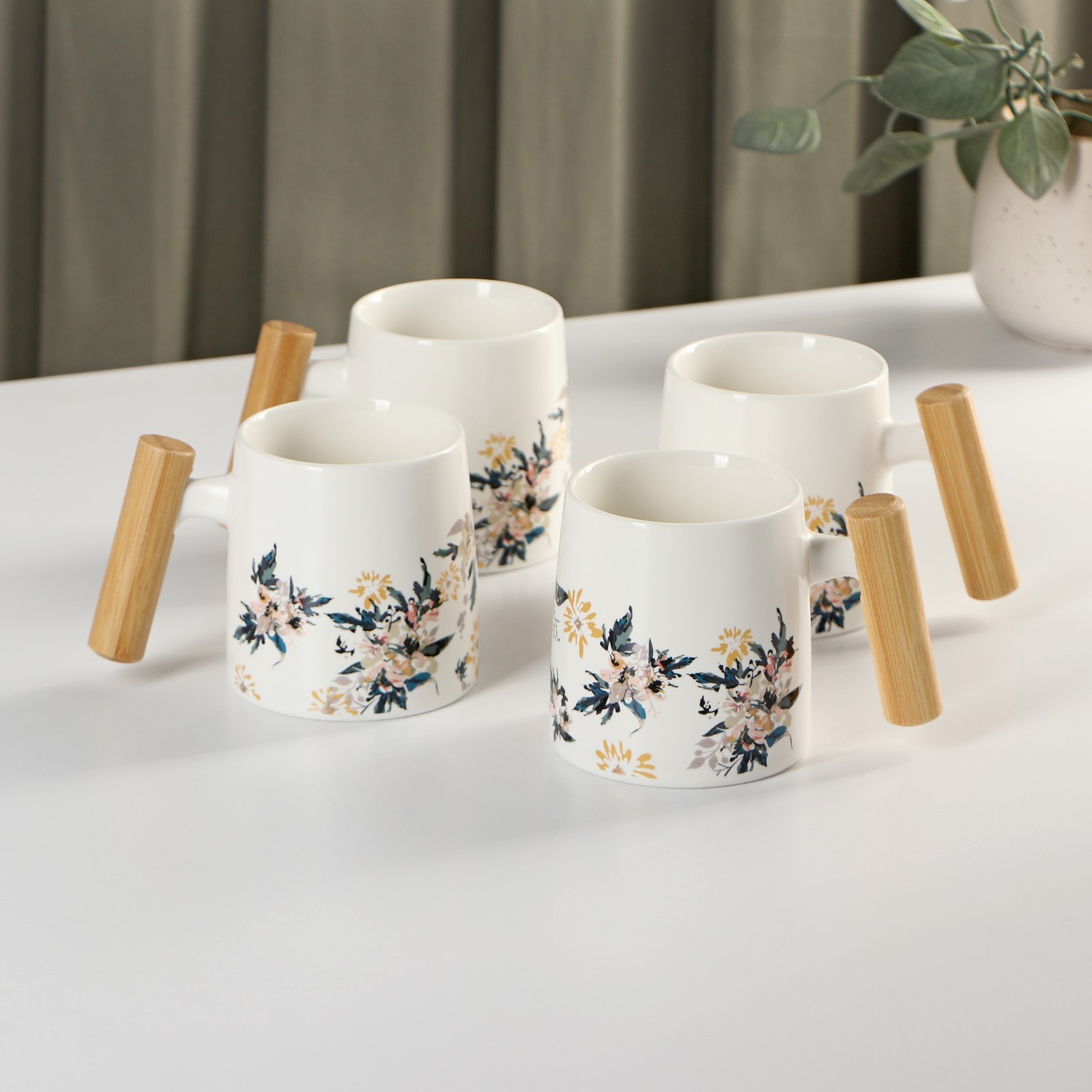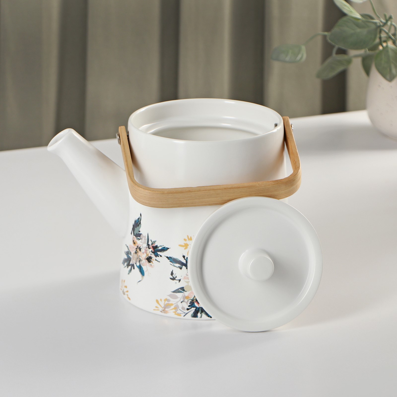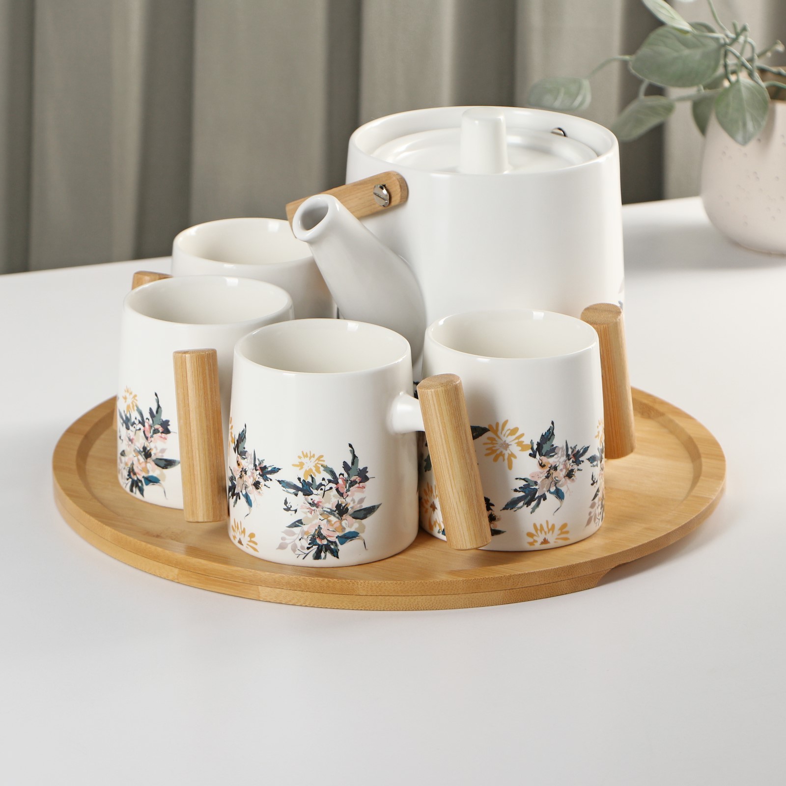 Набор керамический чайный «сакура», 6 предметов: 4 кружки 250 мл, чайник 1 л, поднос D=29 см, цвет белый