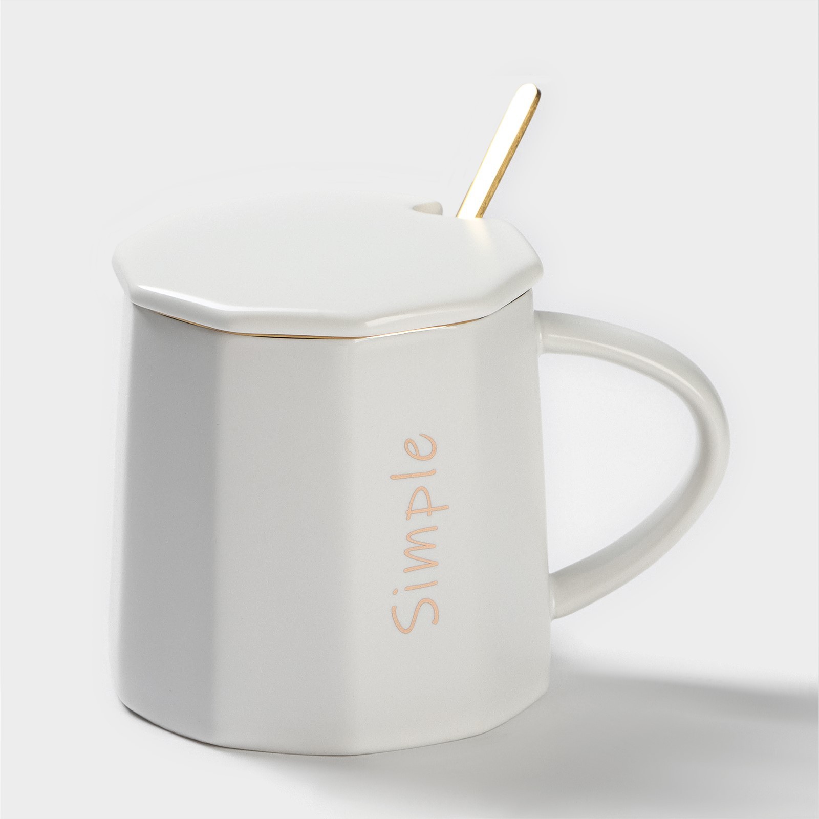 Кружка керамическая с ложкой Simple, 350 мл, цвет белый