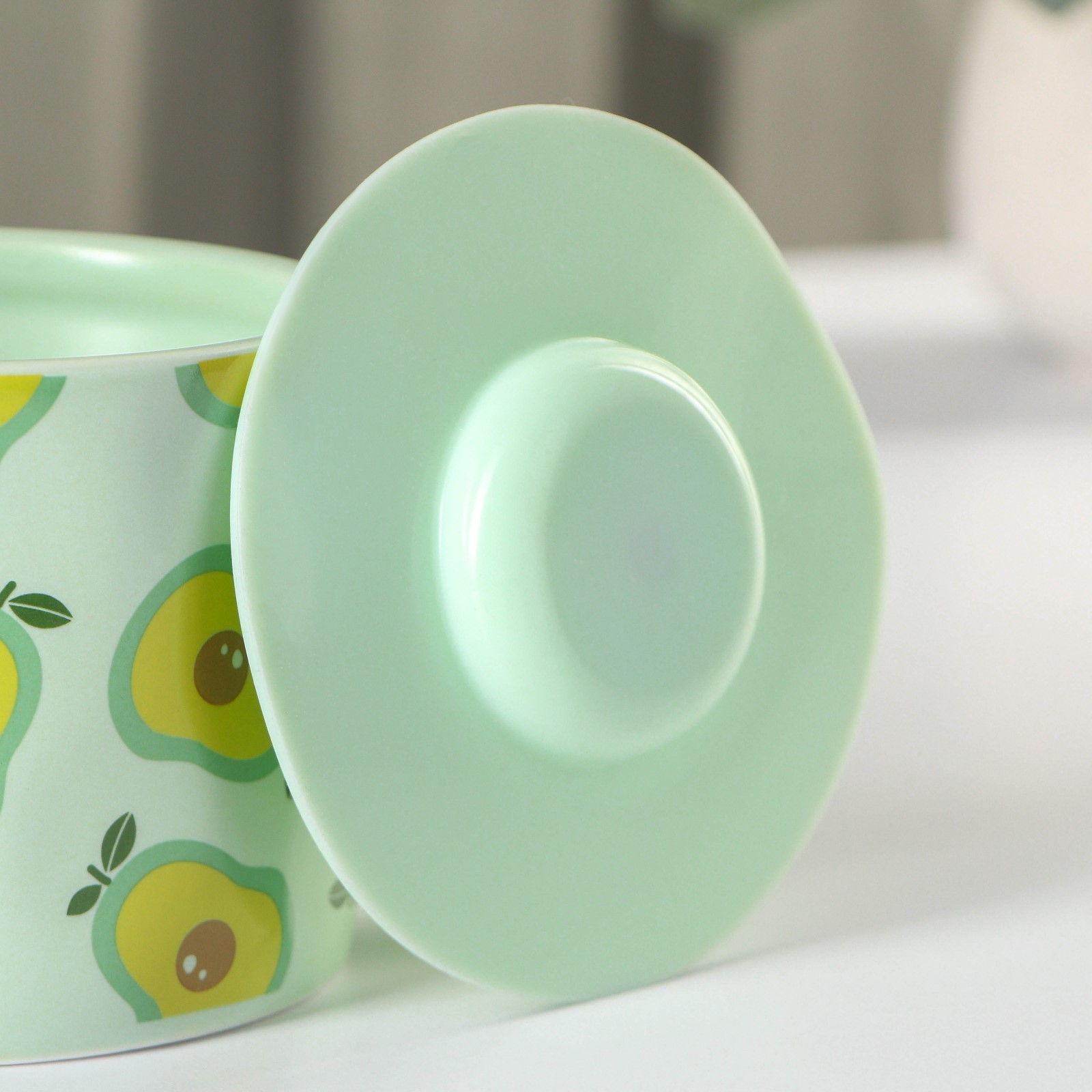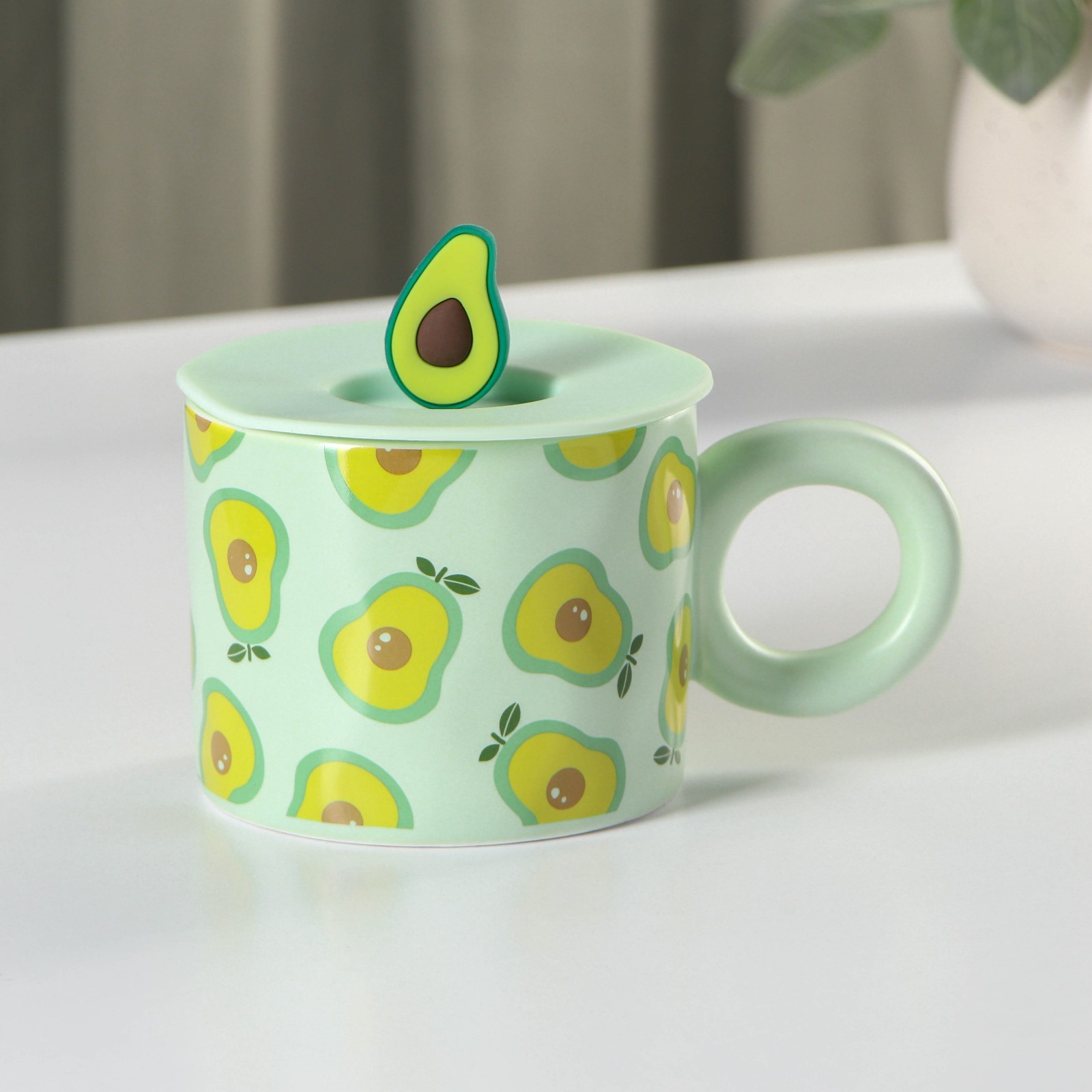 Кружка керамическая с силиконовой крышкой доляна «авокадо», 350 мл, цвет зелёный
