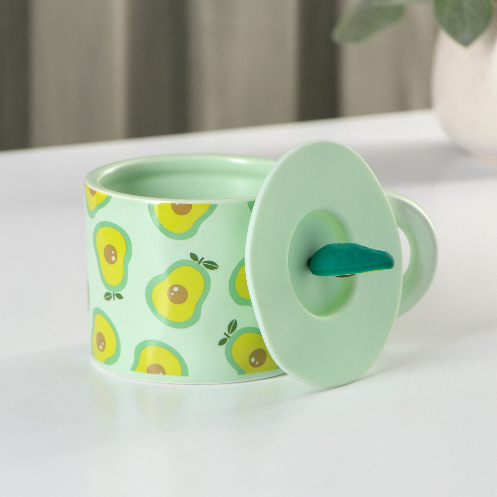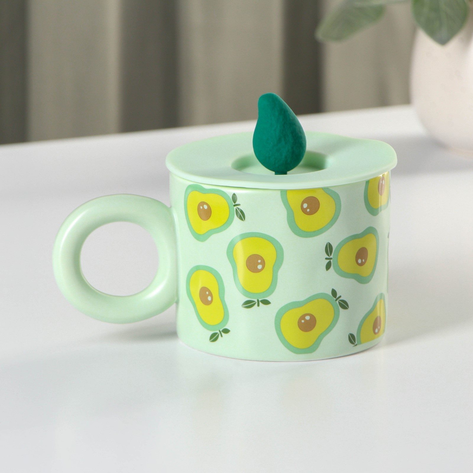 Кружка керамическая с силиконовой крышкой доляна «авокадо», 350 мл, цвет зелёный.