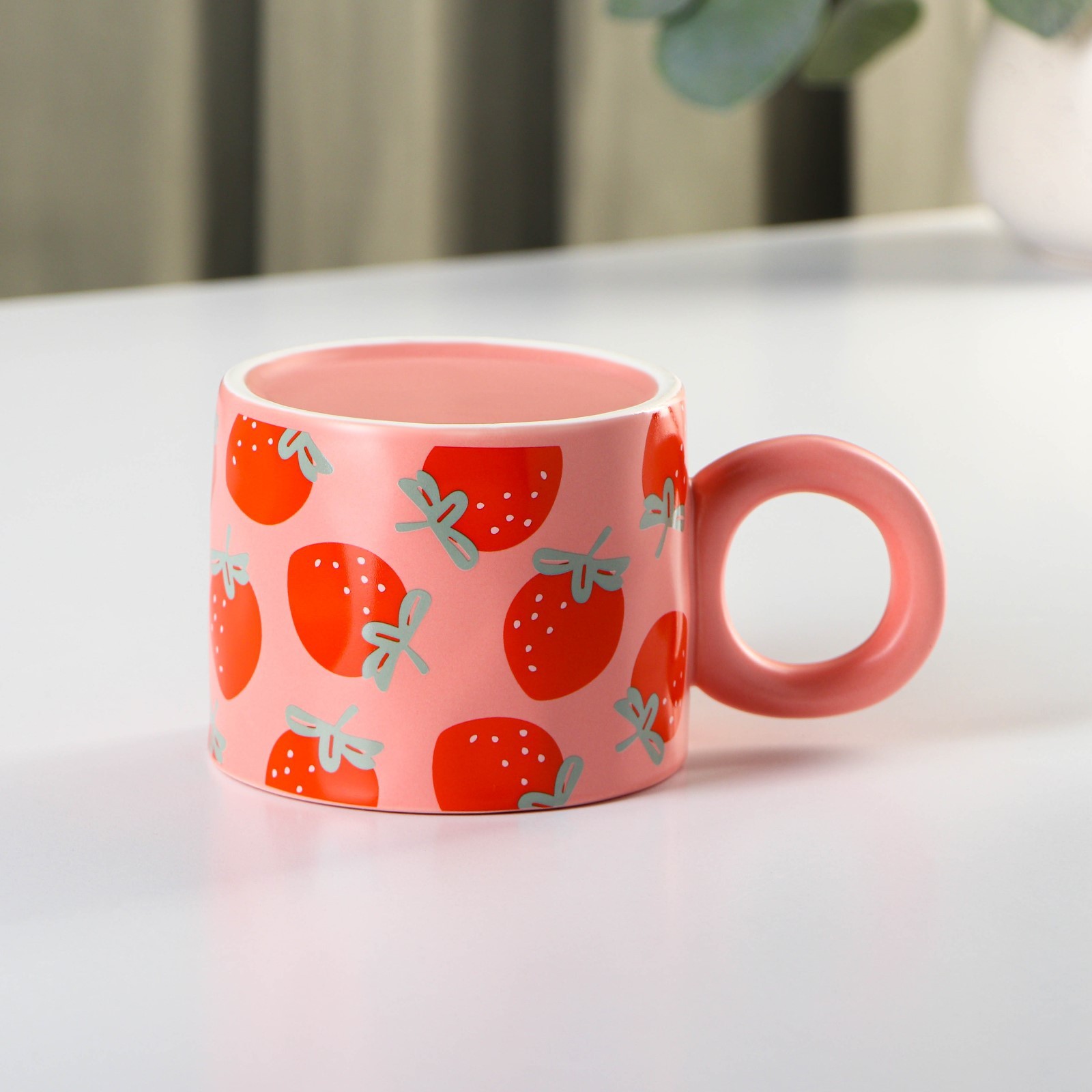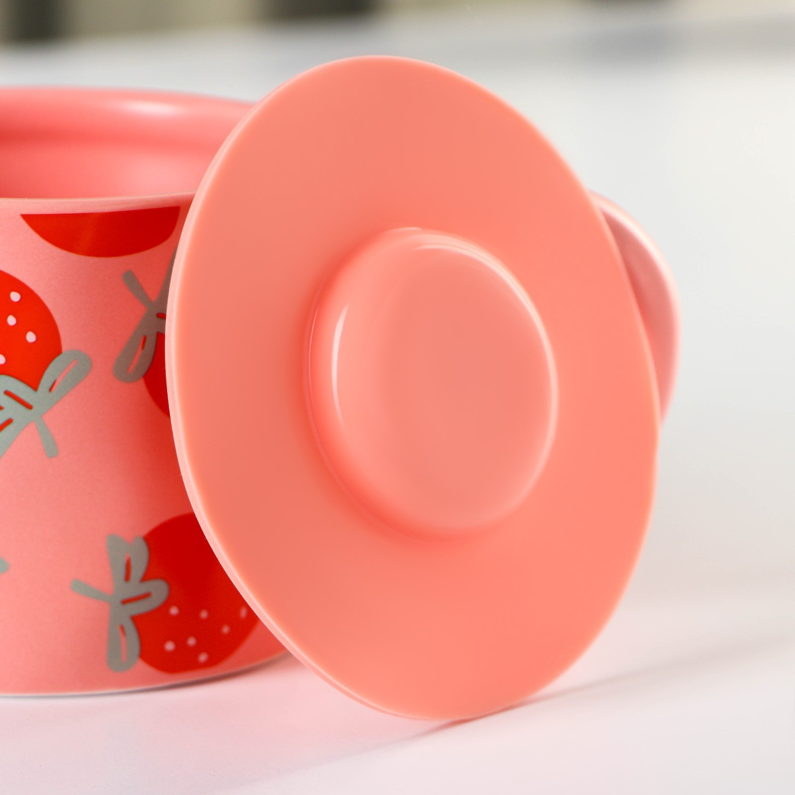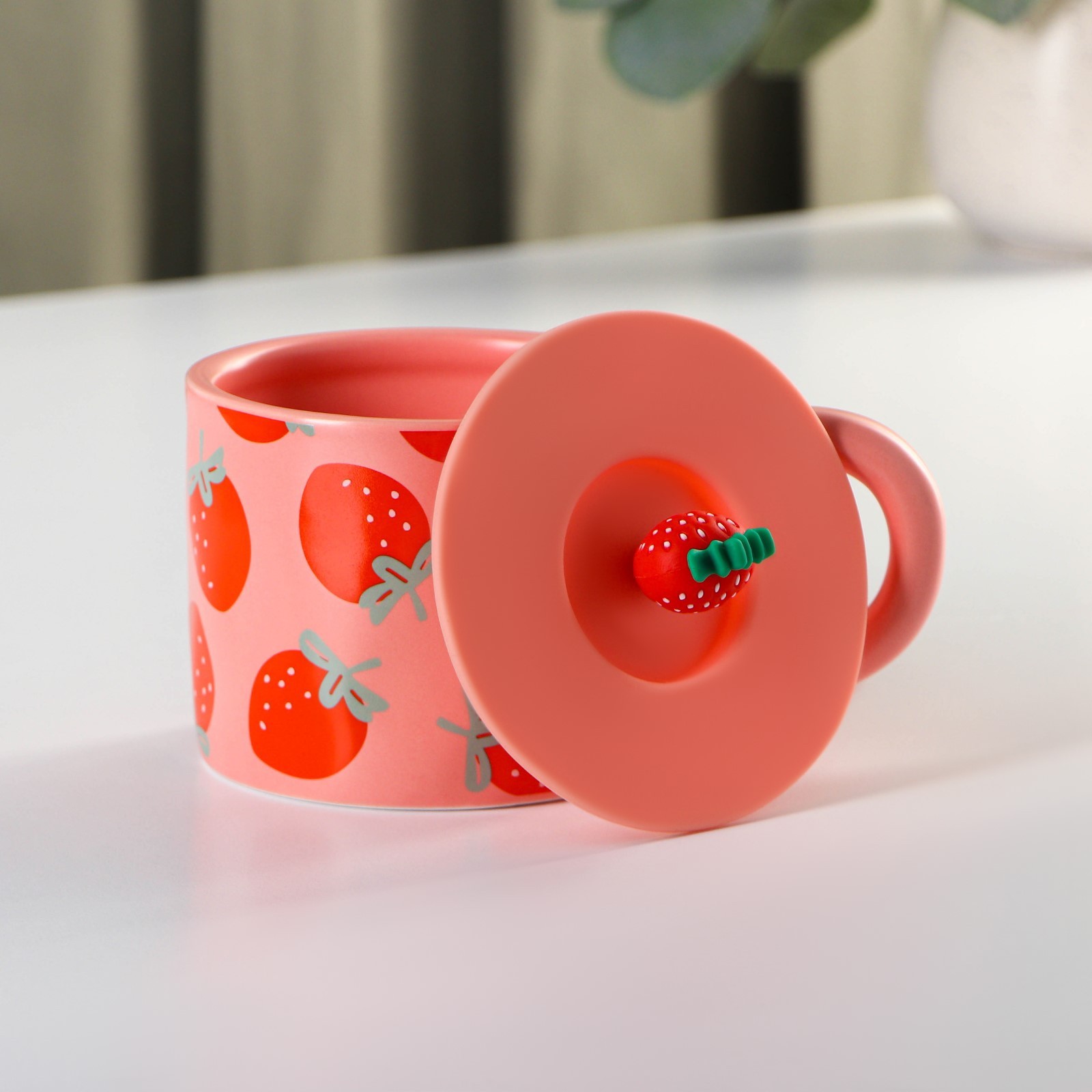 Кружка керамическая с силиконовой крышкой доляна «клубника», 350 мл, цвет красный