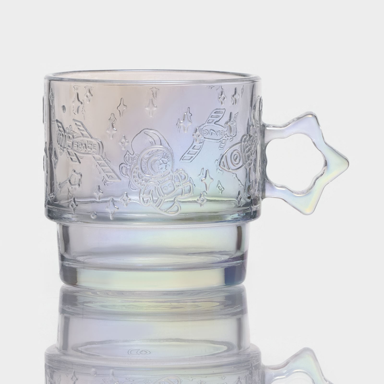 Набор кружек стеклянных «космос», 4 предмета: 300/300/250/300 мл, цвет перламутровый
