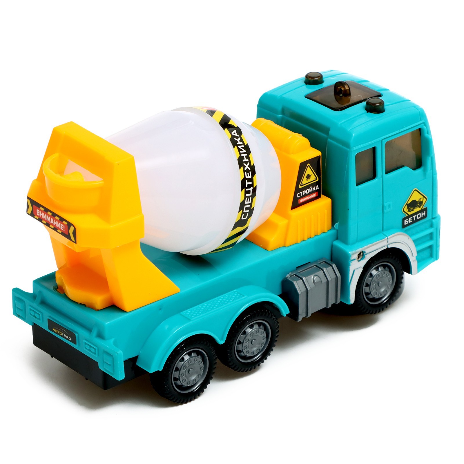 Машина «бетон», световые и звуковые эффекты, работает от батареек. Машина «Бетон» — настоящий автобетоносмеситель, который станет незаменимым помощником при строительстве крупных и важных объектов. Этот грузовой автомобиль оборудован вращающейся ёмкостью для перевозки бетонной смеси. Малыш сможет почувствовать себя водителем спецтехники, примерить на себя роль настоящего строителя. С «Бетоном» можно играть дома и брать его с собой на прогулку. Ребёнок сможет не только увлекательно провести время за игрой, но также придумать новые сюжеты, развить свою фантазию и воображение. А яркий дизайн и проработанные детали сделают игру динамичнее и интереснее. Особенности Размер: 14,5 5,5 8,7 см.Все элементы изготовлены из высококачественной нетоксичной пластмассы.Предназначен для детей старше 3 лет.Кнопка включения находится на дне машины.Работает от 2 батареек типоразмера AA (LR6).Воспроизводит световые и звуковые эффекты.Движение с поворотом.Играем с пользой Развитие моторики: управление машиной требует от детей точности движений, что способствует развитию мелкой моторики.Координация движений: управление машиной требует от детей собранности и концентрации.Воображение и творчество: игра с «Бетоном» вдохновляет детей создавать свои истории и сценарии, развивая воображение и творческие способности.Машина «Бетон» не только доставляет радость и удовольствие, но и способствует комплексному развитию детей, делая игровой процесс полезным и увлекательным.Вид транспорта:Бетоносмеситель (Бетономешалка)|Назначение транспорта:Строительный|Цвет:Голубой|Для кого:Для мальчика|Возраст:От 3 лет|Вид упаковки:Коробка картонная с PVC|Материал:Пластик|Дополнительные функции:Светящаяся|Дополнительные функции:Звуковые эффекты|Типоразмер батареек:AA (LR6)|Тип механизма:Без механизма|Среда перемещения транспорта:Наземный транспорт|Тематика назначения:Специальный транспорт|Страна:Китай  развернуть описание ▼
