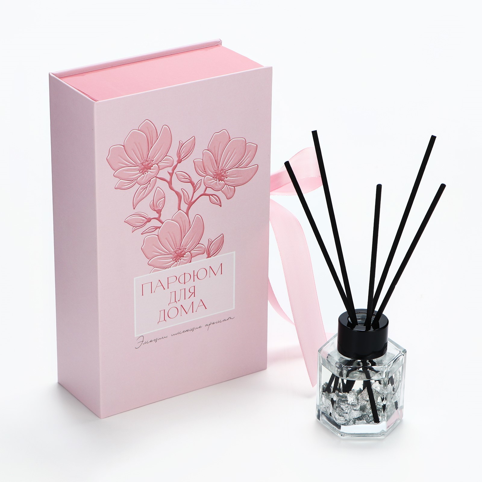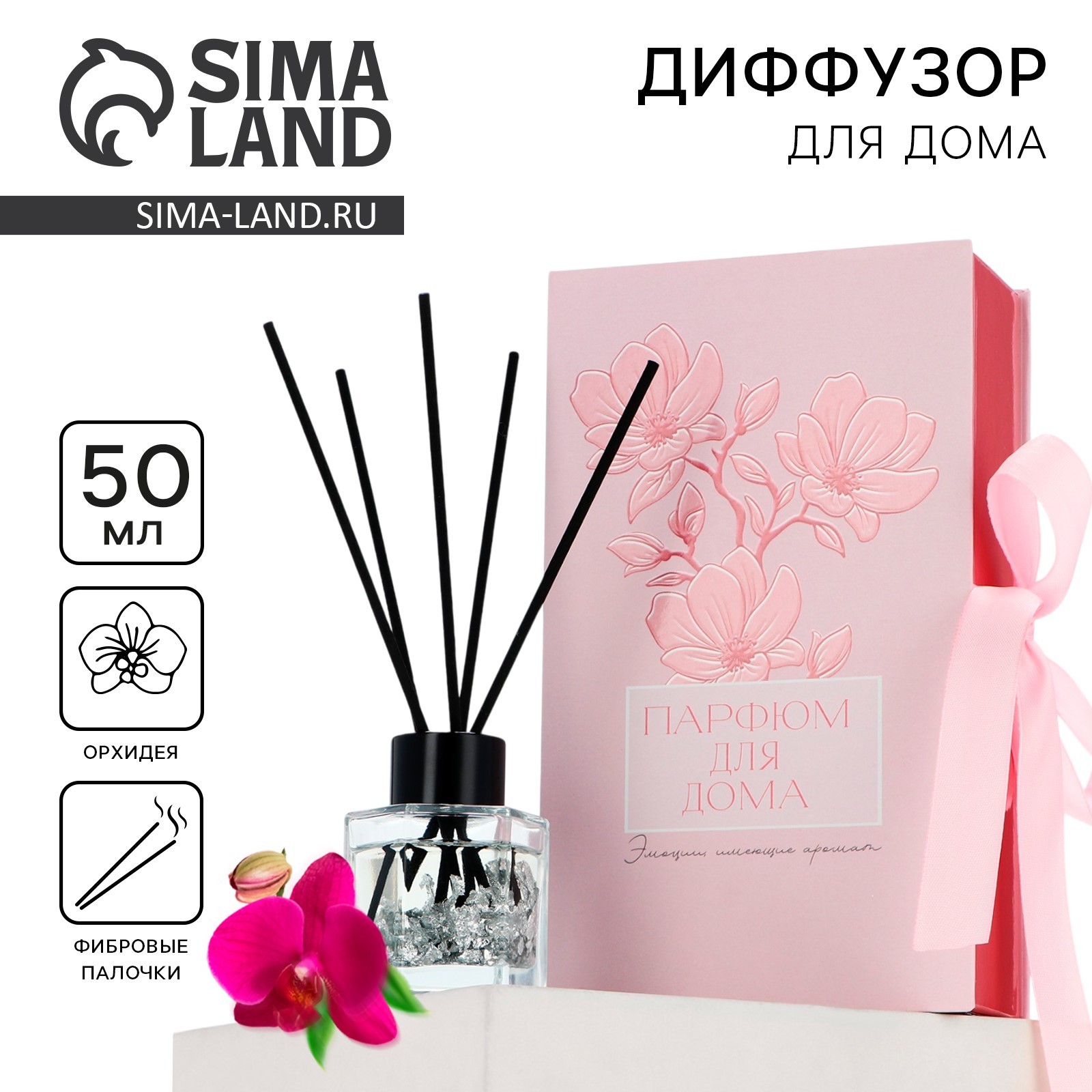 Диффузор ароматический для дома 50 мл. «для тебя», аромат орхидея.. Представьте: вы открываете стильную черную коробку с нежным розовым бантом. Внутри - элегантный диффузор для дома «Для тебя» от SEE YOU HOME, который наполнит ваш дом ароматом орхидеи. Диффузор выполнен в виде стеклянной бутылочки с черной крышечкой, украшенной палочками из дерева, внутри флакона находится серебро, которое придает изысканность. Он станет не только прекрасным украшением вашего интерьера, но и подарит вам приятные ощущения от нежного аромата. Аромат, который окутает вас атмосферой уюта и расслабления. Он прекрасно подходит для подарка себе и близким. ПрименениеИзвлеките диффузор из упаковки, откройте крышку и защитный колпачок, опустите палочки в ароматизированную жидкость и наслаждайтесь. Ароматизированная жидкость пропитывает палочки, и с их помощью аромат распространяется по всему помещению. Объём, мл: 50 Вид ароматизатора: В бутылочке Аромат: Орхидея  развернуть описание ▼