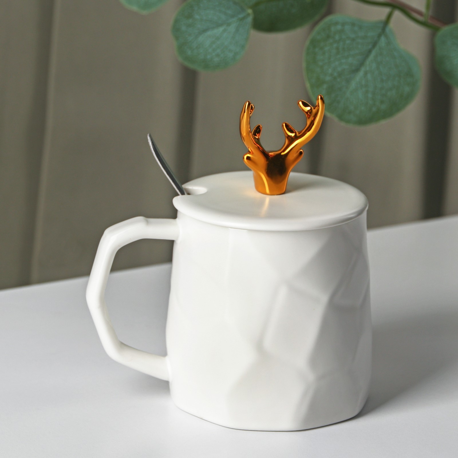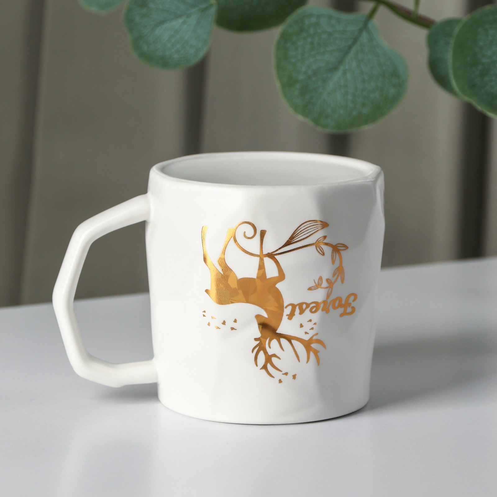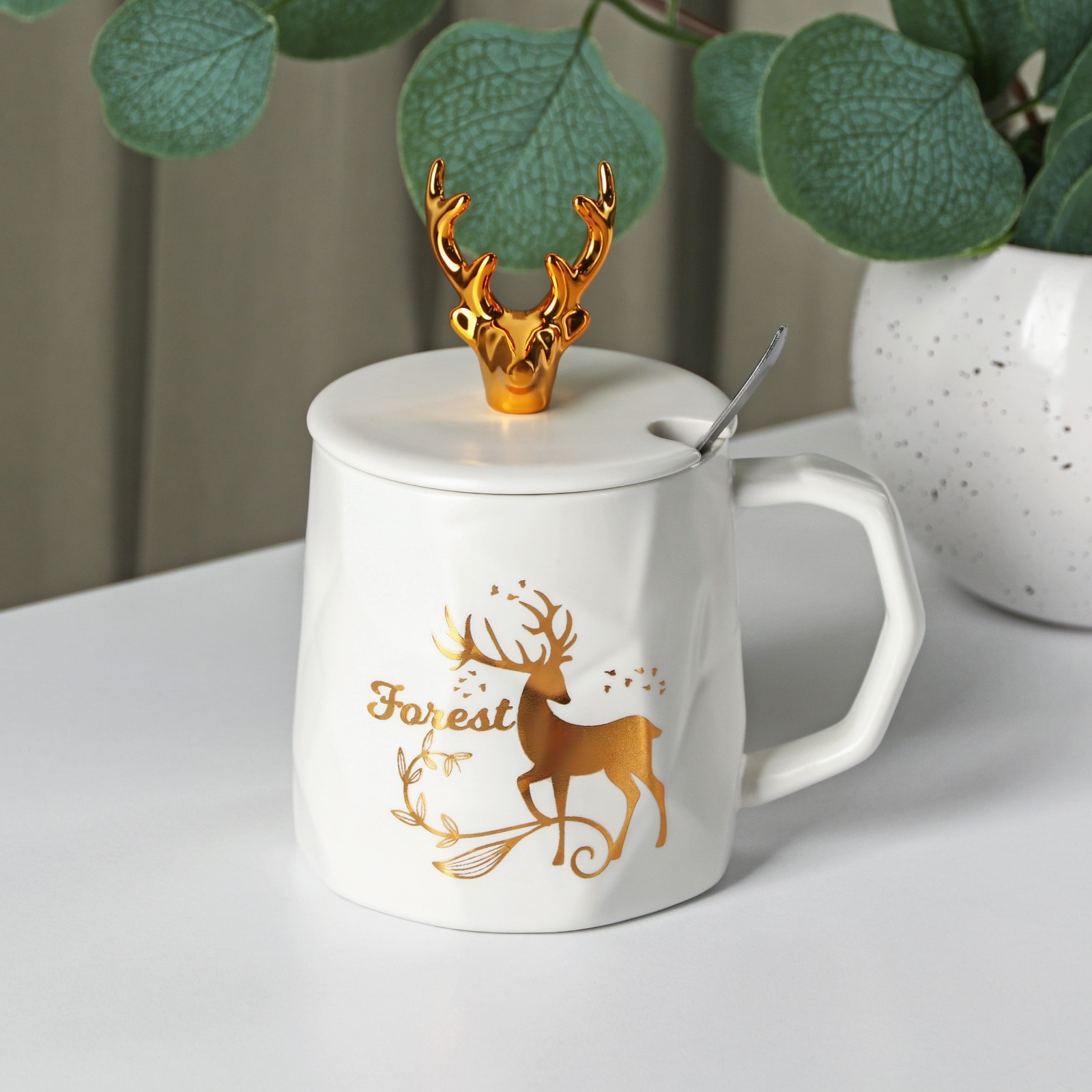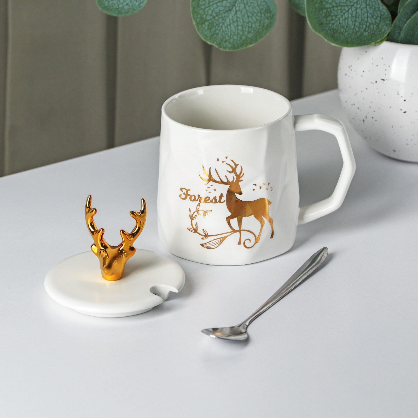 Кружка керамическая с ложкой доляна «волшебный лес», 350 мл, цвет белый