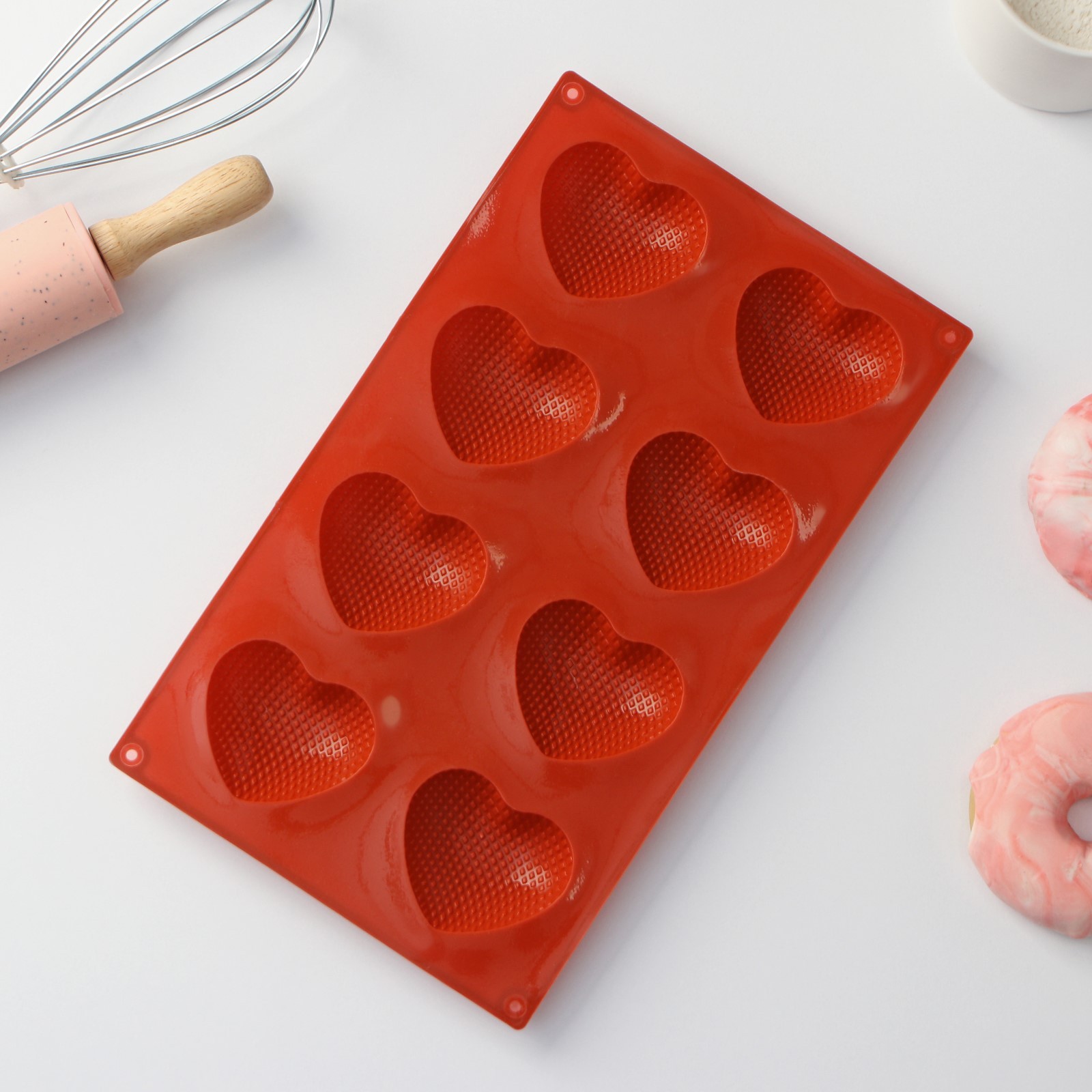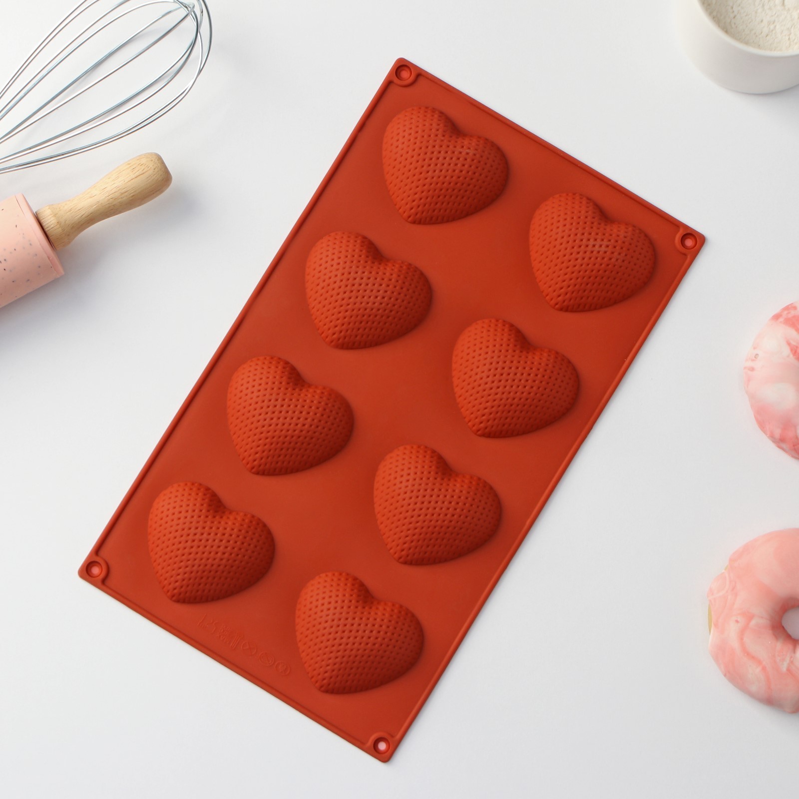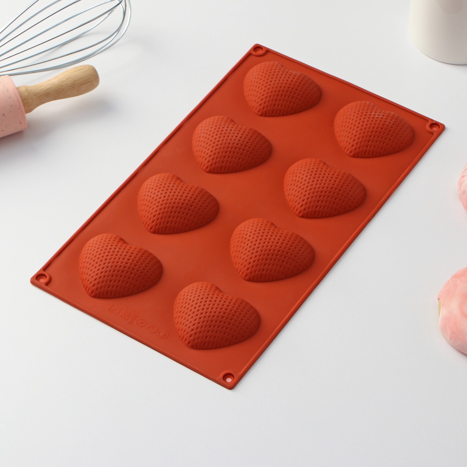 Форма силиконовая для выпечки доляна «сердце», 29x17x1,5 см (6x5x1,5 см), 8 ячеек, цвет коричневый