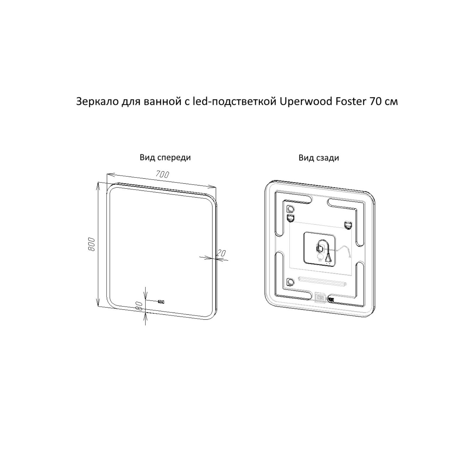 Зеркало для ванной Uperwood Foster 70х80 см, с Led-подсветкой