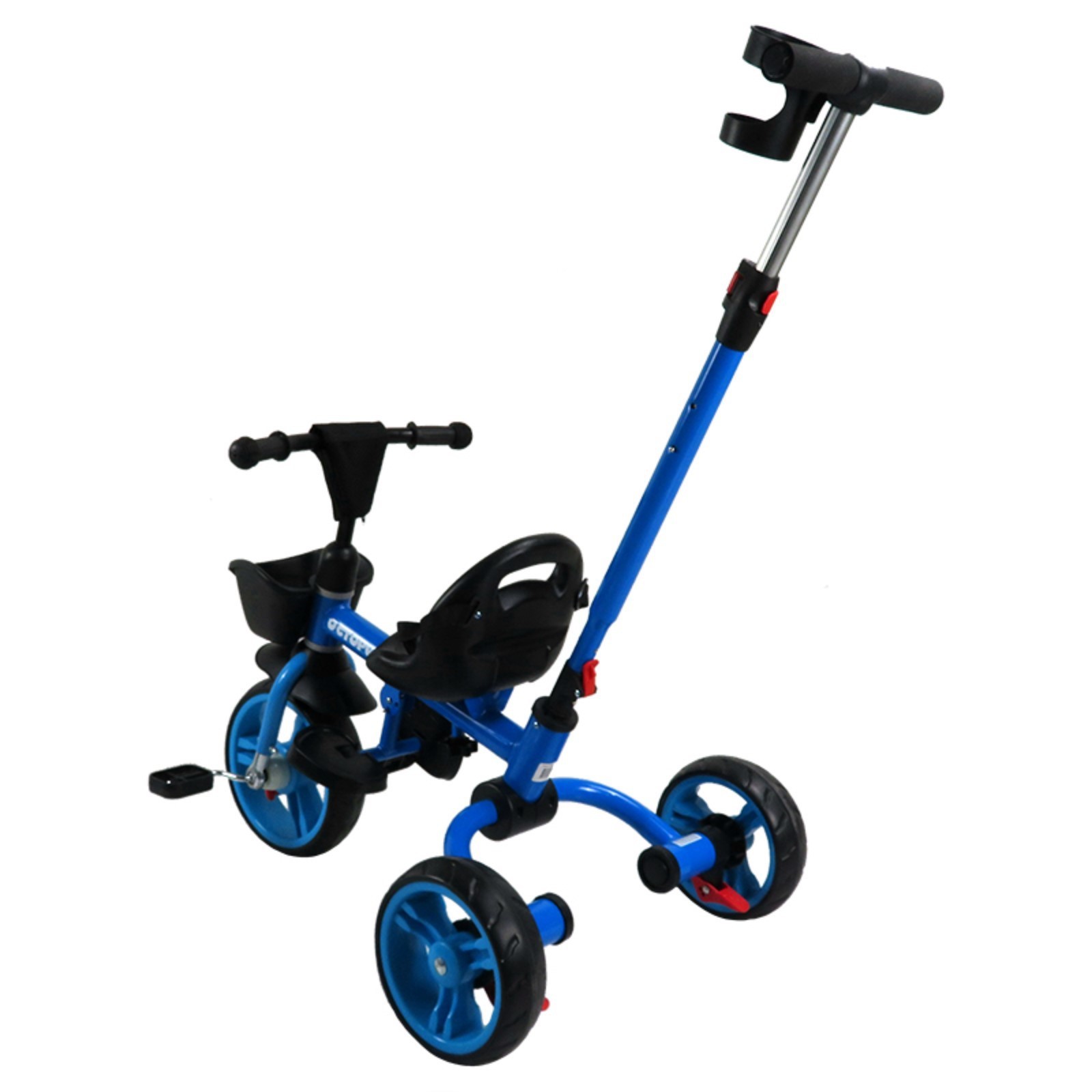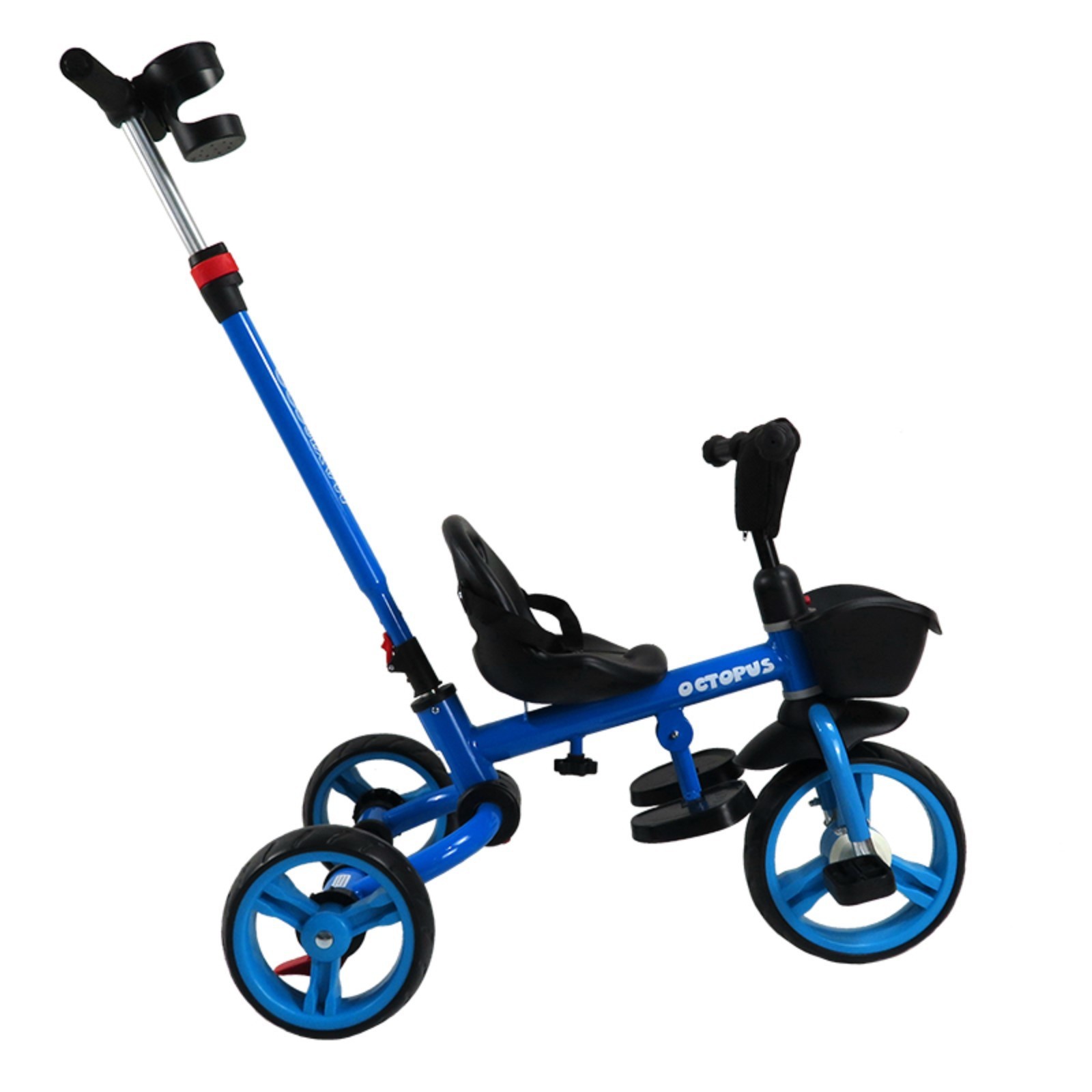 Велосипед maxiscoo octopus, цвет синий. Трёхколёсный велосипед создан для самых маленьких детей. Ребёнок научится крутить педали и ему будет легче пересесть на двухколёсный велосипед. Модель оснащена функцией управления от родительской ручки и корзинкой для мелочей. ОсобенностиМаксимальная нагрузка: 35 кг. Для детей от 1 года. Расстояние от педали до середины сиденья: 36 см. Расстояние от пола до сиденья: 36 см. Расстояние от пола до руля: 59 см. Цвет: Синий Для кого: Унисекс Максимально допустимый вес, кг: 35 Модельный год: 2023 Материал рамы: Сталь Диаметр колёс, дюймы: 10 Складная рама: Нет Материал колёс: EVA Надувные колеса: Нет Ручка для родителей: Да Регулируемая спинка: Нет Тент: Нет Страховочный обод: Да Доп. подставка для ног: Да Свободный ход педалей: Да Функция свободного хода руля: Нет Рекомендуемый возраст, лет: 1 Рекомендуемый рост, см: 80 - 100 Стояночный тормоз: Нет Фара: Нет Разворот сиденья: Нет Складная подножка: Нет Светозвуковая панель: Нет  развернуть описание ▼