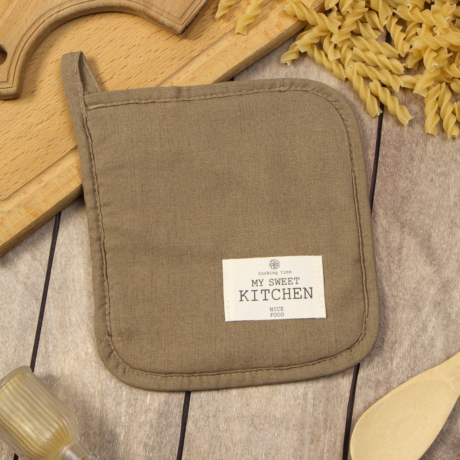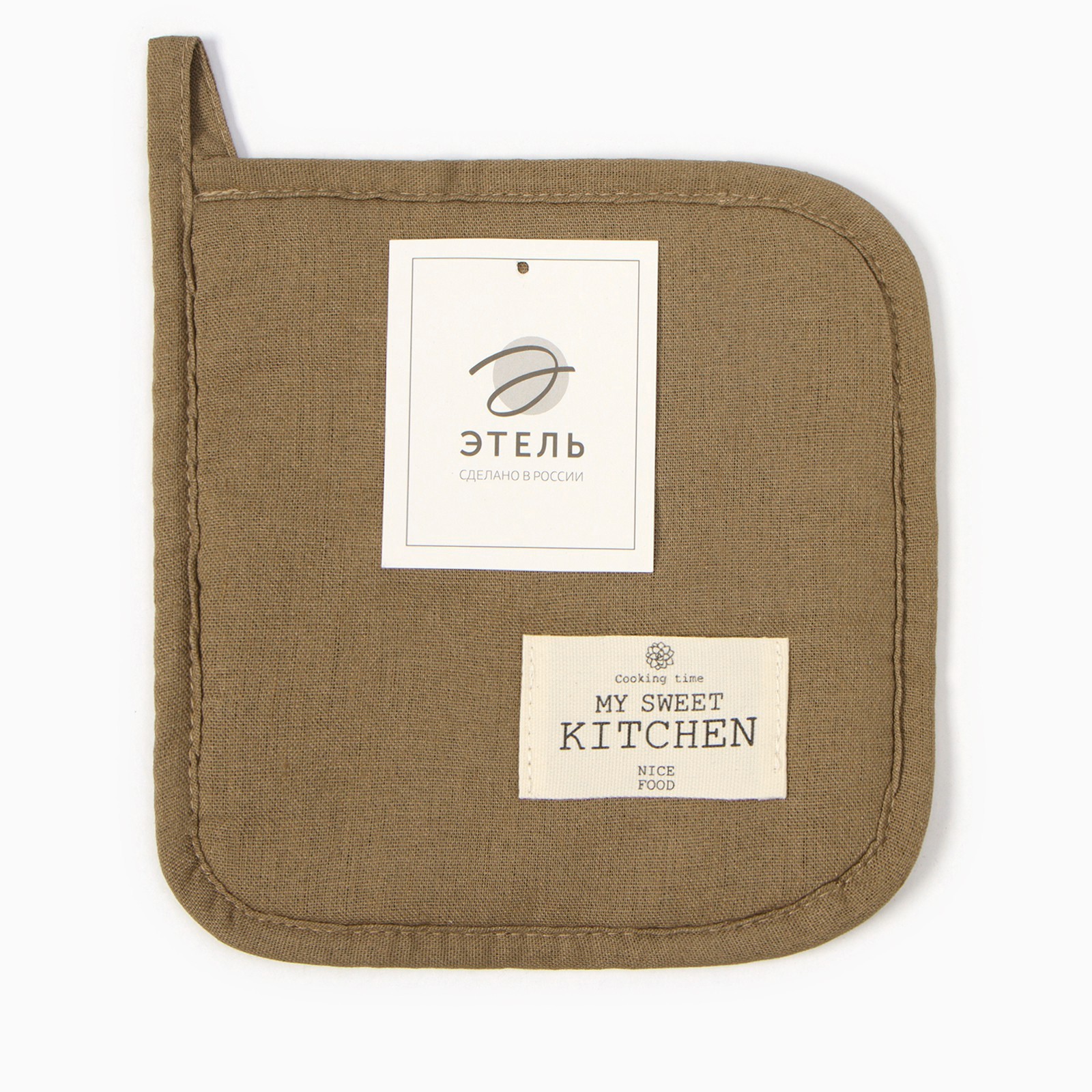 Прихватка этель Eco, цв. оливковый, 19х19 см, 70% хл, 30% лён, ватин 250 г/м2