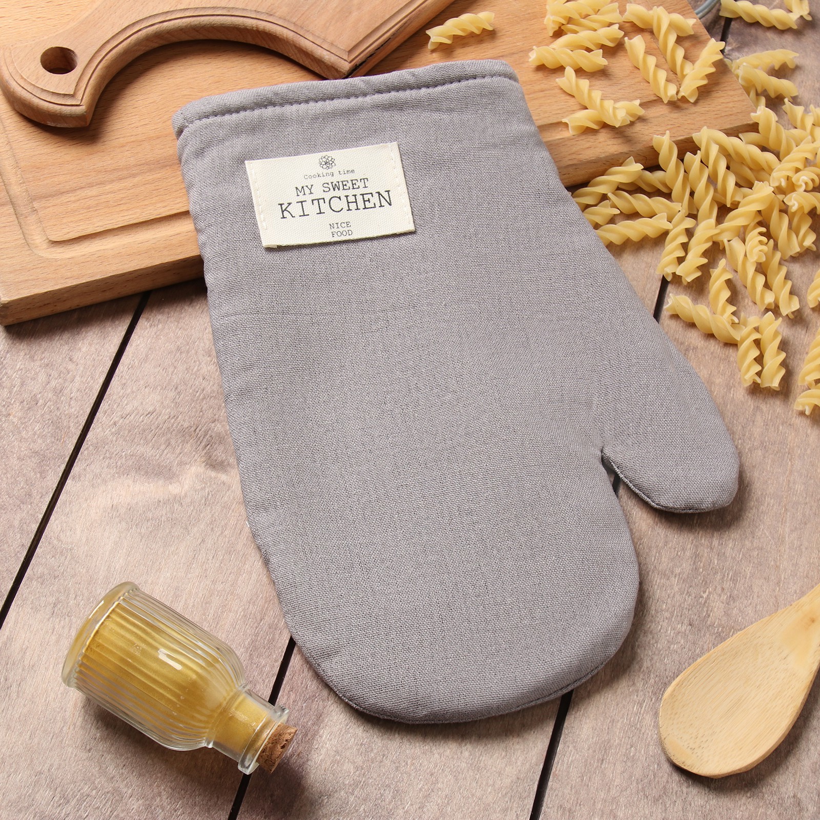 Варежка-прихватка этель Eco, цв. серый, 20х28 см, 70% хл, 30% лён, ватин 250 г/м2