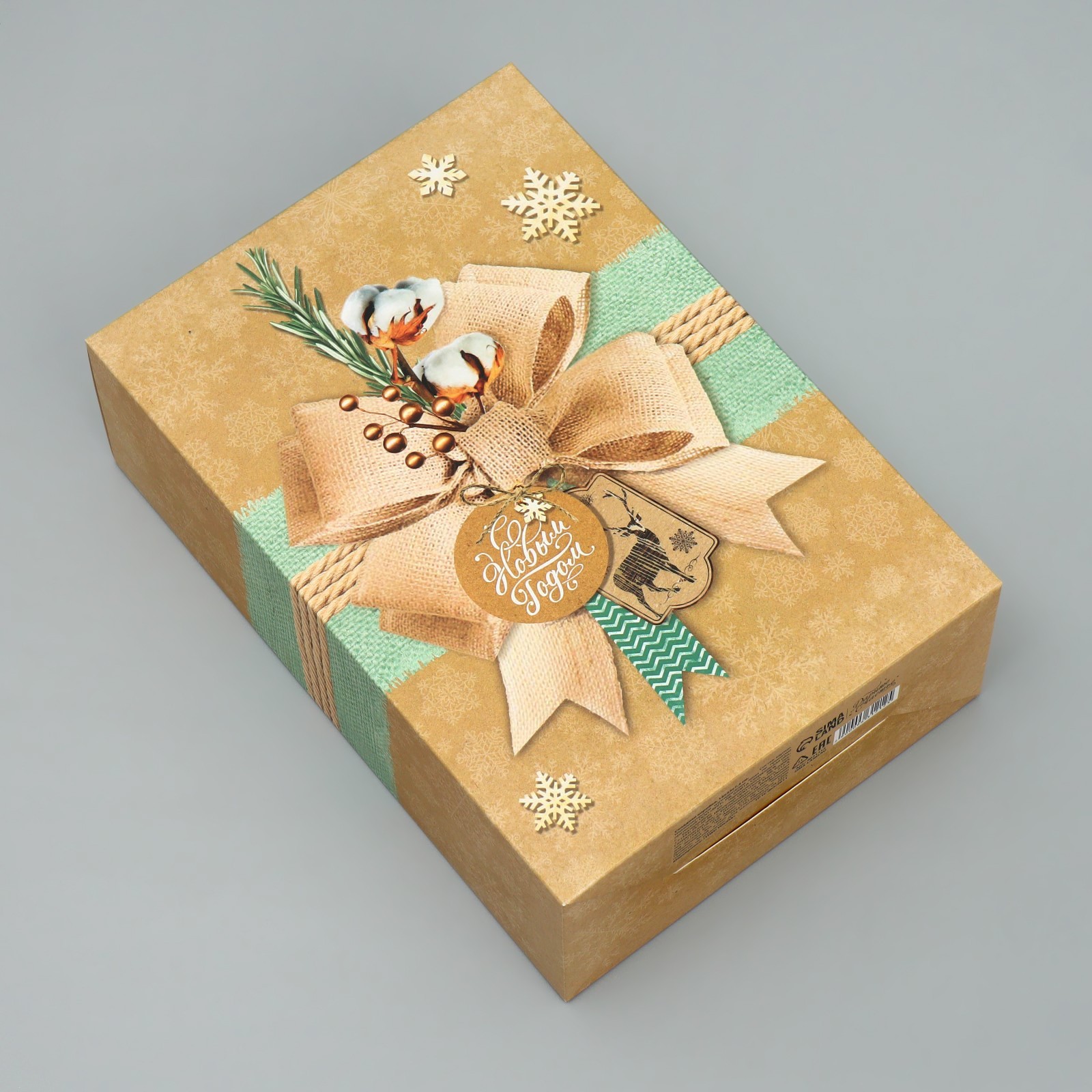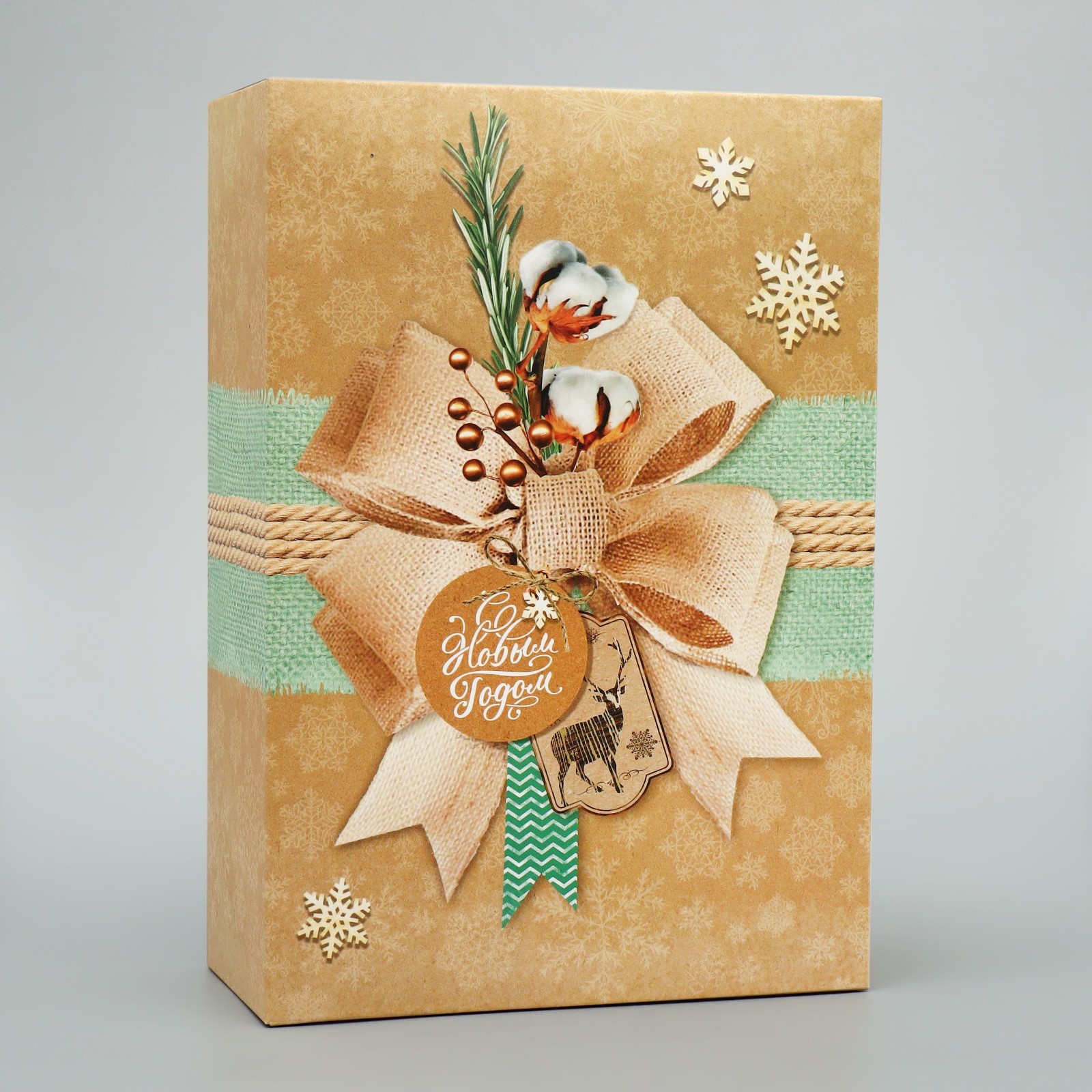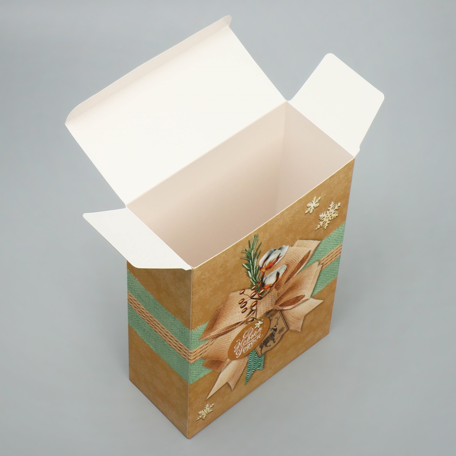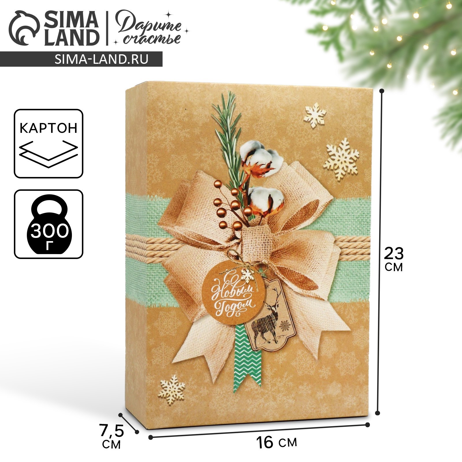Коробка подарочная новогодняя складная «с новым годом», 16 х 23 х 7.5 см. Цвет:Бежевый|Цвет:Коричневый|Форма:Прямоугольная|Плотность, г/м :250|Длина, см:16|Ширина, см:7.5|Высота, см:23|Допустимый вес вложения, г:300|Тематика:Новогодняя|Символ года:Нет|Тематика праздника:Новый год|Материал:Картон|Вид ручки:Без ручки|Вид:Складные коробки|Размер:Средний (18-24 см)|Окошко:Нет|Крышка-дно:Нет|Страна:Китай  развернуть описание ▼