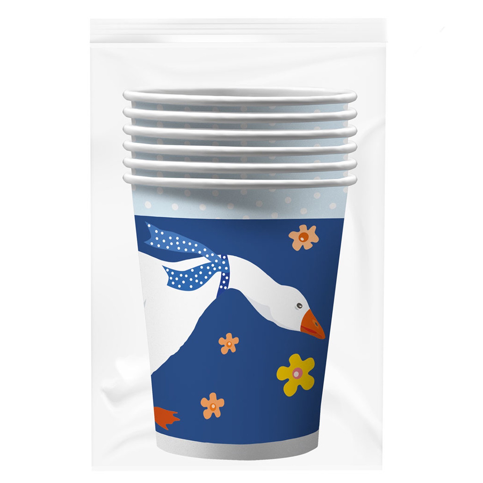 Набор бумажных стаканов «гуси-2», в плёнке, 6 шт., 250 мл. Посуда изготовлена из высококачественной бумаги без добавления поликарбоната, меламина и поливинилхлорида. Такие изделия безопасны, они не «раскисают» при взаимодействиями с продуктами питания. Преимущества бумажной посудыЭкологически безвредна: полностью разлагается в естественной среде. Гигиеничность и безопасность: при изготовлении используется первичный и вторичный картон с ламинацией, крафт-бумага и пищевые красители. Выдерживает высокую и низкую температуру. Сохраняет вкус еды и напитков, не выделяя вредных веществ, при нагреве. Тарелки и стаканы из бумаги приятнее на ощупь, чем аналогичная посуда из пластика. Такую посуду не надо мыть и невозможно разбить. Где применяется бумажная посуда:детские заведения и мероприятия, организация питание на свежем воздухе, точки продажи фастфуда, летние кафе и бистро, вендинг и офисы, доставка обедов. Цвет: Белый Цвет: Синий Диаметр, см: 7.5 Количество слоёв: 1 В наборе, шт.: 6 Объём, мл: 250 Материал: Бумага Вид: Стакан Температурное ограничение: Нет  развернуть описание ▼