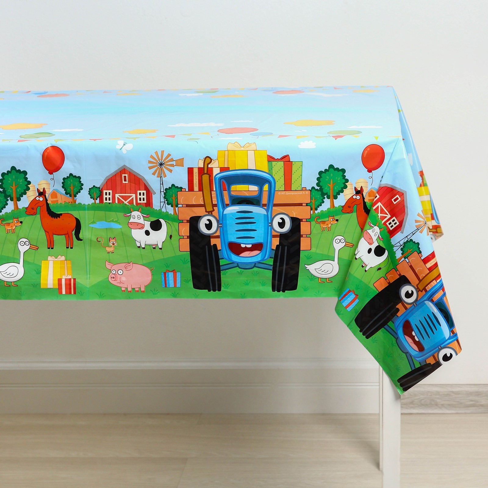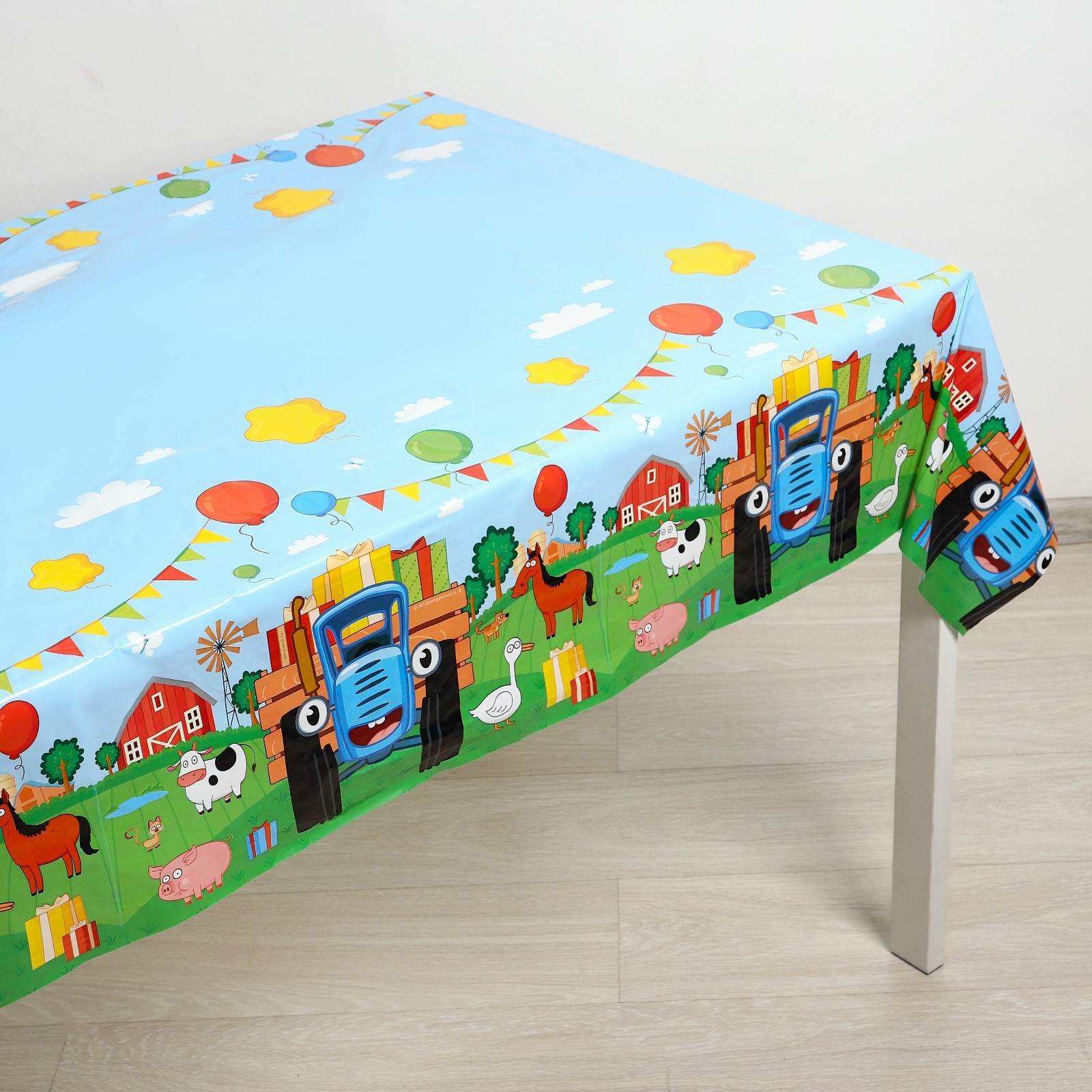 Скатерть 120х180 см, 35 мкр, синий трактор
