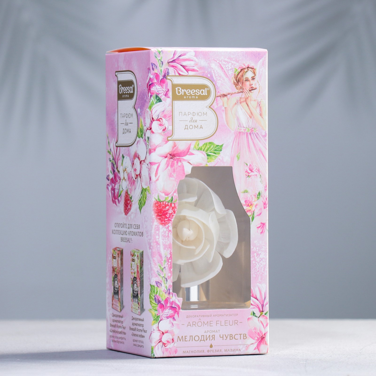 Ароматический диффузор "breesal. arome fleur" , 60 мл, мелодия чувств. Диффузор Arome Fleur «Мелодия чувств» - это изысканный аксессуар с парфюмерной композицией из Швейцарии, который можно купить, чтобы создать неповторимую атмосферу в вашем доме! Элегантный стеклянный флакон, утонченные ноты фрезии, малины и магнолии, изящный цветок из тончайшей рисовой бумаги, который медленно заполняет комнату ароматом, будет радовать вас до 45 дней. parts count: 0 Объём, мл: 60 Вид ароматизатора: Диффузор Аромат: Фрезия Аромат: Магнолия Аромат: Малина Температурное ограничение: Нет  развернуть описание ▼