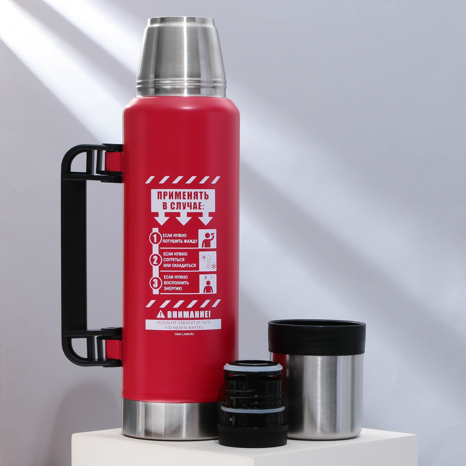 Термос «применять в случае», 1.2 л, красный, сохраняет тепло 16-18 ч
