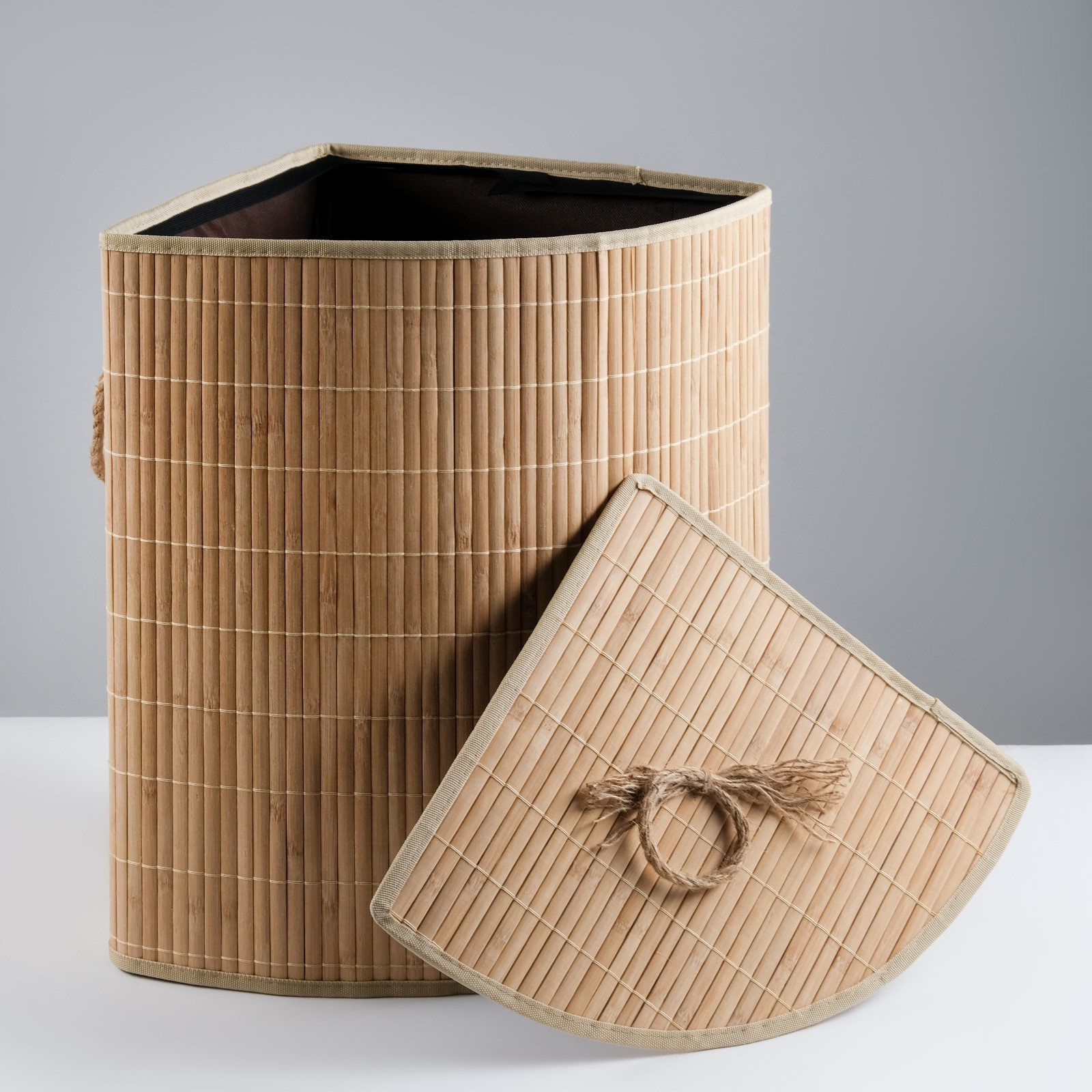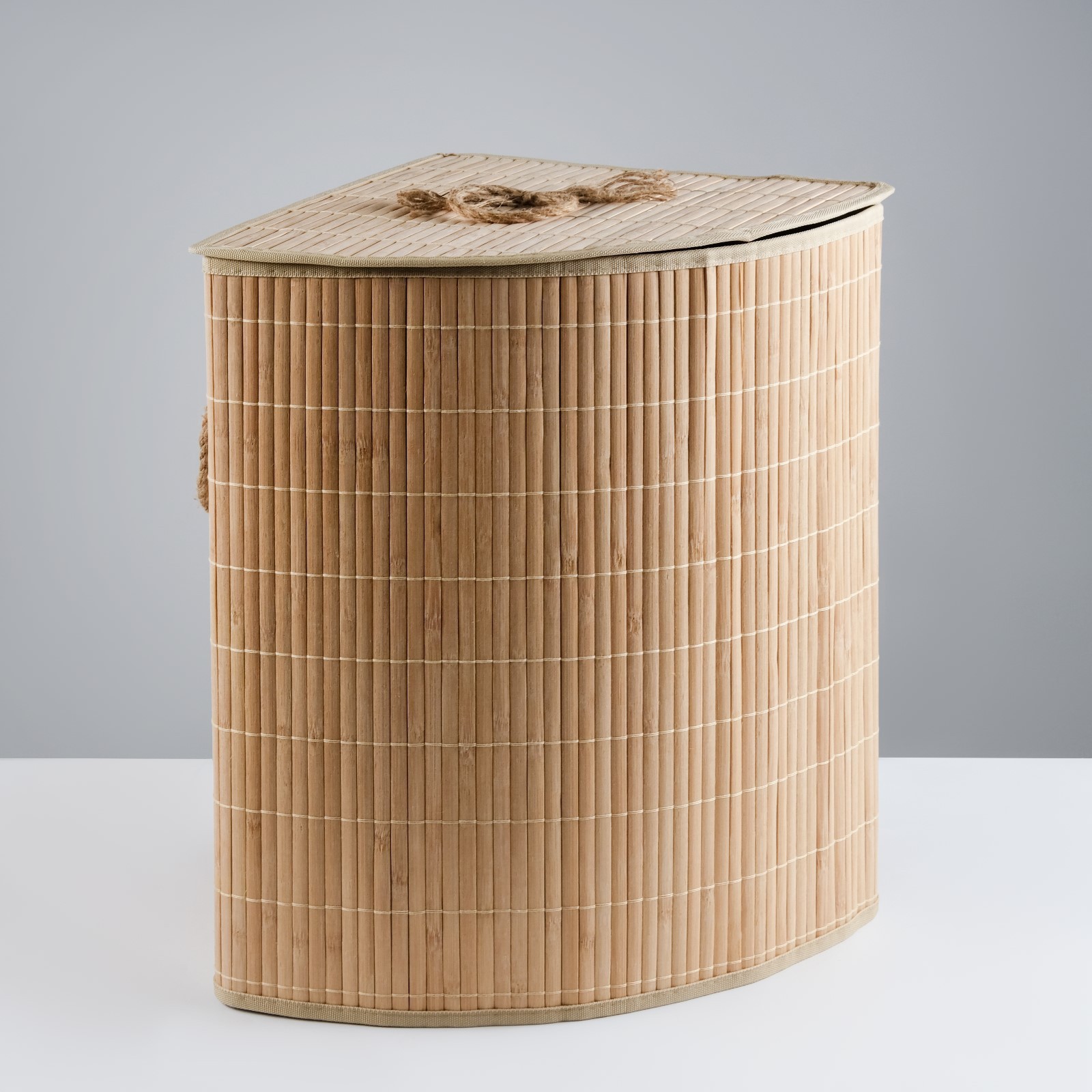 Корзина для белья, с крышкой, 34х34х52 см, бамбук,джут