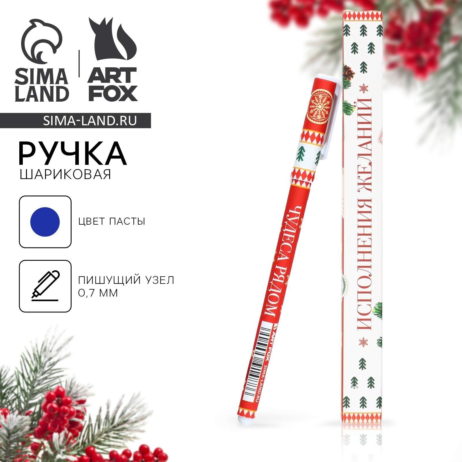 Ручка шариковая, синяя паста, 0.7 мм, с колпачком, пластик, софт-тач «время чудес!». Ручка торговой марки ArtFox отлично подойдет в качестве подарка. Яркий дизайн несомненно привлечет внимание и будет выделяться среди других предметов, а удобная форма корпуса позволит использовать ее с комфортом. Цвет стержня: синий;Стержень заменяемый: да;Материал: пластик;Форма корпуса: круглая.Диаметр пишущего узла, мм:0.7|Набор:Нет|Цвет стержня:Синий|Европодвес:Нет|Вид упаковки:Пакет|Символ года:Нет|Тематика праздника:Новый год|Адресат:Без адресата|Материал:Пластик|Материал упаковки:Полиэтилен|Составляющие набора:Ручка|Штрихкод на единице товара:Да|Наличие грипа:Нет|Страна:Китай  развернуть описание ▼