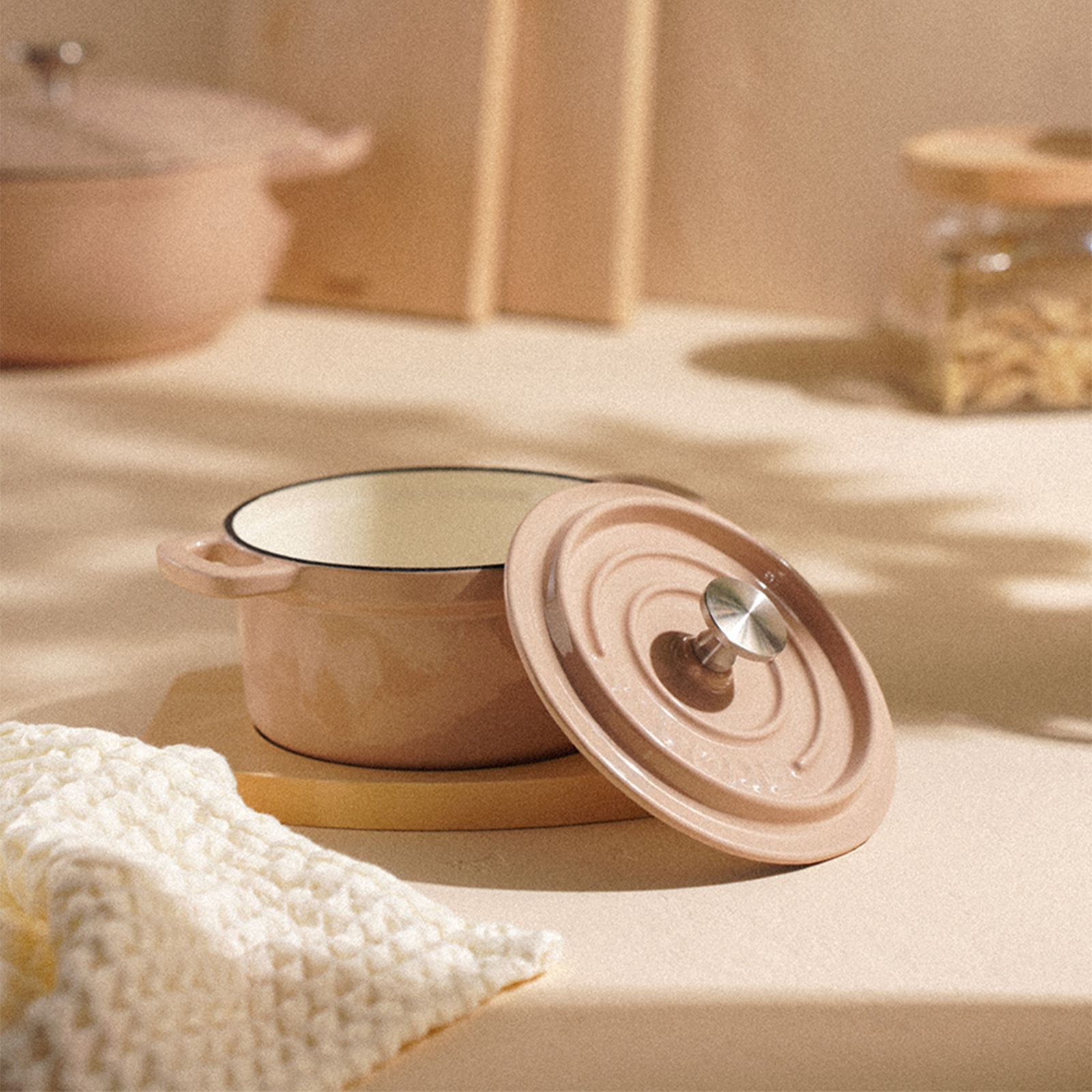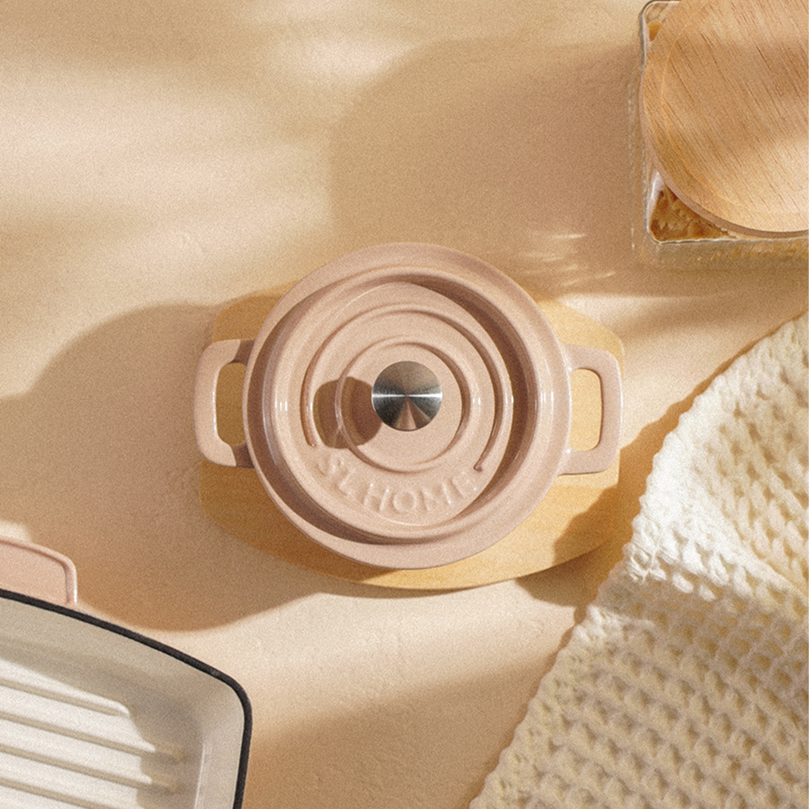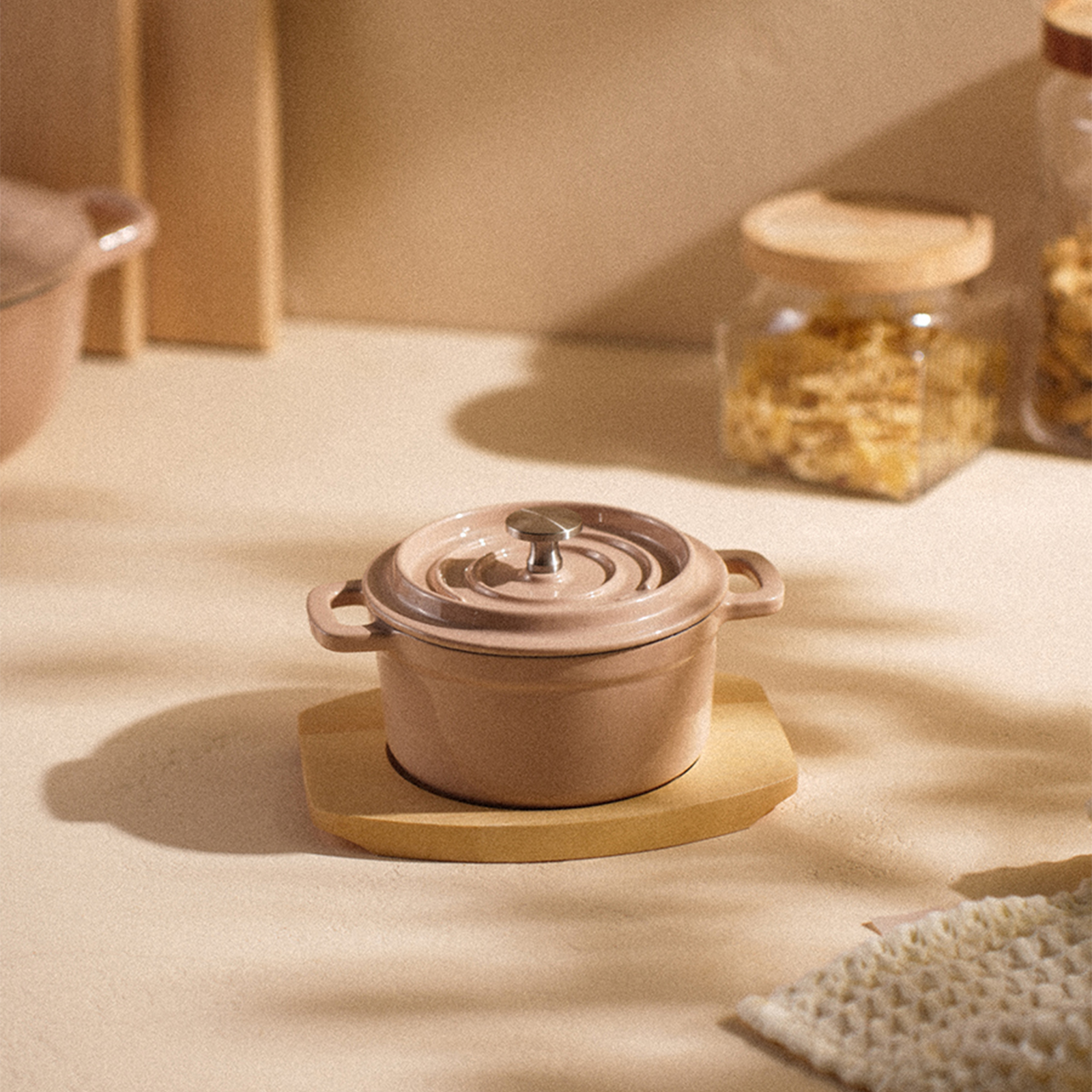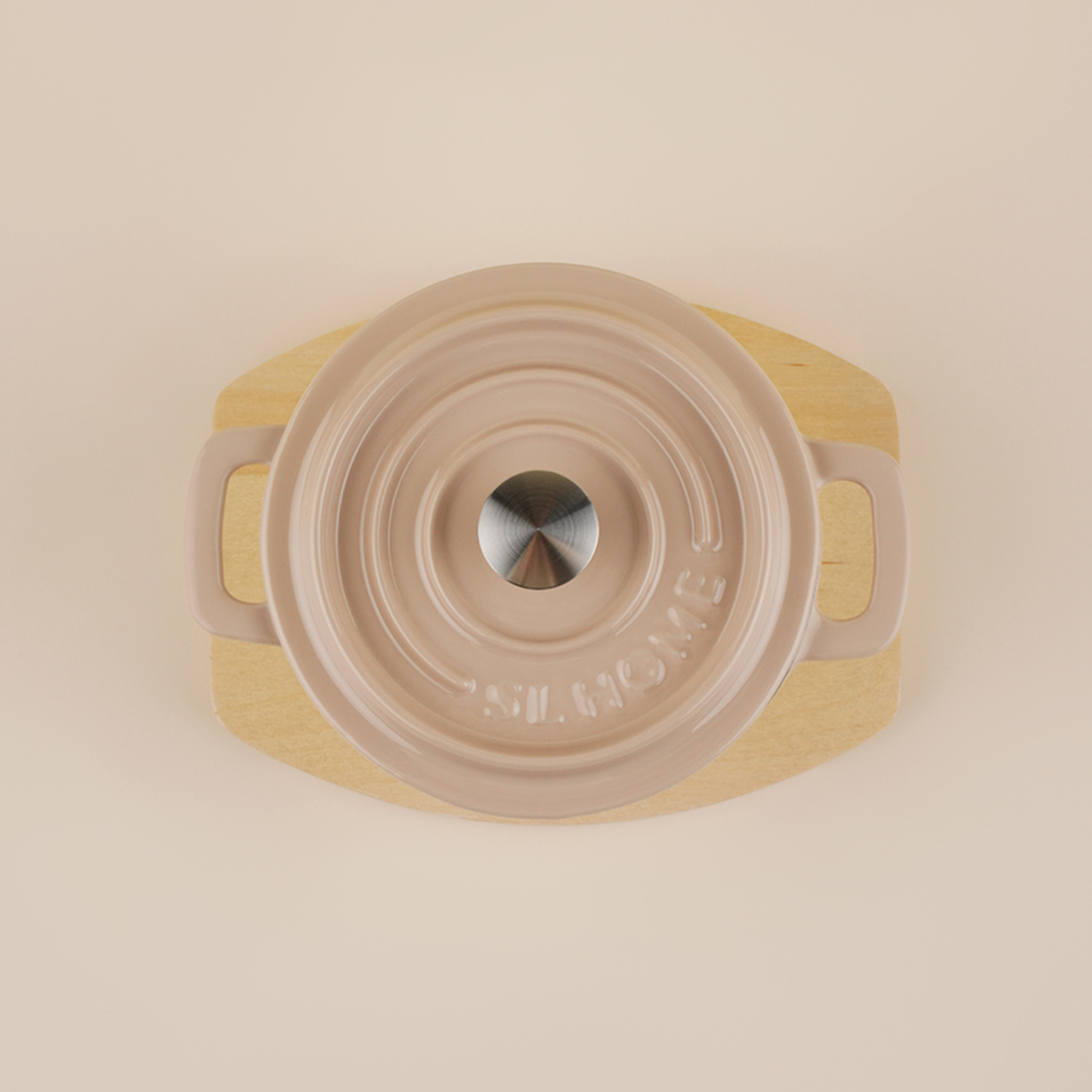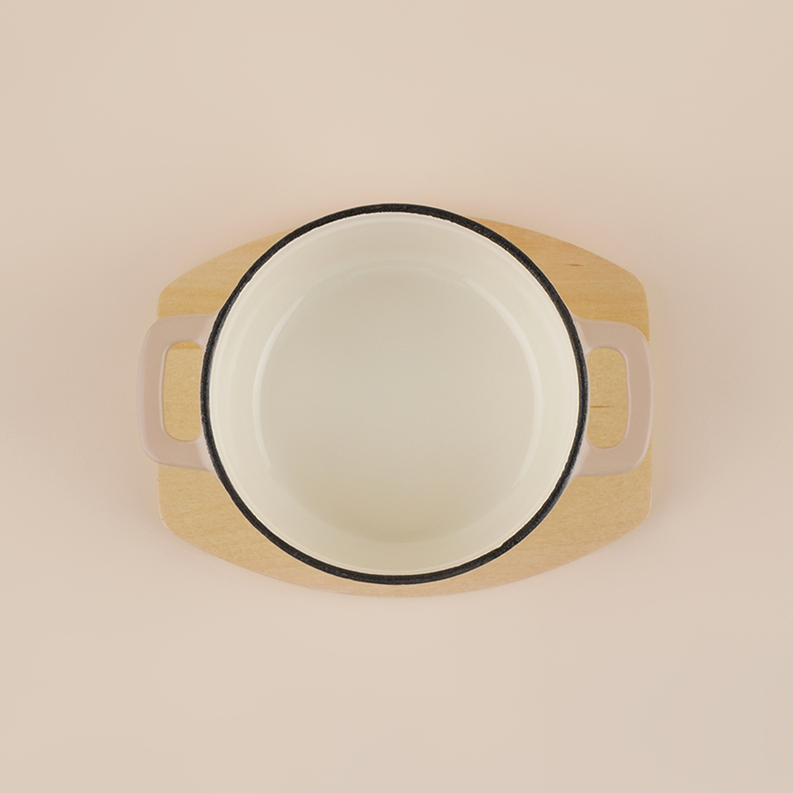 Кастрюля для подачи D=14, H=7 см, на деревянной подставке, эмаль. покрытие