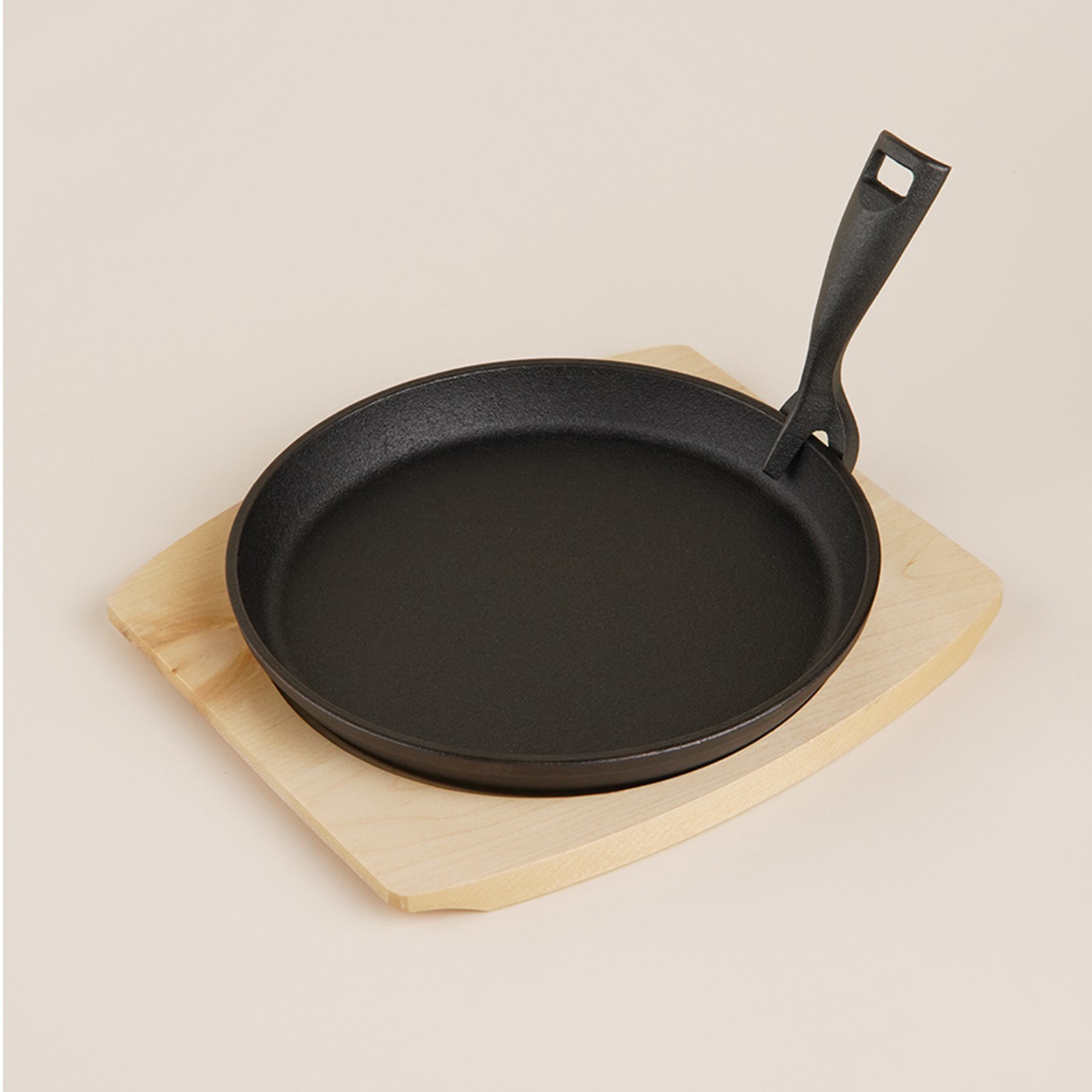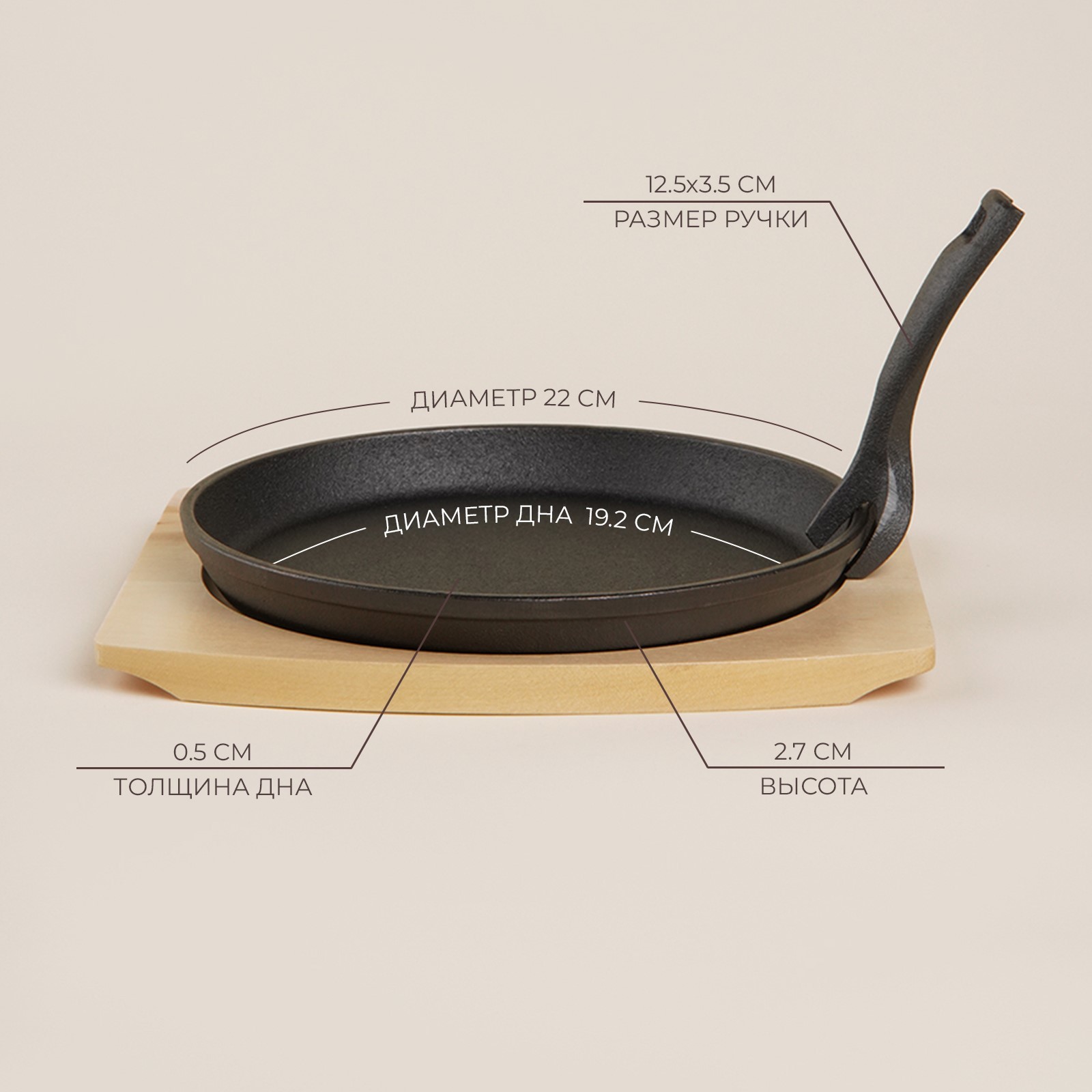 Сковорода круглая D=22,5, H=2,5 см, на деревянной подставке