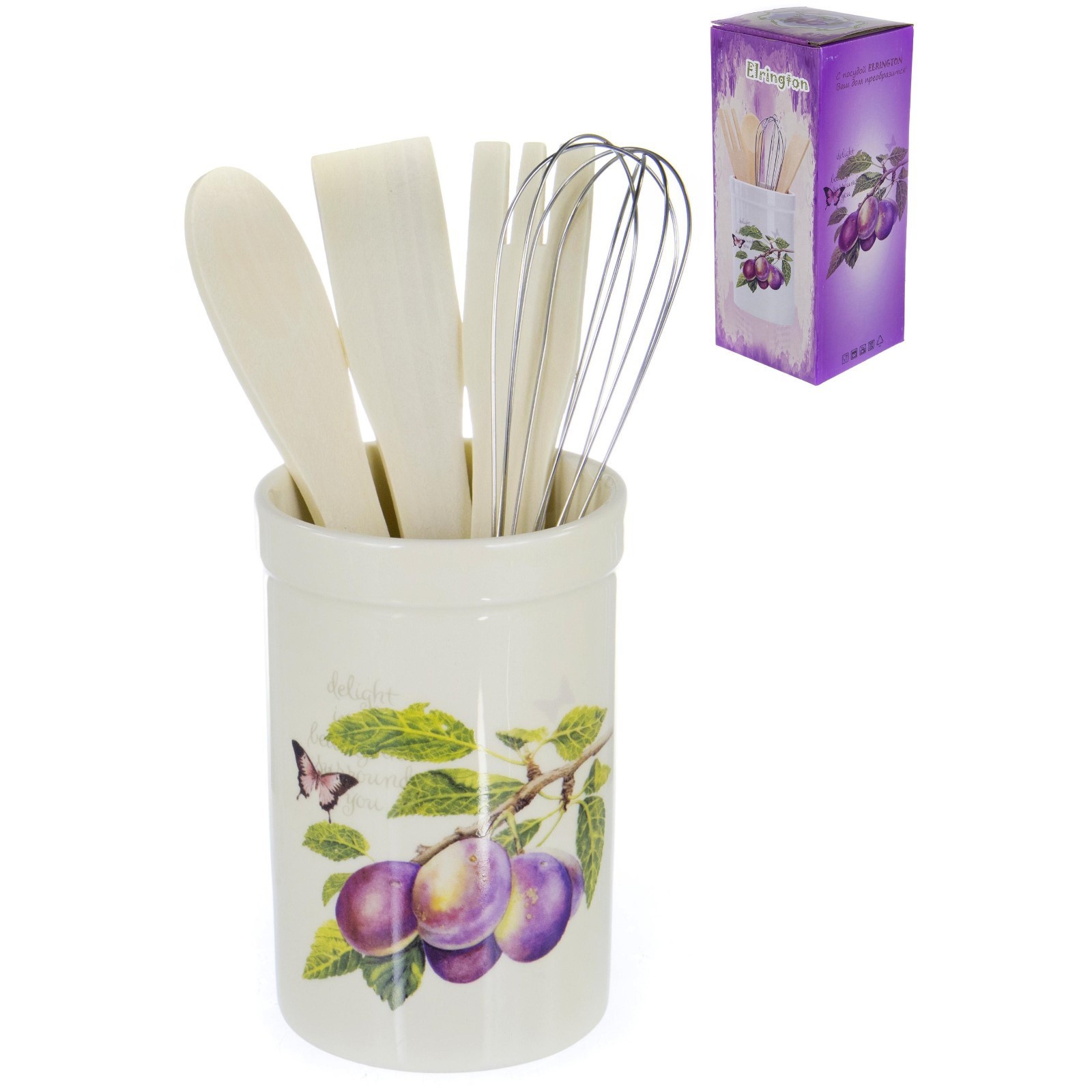 Держатель для столовых приборов elrington «слива». Изделие может иметь следующие несущественные дефекты: незначительный скол краски;прерывание и наплыв рисунка;наличие полосы на рисунке;потёртости и наплыв золотой краски на внутренней стороне;небольшие потёртости и царапины на глазури;засорения под глазурью;плотные вздутия глазури на внутренней поверхности;натёк глазури;наличие мушек (чёрных точек);неровность внутреннего отверстия;отклеивание страз;потёртость упаковки в уголках. Данные недостатки не влияют на свойства изделия при использовании. Цвет: Белый Материал: Керамика (Доломит) С поддоном: Нет Можно мыть в посудомоечной машине: Нет  развернуть описание ▼