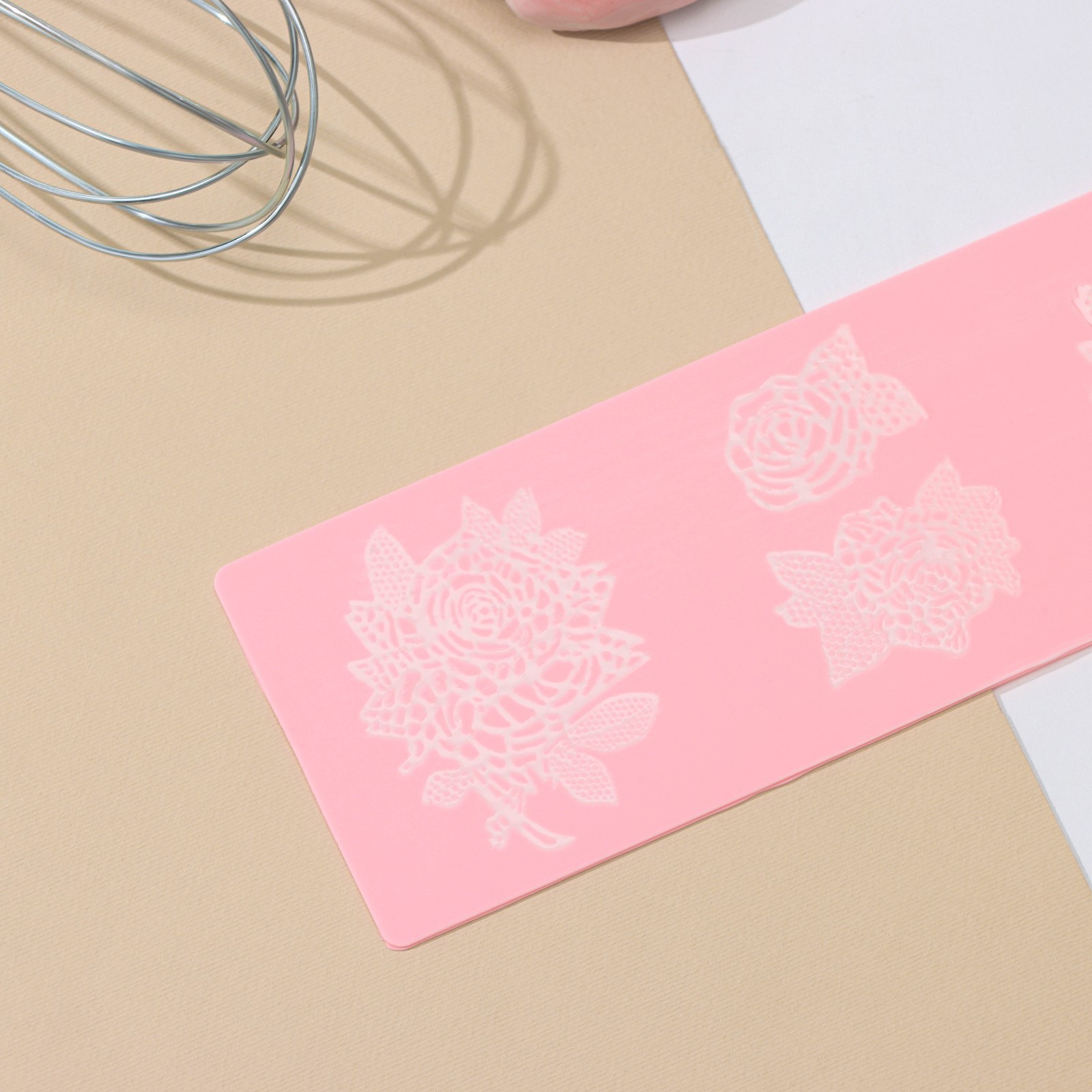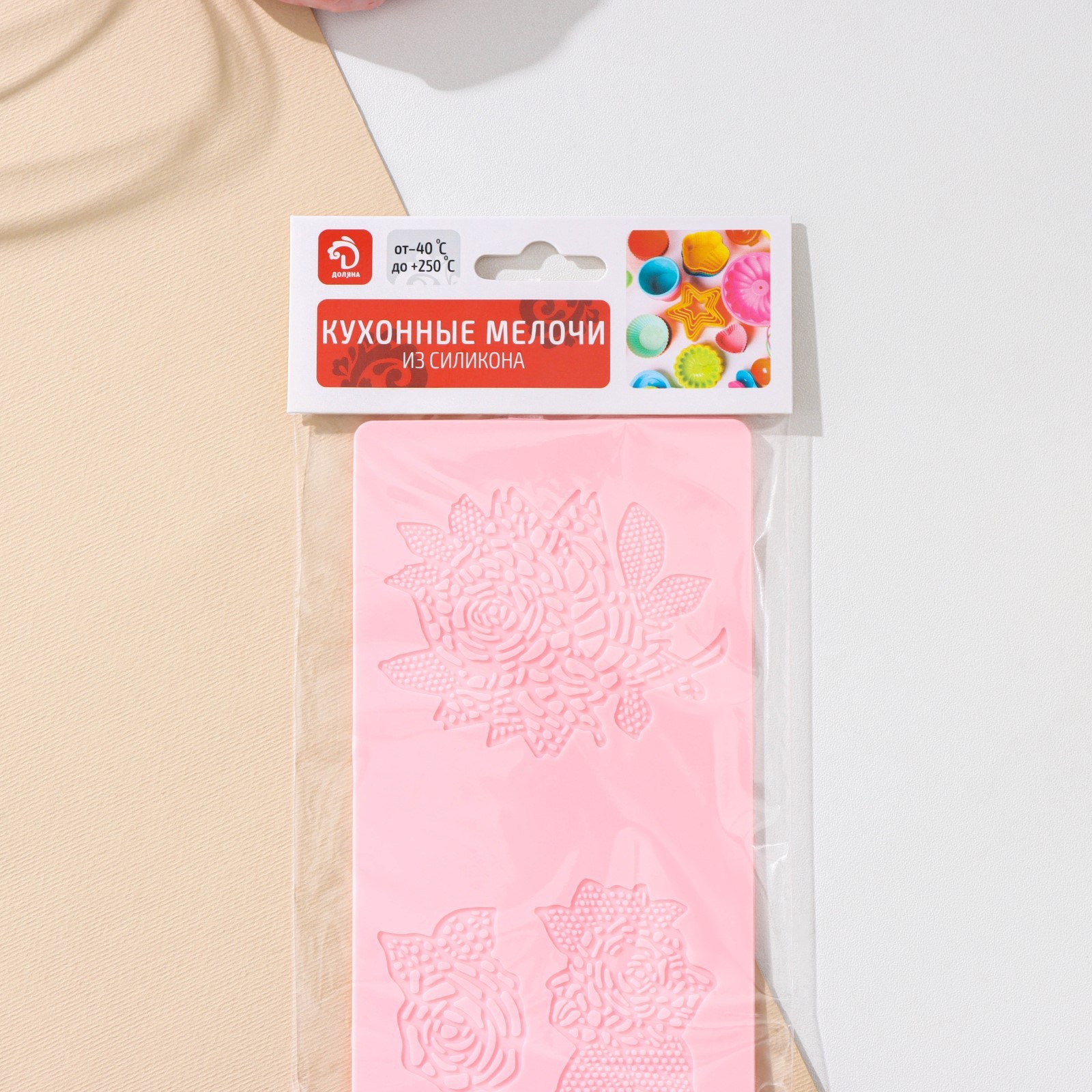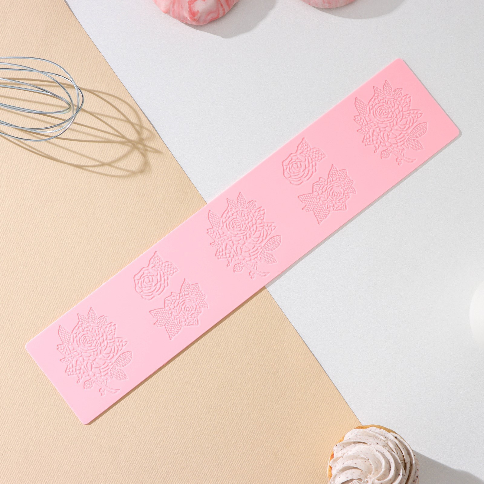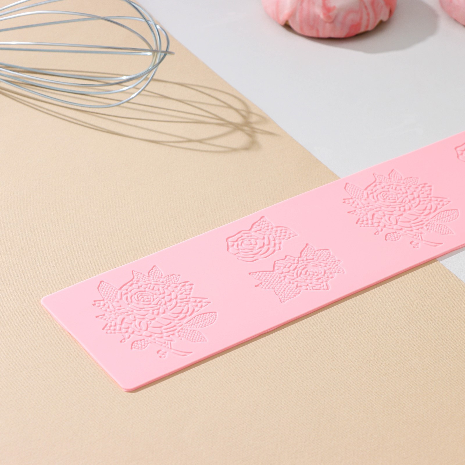 Силиконовый коврик для айсинга доляна «розы», 37,5x8x0,1 см, цвет розовый